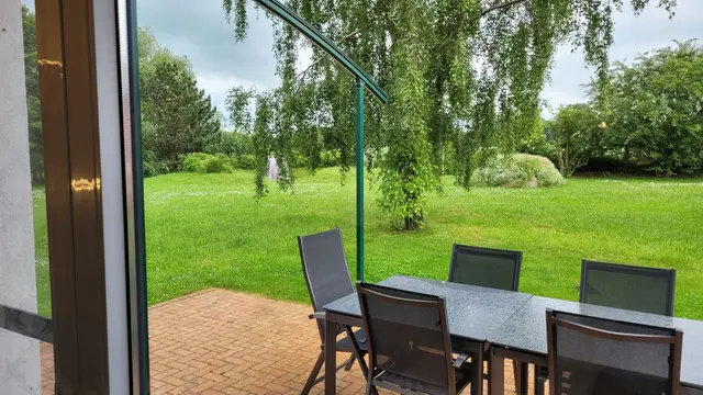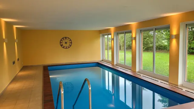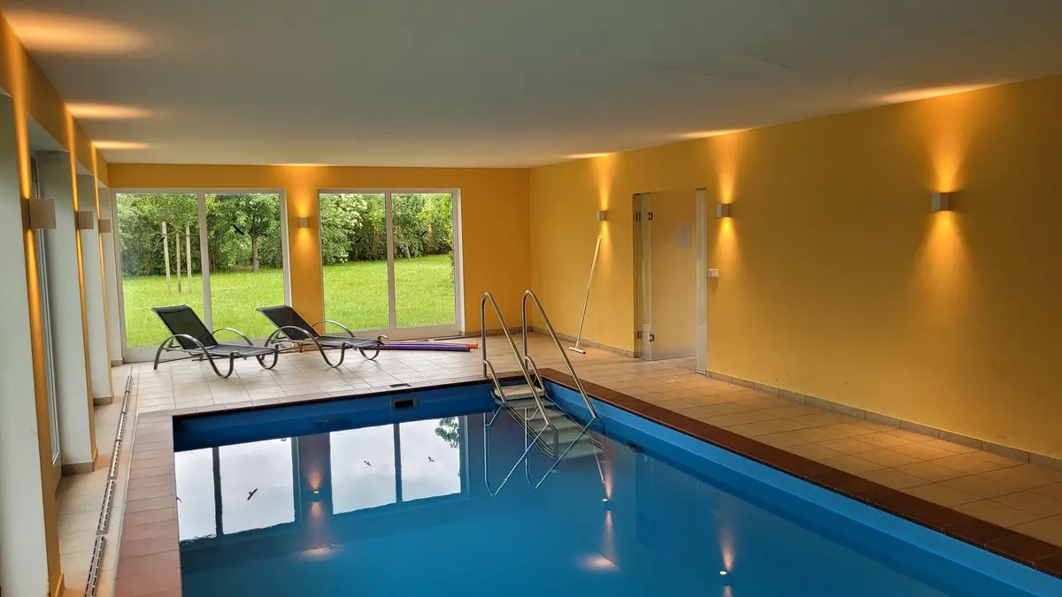 Unser freistehendes Ferienhaus befindet sich auf einem 6.000 m² großem Grundstück in ruhiger Alleinlage. Die zwei großzügigen Haushälften bieten jeweils 138 m² Wohnfläche. Aufgrund der zahlreichen Fenster, die mit Hilfe von Vorhängen abgedunkelt werden können, sind die Räume hell und lichtdurchflutet. Die Einrichtungsgegenstände sowie das Mobiliar können nach Absprache umgeräumt und ausgetauscht werden. Im separaten Pool-Haus stehen ein Innenpool mit Gegenstromanlage und eine Sauna für Ihre Produktion zur Verfügung. Das Grundstück bietet im Außenbereich unter anderem Terrassen, Wiesen und einen Obstgarten. Im und vor dem Carport stehen insgesamt sechs Parkplätze zur Verfügung und in einem Nebenbereich gibt es weitere drei Parkplätze. Diese können auch von einem Lkw genutzt werden. Wir freuen uns darauf, Ihre Produktionen unterstützen zu können.