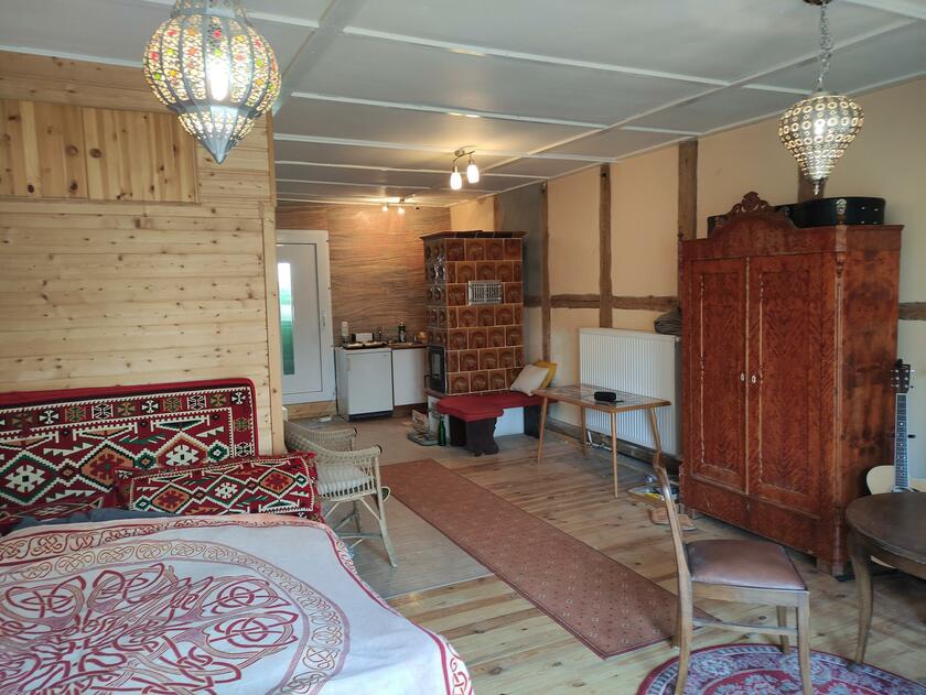 Der historische und renovierte Bauernhof befindet sich im Zentrum des Uckermärkischen Dorfes Lunow. Der große Hof bietet ein Wohnhaus, eine Scheune, Stallungen, einen Garten und eine große Wiese. Das Wohnhaus ist im historischen Stil eingerichtet und verfügt unter anderem über eine große Küche. Direktes Sonnenlicht fällt nur am Nachmittag in die Räume. Die Fenster können mit Vorhängen und Fensterläden abgedunkelt werden. In der Scheune befindet sich ein Appartement mit Sauna. Im Stall gibt es riesige Räume und einen unausgebauten Dachboden. Auf dem Grundstück gibt es Parkplätze für bis zu 5 Pkw.