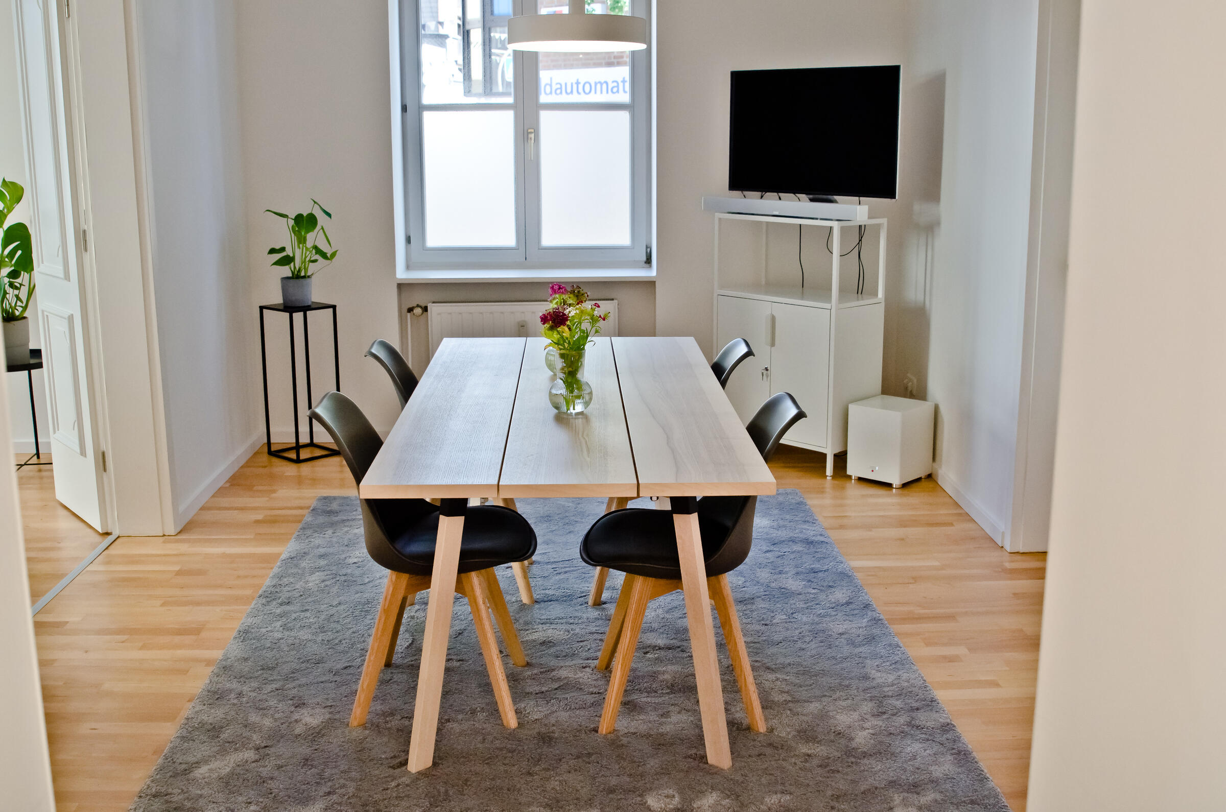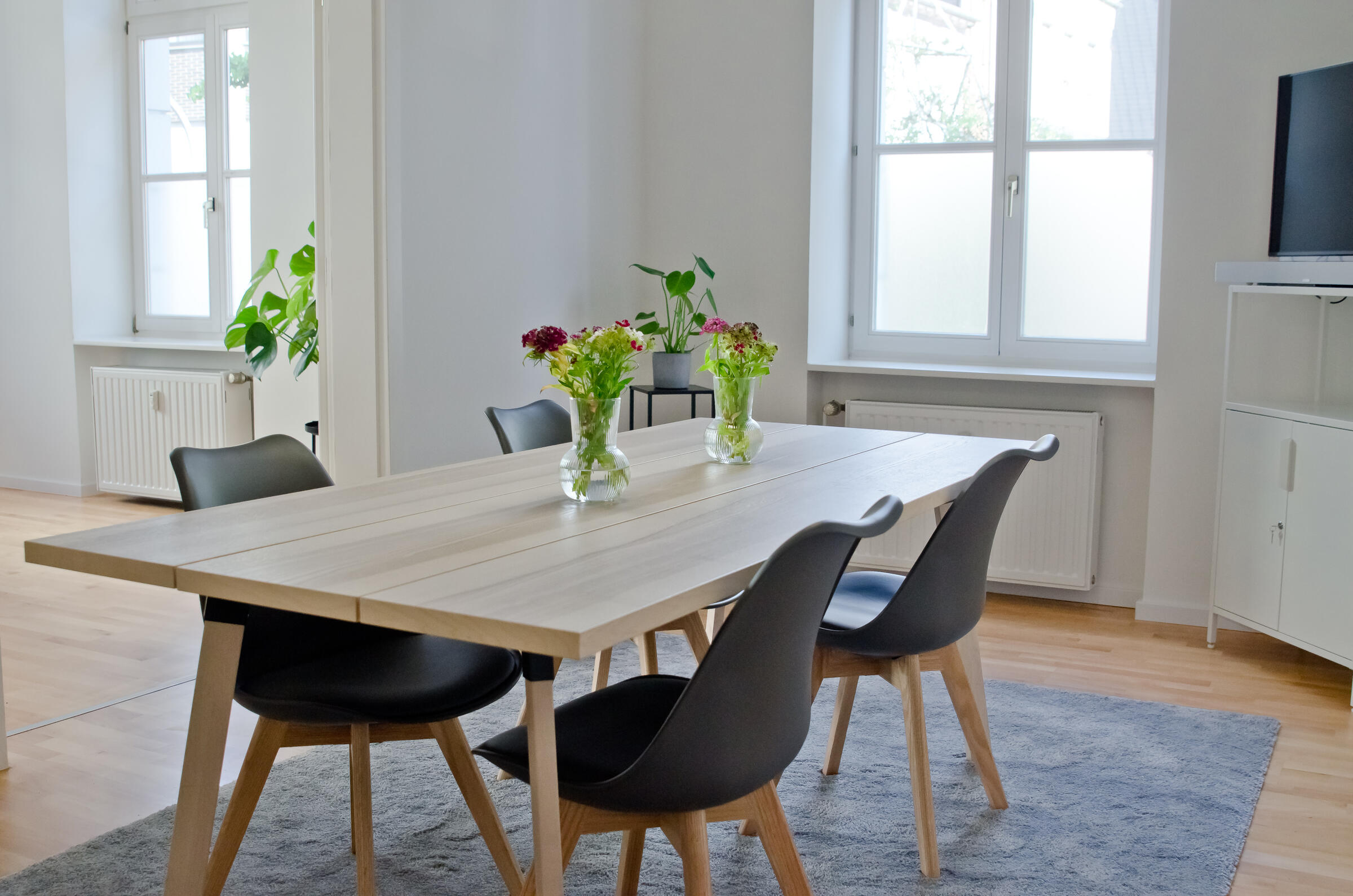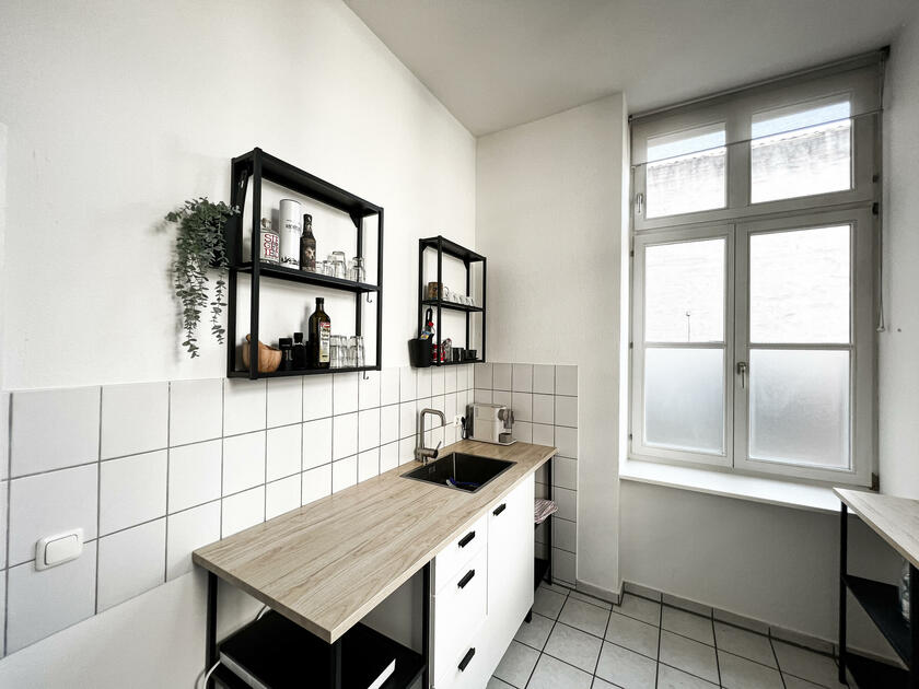 Die Büros befinden sich im Erdgeschoss eines denkmalgeschützten Hauses in Mönchengladbach-Wickrath. Unsere Räumlichkeiten verfügen über einen eigenen Eingang mit einem großen Flur. Hingucker sind die hohen Decken mit dem wundervollen Stuck. Insgesamt stehen 4 Räume zur Verfügung und ein großer Abstellraum. Des Weiteren gibt es 2 Toiletten und eine kleine Küche. Außerdem gehört zu den Räumlichkeiten noch eine kleine Terrasse. Natürlich können alle Möbel umgestellt oder kurzfristig entfernt werden. Hinter dem Haus befinden sich 2 eigene Parkplätze. Weitere Parkplätze befinden sich ca. 50 m entfernt vom Gebäude am Wickrather Bahnhof. Trotz der nahen Lage zu dem Bahnhof ist es hier sehr ruhig, da dort nur selten Züge fahren.