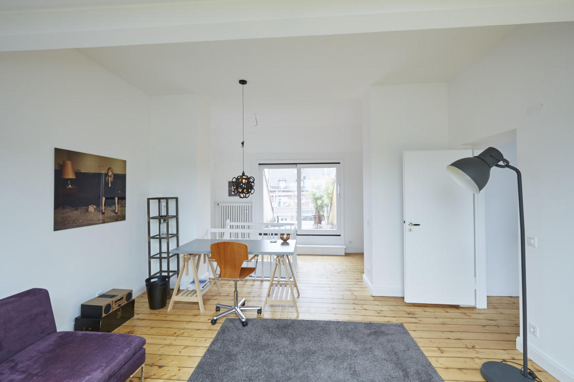 Die Parkplatzsituation vor dem Haus ist entspannt. Obwohl es sich um eine Innenstadtlage handelt, hatten wir noch nie die Situation, dass Produktionen nicht vor dem Haus parken konnten. Der Bahnhof ist 5 Gehminuten entfernt. Die Verbindung zum Düsseldorfer Hbf dauert 24 Minuten.
