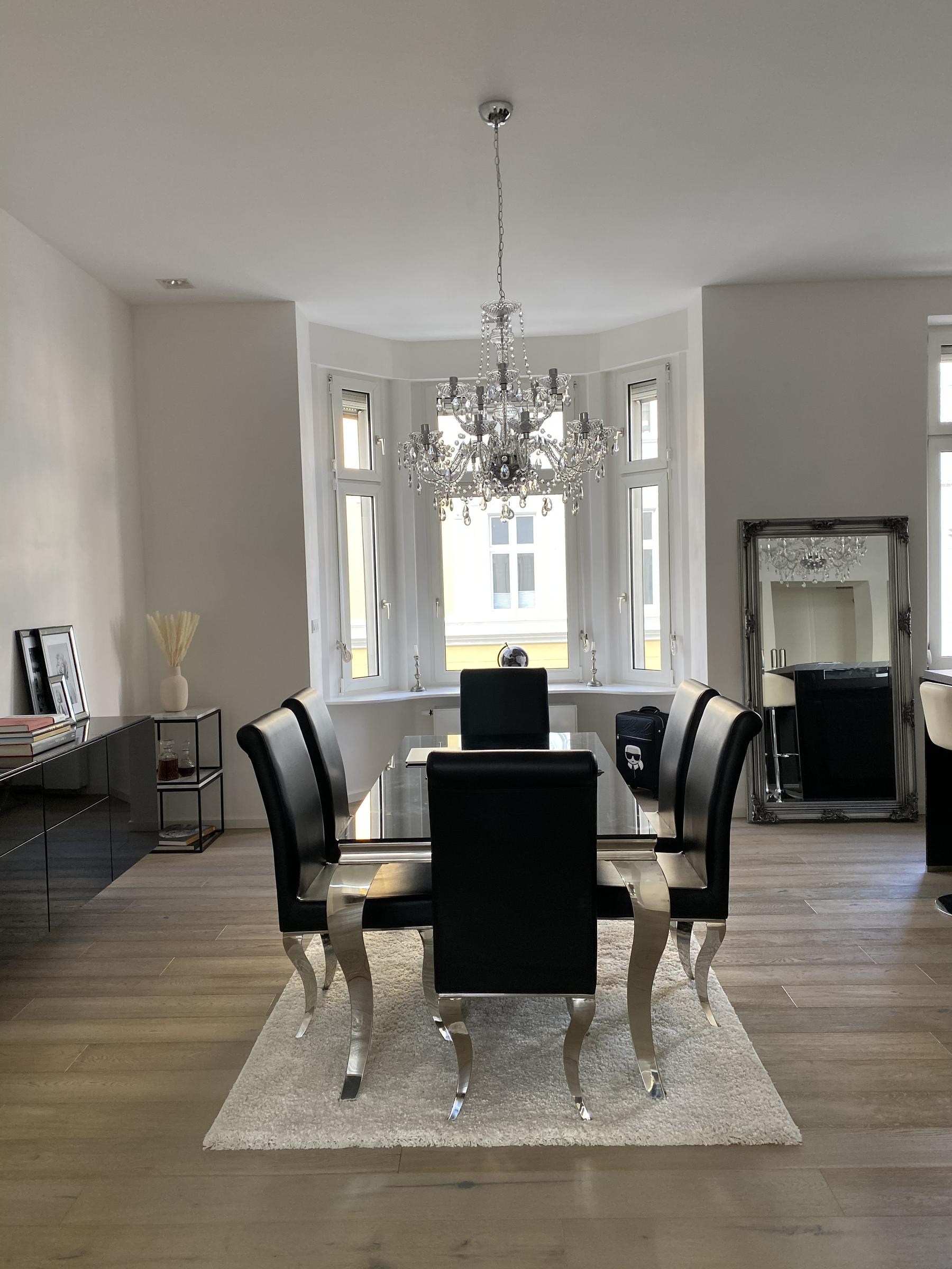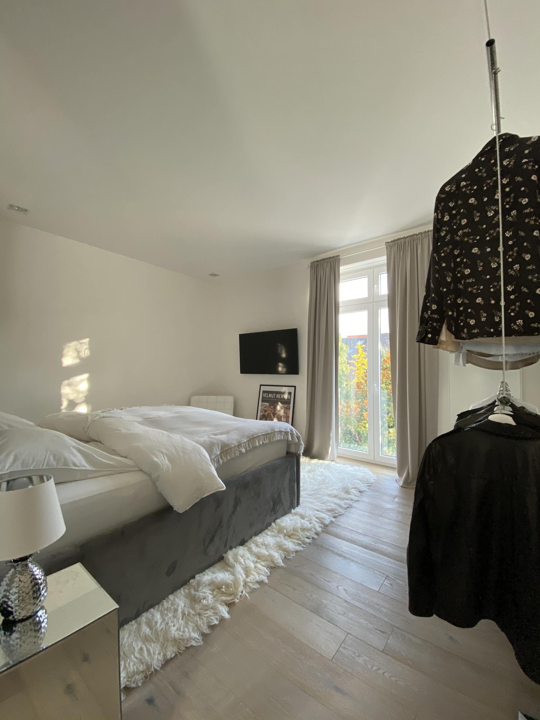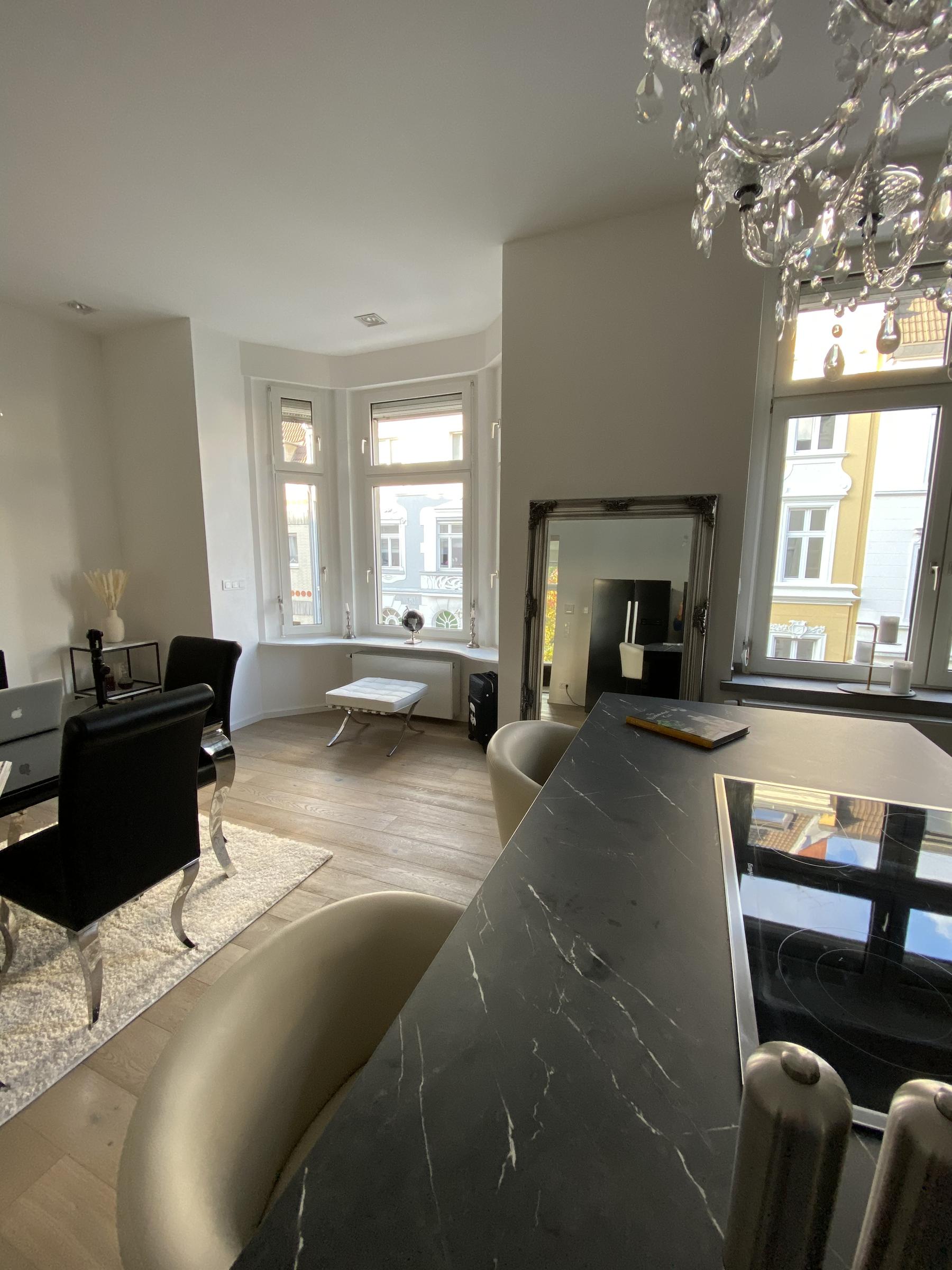 Unser 105 m² großes lichtdurchflutetes Appartement eignet sich perfekt für jegliche Art der Contentproduction. Besonders die klassische und elegante Einrichtung gepaart mit dem modernen Grundriss und den extra hohen Decken versprüht ihren ganz eigenen Charme. Einzigartig ist neben der riesigen Designerküche auch das zum Schlaf- und Ankleidezimmer offene Bad. Aus dem ersten Stock hat man zudem einen wunderschönen Blick auf die gegenüberliegenden Altbaufassaden sowie den gepflegten Garten. Das Apartment liegt in einer der exklusivsten Wohngegenden in ganz Mönchengladbach, direkt am bunten Garten und nur wenige Gehminuten von der Innenstadt (alter Markt, Minto) entfernt. In 2 min erreicht man außerdem die Autobahn, die in 20 min nach Düsseldorf oder auch nach Holland (Venlo, Roermond) führt. Das Parken ist direkt vor dem Appartement entlang der gesamten Straße kostenfrei möglich.