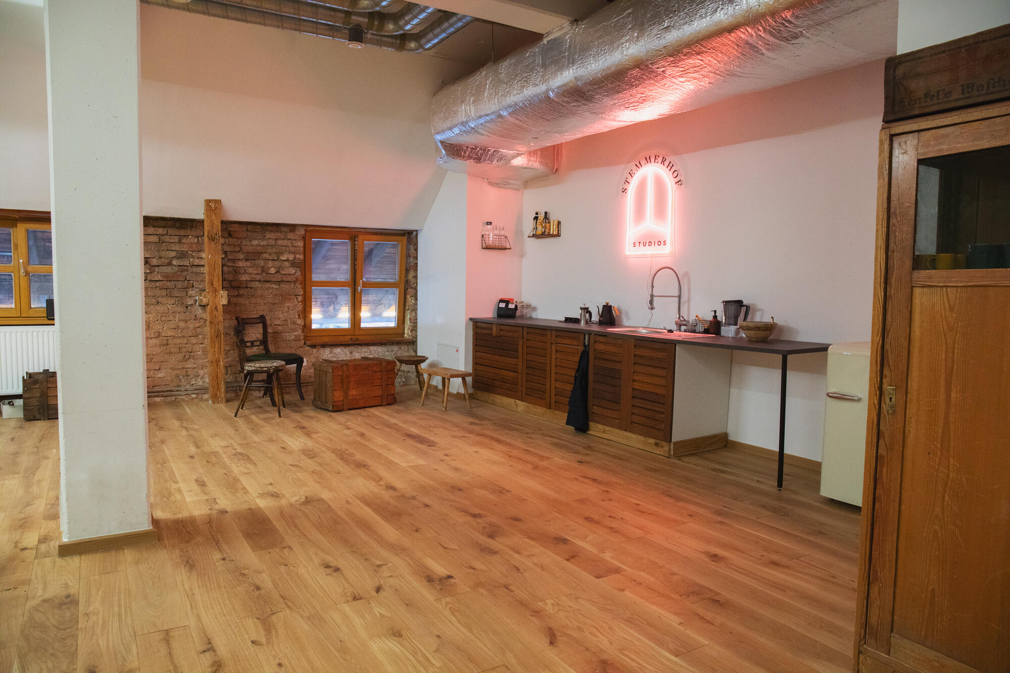 Das Studio mit viel Charakter und Charme befindet sich in einem ehemaligen Bauernhof mitten in München. Ein multifunktionaler Raum mit Schwerpunkt Fotografie- und Filmproduktion. Geschichtsträchtige Backsteinmauern und historische Holzsäulen treffen auf massiven, neu verlegten Eichenholzboden und avantgardistische Betonwände. Das Studio ist geräumig, aber gemütlich, rustikal und doch modern und erlaubt durch die Aufteilung, Möblierung und Requisiten eine sehr individuelle Gestaltung der Hintergründe. Außerdem verfügt es über verschiedene mobile Trennwände und Stoffhintergründe. Wenn der richtige Hintergrund doch einmal nicht dabei sein sollte, greifen wir gerne auf unsere langjährige Erfahrung im Set Design zurück und kreieren einfach neue, die individuell auf die jeweilige Produktion zugeschnitten sind.