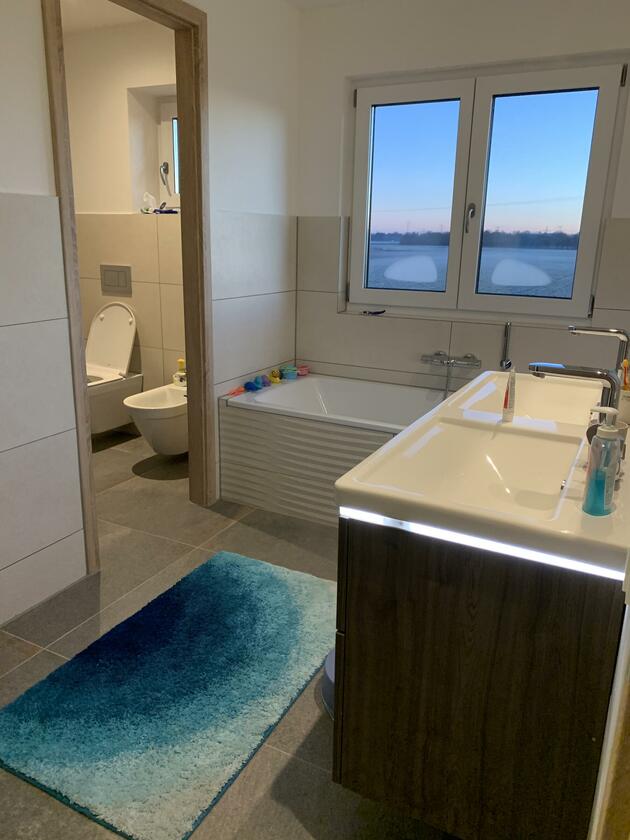 Die Doppelhaushälfte befindet sich im Münchner Westen nahe dem Naherholungsgebiet Langwied mit zwei Seen und verfügt über einen uneinsehbaren Garten