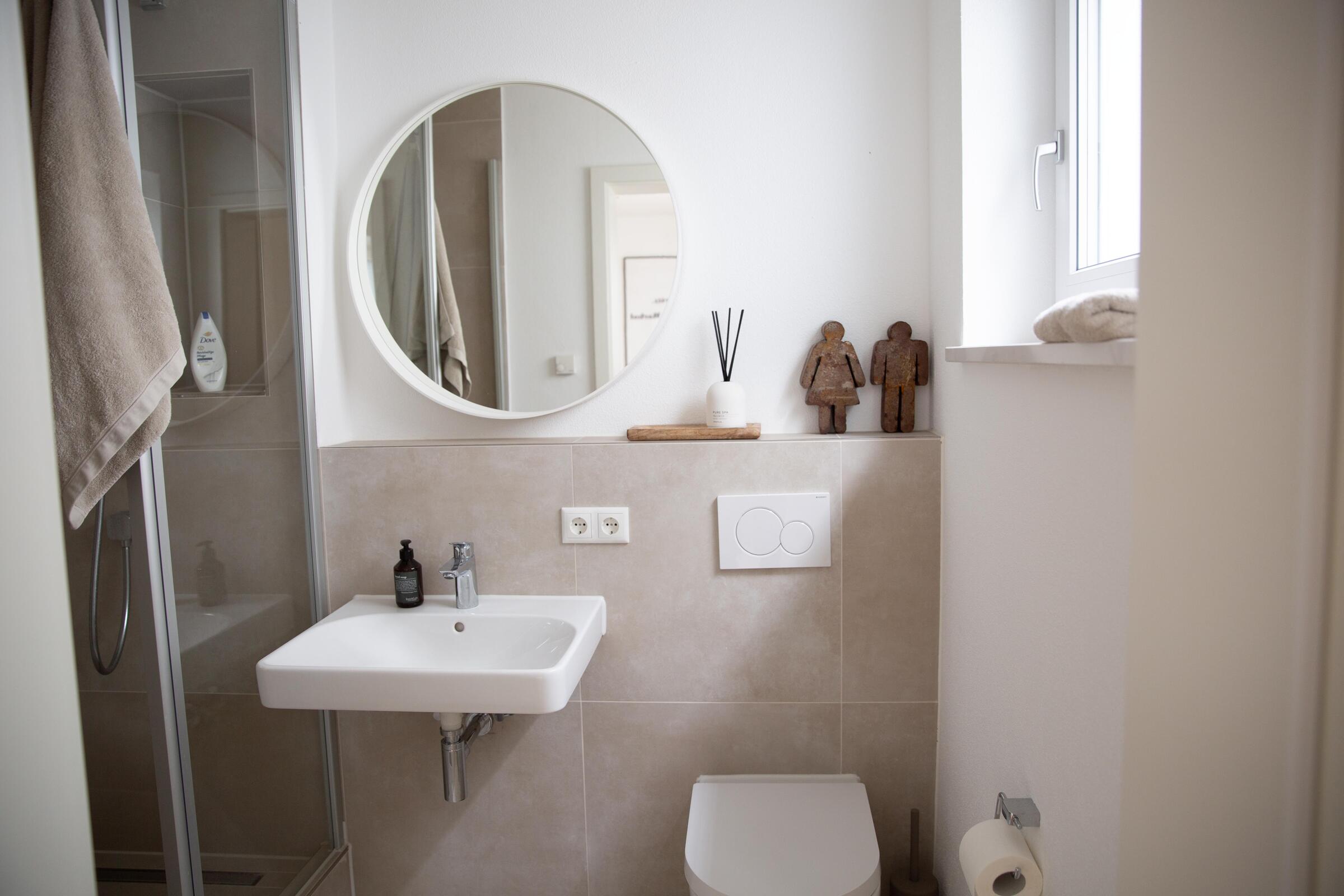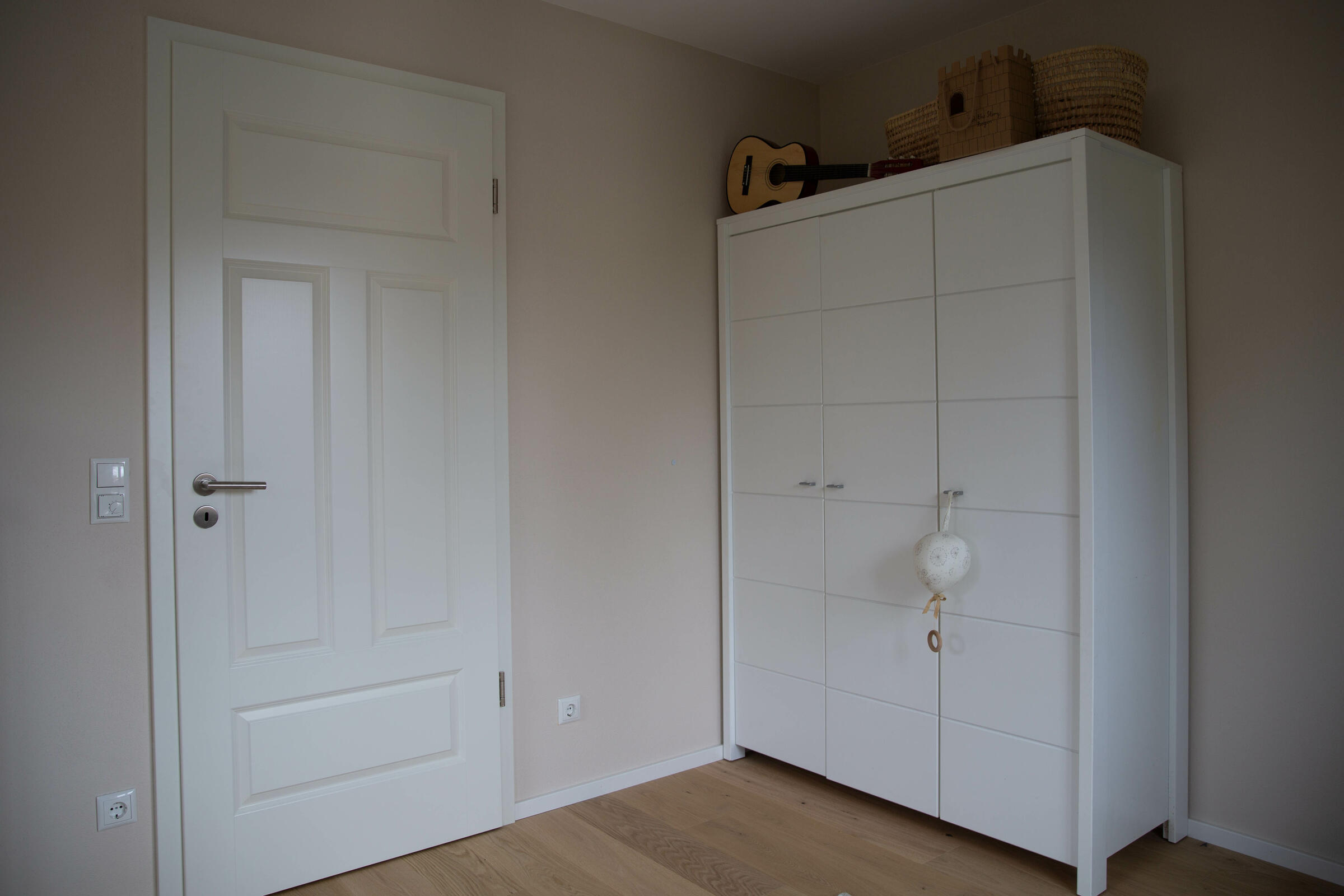 Alle Fenster, außer im Dachgeschoss, können mit Raffstores abgedunkelt werden. Die Räume im Erdgeschoss sind vollkommen offen gestaltet. Die moderne Küche ist im skandinavischen Stil und mit zarten Beigetönen eingerichtet. Im 1. Obergeschoss befinden sich das Masterbad und 2 Schlafzimmer. Im Dachgeschoss sind ein kleines und sehr helles Badezimmer mit Dusche und 2 Kinderzimmer. Im Untergeschoss befindet sich ein Hobbyraum, der beispielsweise für Maske und Abstellmöglichkeiten genutzt werden kann. Unser Haus ist nach Süden ausgerichtet. Parkplatzmöglichkeiten gibt es direkt auf der Straße vor dem Haus. Unser Haus steht an Wochenenden nicht für Anmietungen zur Verfügung.