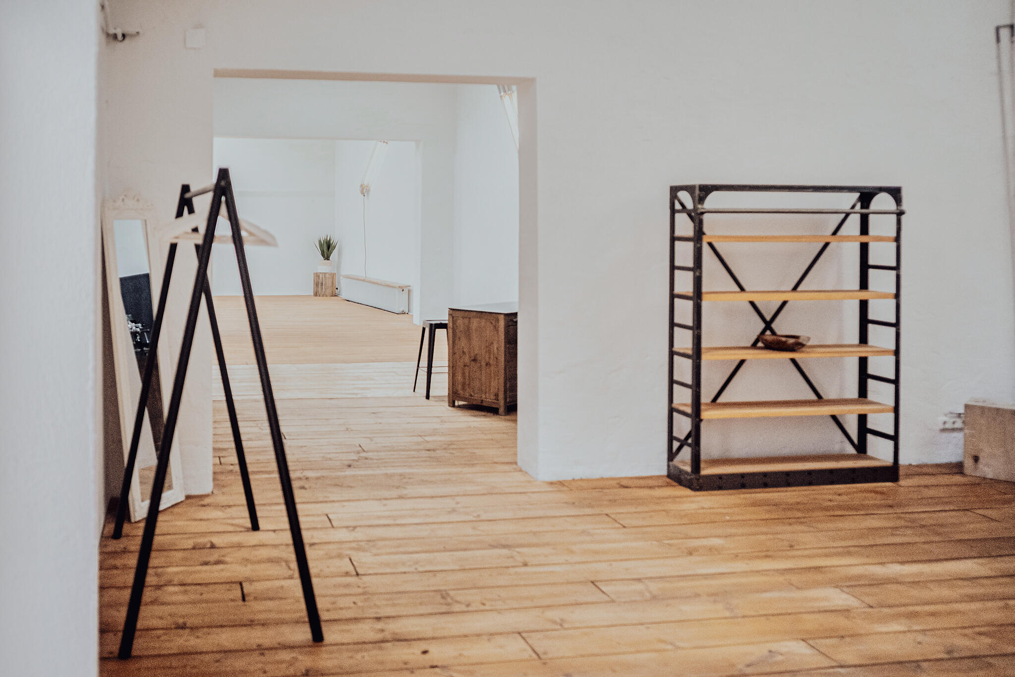 Unser Loftstudio befindet sich in München-Neuhausen in der Nähe des Rotkreuzplatz. Das wandelbare Studio bietet eine Deckenhöhe von 6,5 m und ist in einen Hauptraum mit großer und lichtdurchfluteter Studiofläche, 2 Nebenräume und einer Kaffee-Bar aufgeteilt. Die Fensterfronten können mithilfe von Vorhängen abgedunkelt werden. Die Böden der Räume sind mit rustikalen Holzdielen ausgelegt. Alle Raumelemente können flexibel und je nach Wunsch angeordnet werden. Im Außenbereich kann ebenfalls der Innenhof genutzt werden. Das Studio befindet sich an einer ruhigen Einbahnstraße.