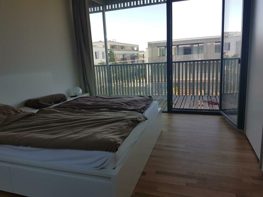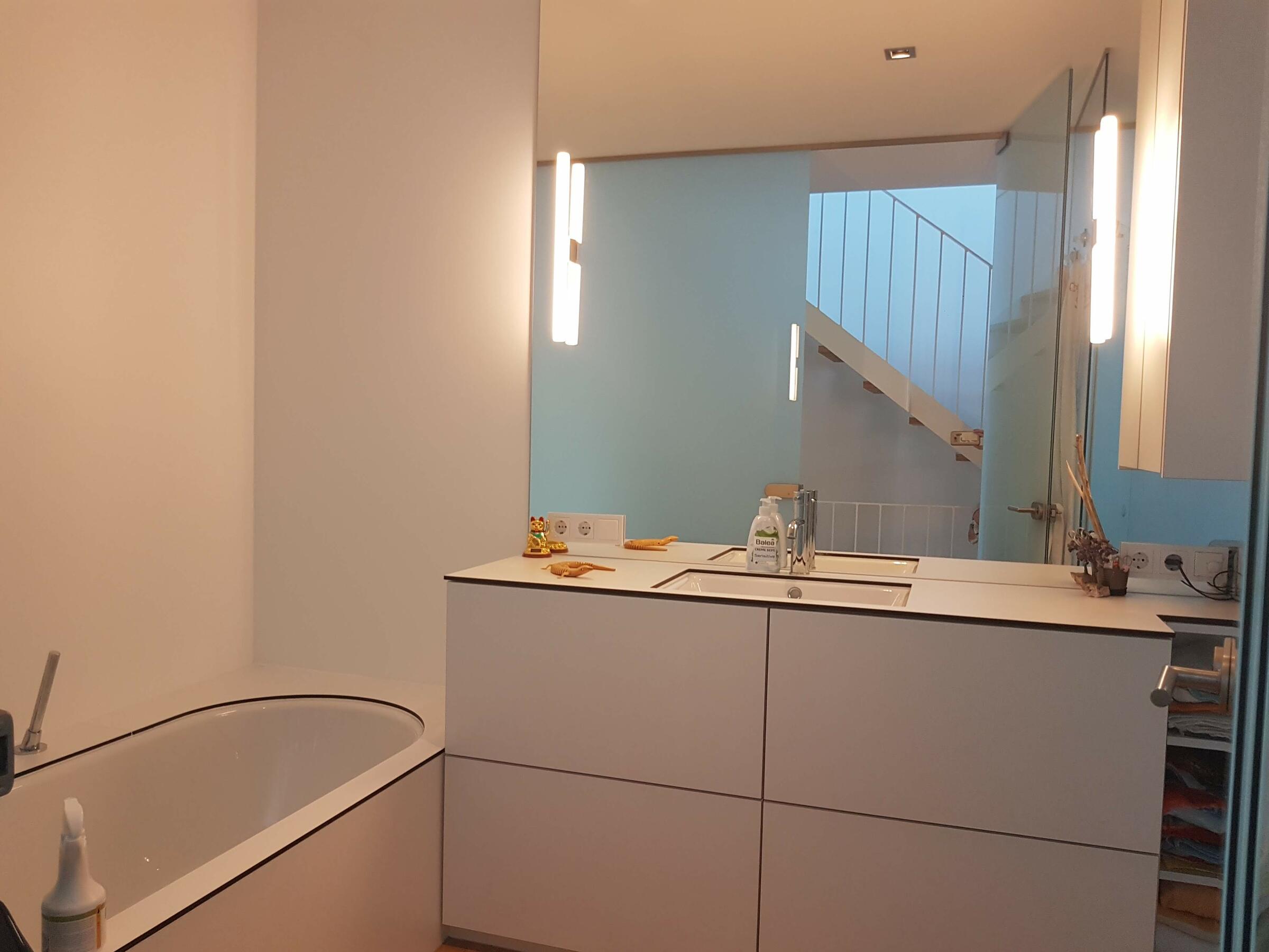 Das helle und offene Stadthaus aus dem Jahr 2018, hat vollverglaste Fronten und besteht aus 3 Etagen und Souterrain. Es steht in Südausrichtung und besitzt einen kleinen Garten. Die hochwertige Ausstattung besticht mit durchdachten Lichtinstallationen, Eichenparkett, Spiegeleinbauten, Einbauschränken und teilweise Designermöbeln. Das Erdgeschoss, mit seinen matten Glasfronten, ist vollständig offen und bietet eine weiße Küche mit mittig stehender Kücheninsel mit Steinplatte und Herd. Das Dachgeschoss hat einen innenliegenden Balkon, der 3 seitig verglast ist. Alle Zimmer in den Obergeschossen haben Balkone. Das Bad ist mit einer kompletten Milchglaswand, Schreinereinbauten sowie einem riesigen Spiegel ausgestattet. Es ist ein Tiefgaragenstellplatz vorhanden.