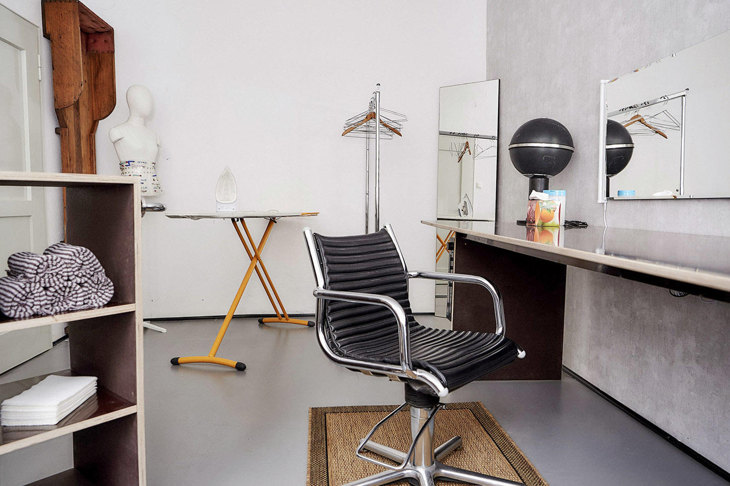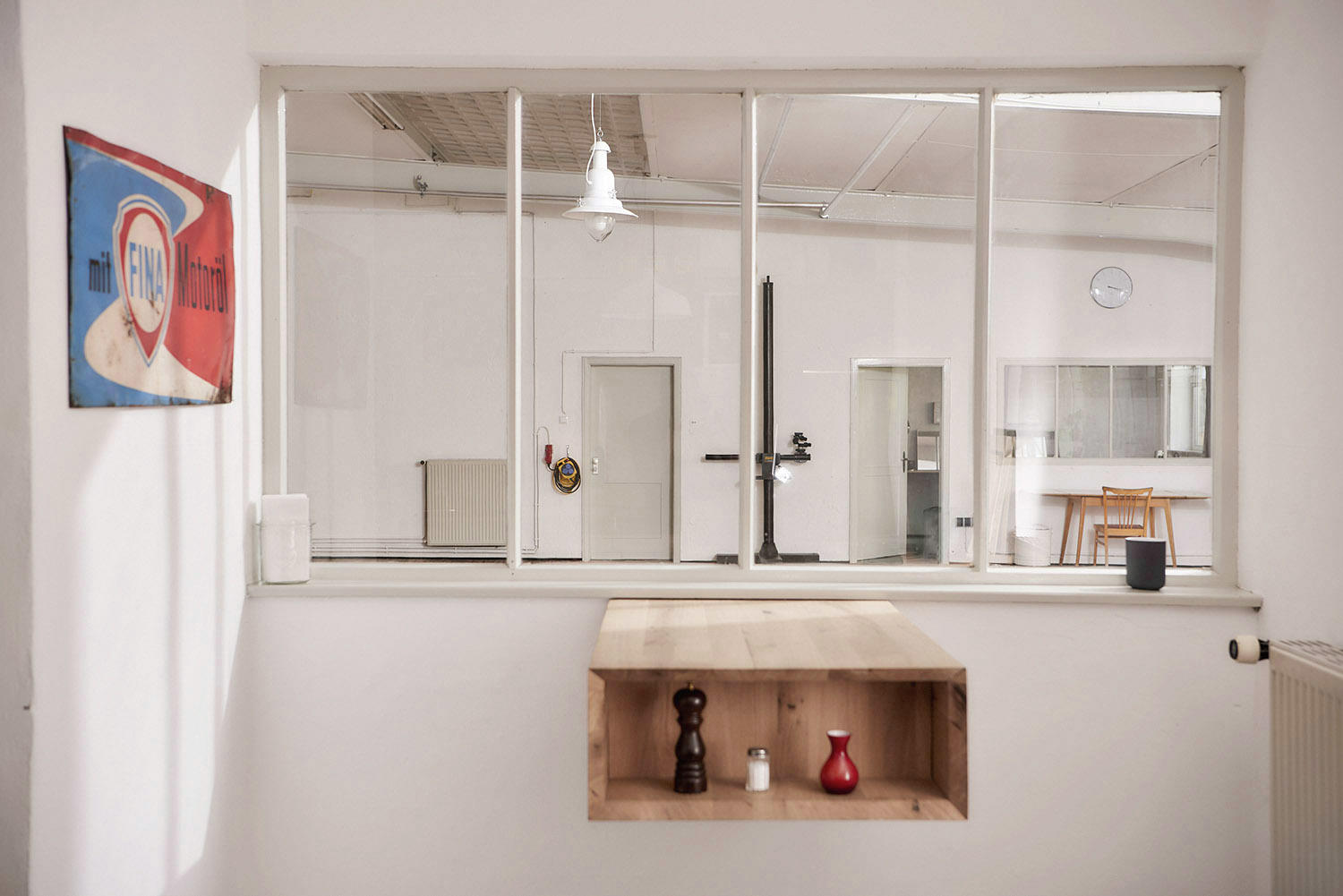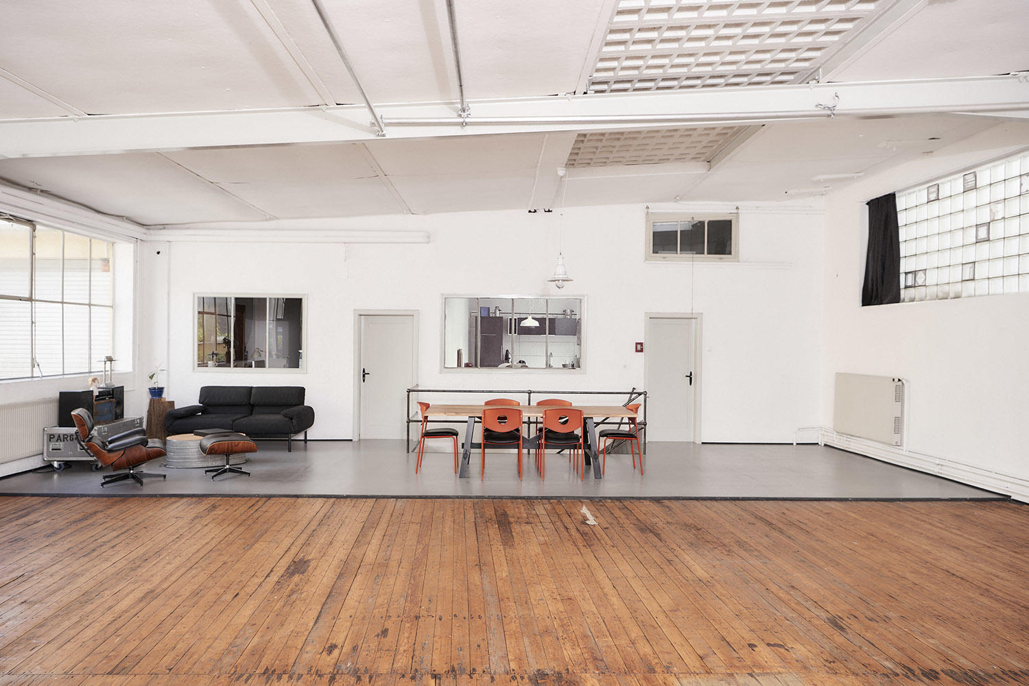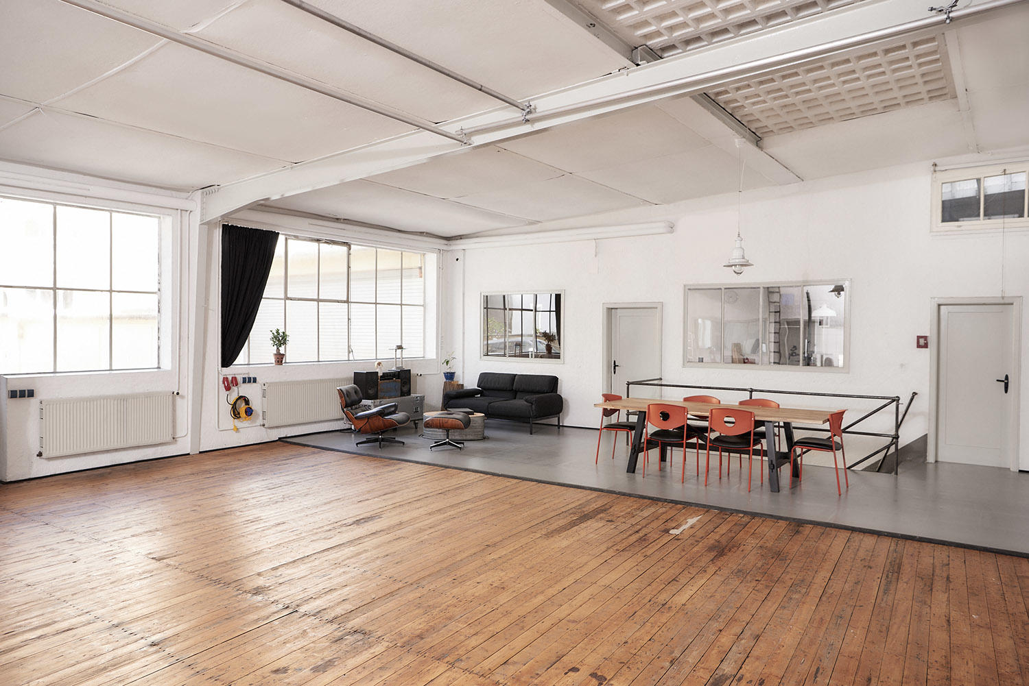 Das Studio für befindet sich in der Maxvorstadt und ist mit seinen zusätzlichen Innenfenstern sehr luftig. Es ist ein heller und offener Raum. Das Mietstudio ist im Sommer als Tageslichtstudio geeignet. Der Holzboden sieht nicht nur cool aus sondern macht den Raum auch sehr gemütlich. Ein großer Tisch und Couch und Sessel machen den Hauptraum komplett. Von hier geht es in alle Nebenräume und auch direkt auf den Hof. Das Studio ist verdunkelbar (TLU), ebenerdig und befahrbar. Eine Anlieferung vor das Studiotor, mit den Maßen 2,44 x 2,98 m, ist auch mit großen LKW möglich. Auf dem Hof sind 5 Parkplätze kostenlos verfügbar, kurzfristig auch noch mal fünf mehr.
