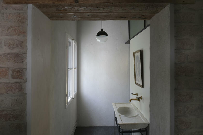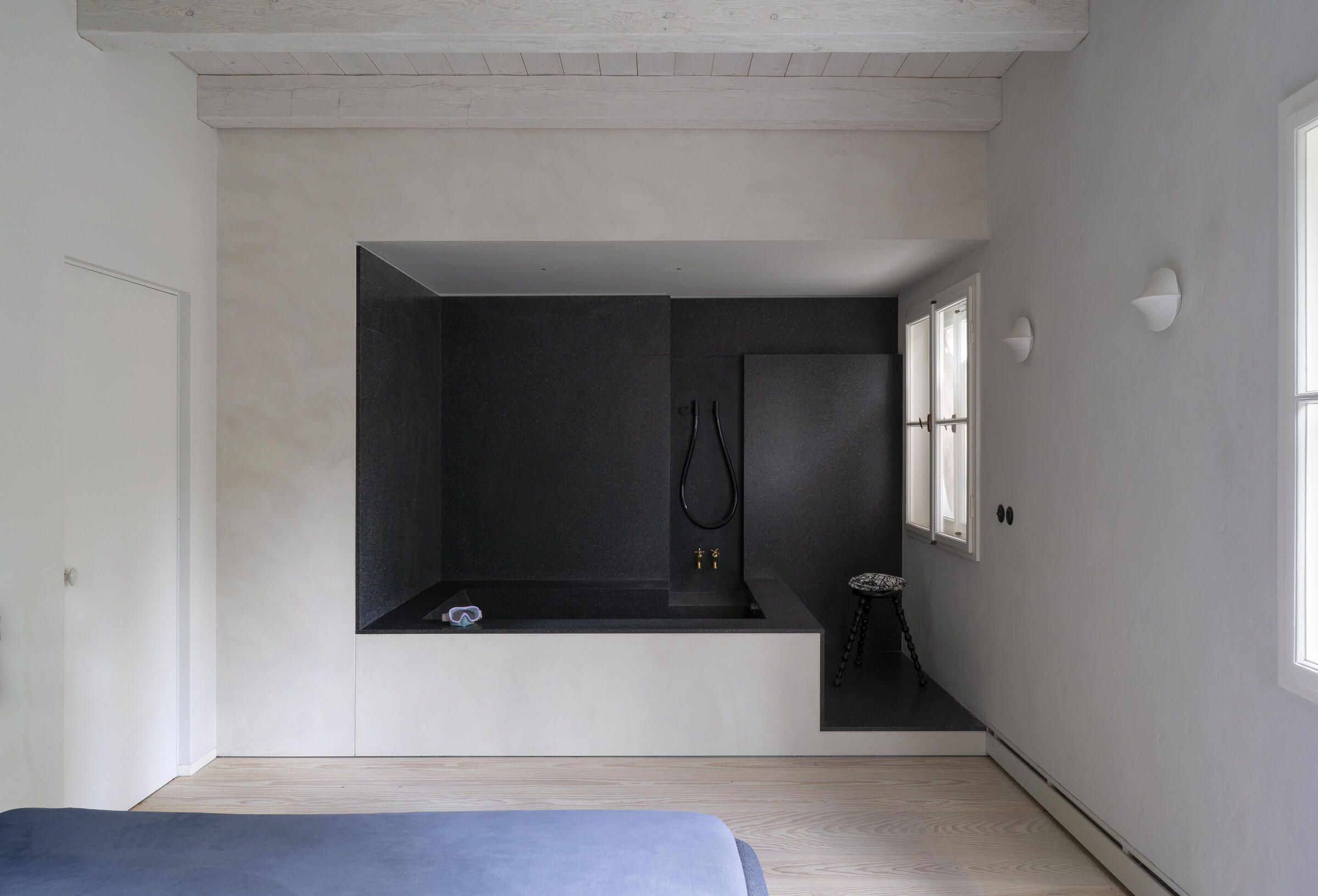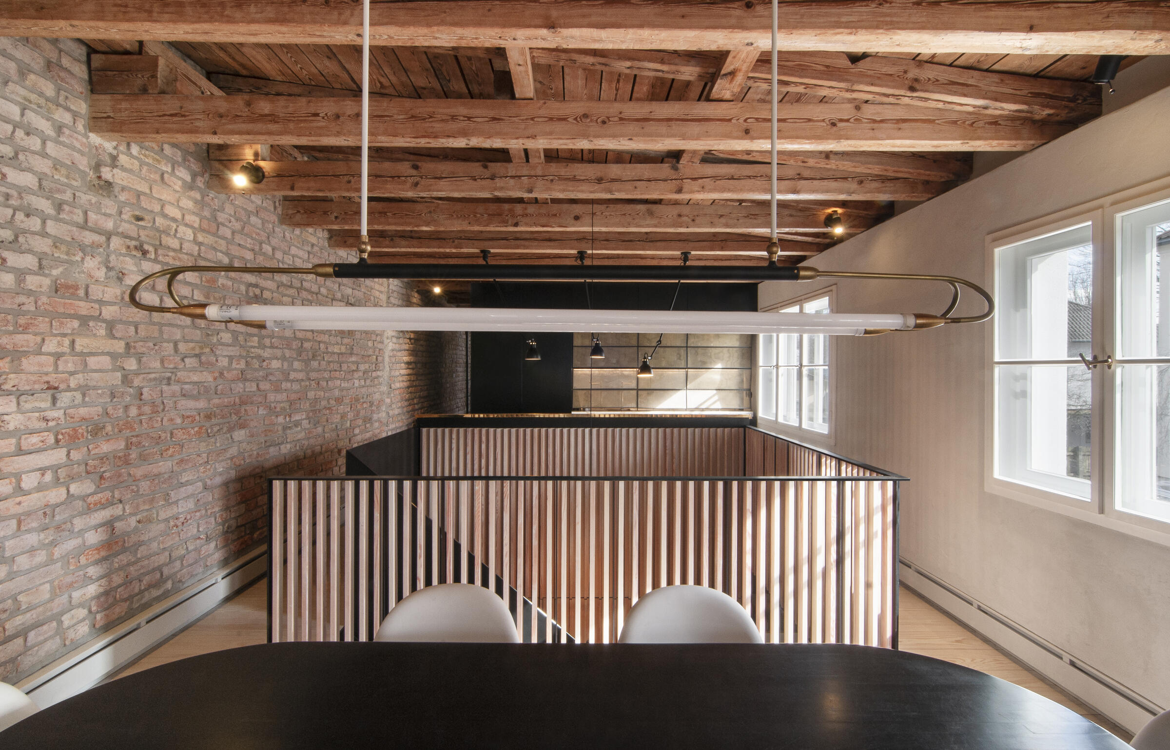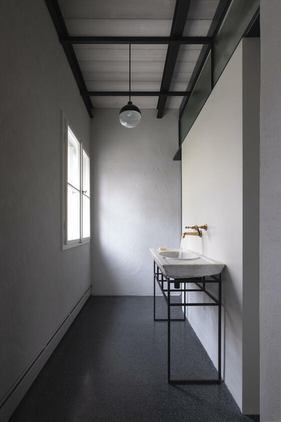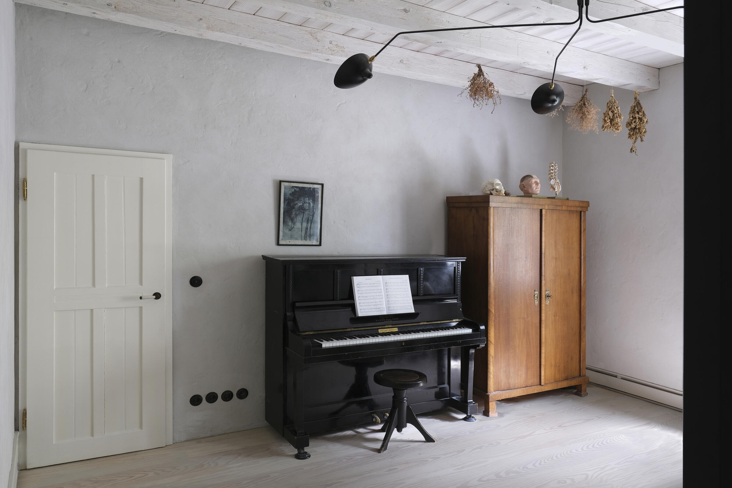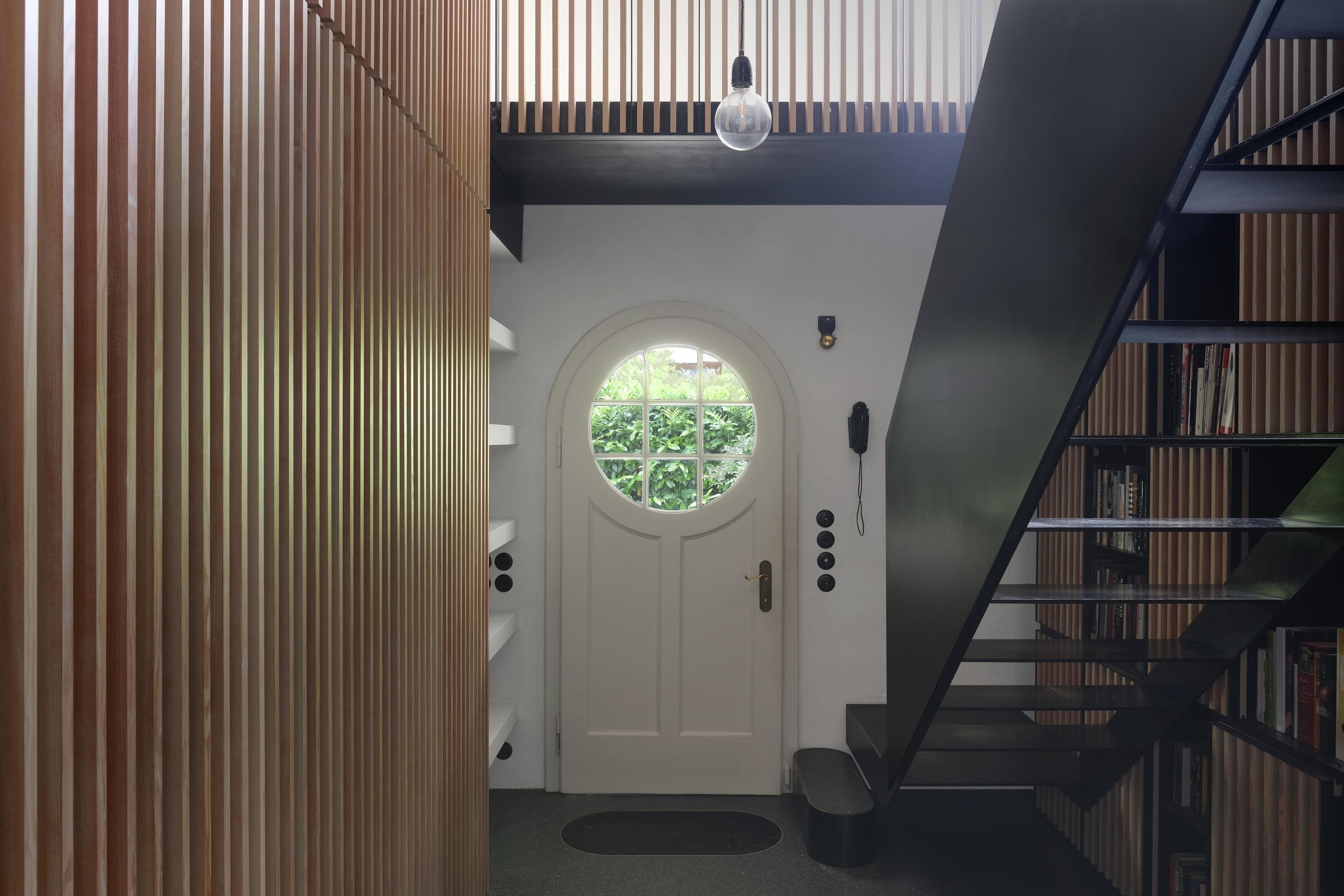 Unser ruhig gelegenes Haus ist ein von italienischen Architekten liebevoll renovierter Altbau aus dem Jahr 1904. Über das Haus und dessen außergewöhnlichem Interior wurde bereits verschiedenen Publikationen, wie beispielsweise Architectural Digest und Cube berichtet. Im Eingangsbereich und Gang zum Kinderzimmer im EG sowie zum Seiteneingang und der Waschküche ist Terrazzo-Boden gegossen. Im Bad im EG besteht der Boden Naturstein. Im Kinderzimmer, Schlafzimmer und Arbeitszimmer wurden Douglasie-Dielen von Dinesen verlegt. Die Treppe ist eine Maßanfertigung aus Stahl. Im Haus sind außerdem Holzeinbauten aus Douglasie in Lamellenoptik verbaut. Im 1. OG befindet sich ein offener Küchen-Wohn-Essbereich ebenfalls mit Dielenboden, sowie ein weiteres Kinderzimmer mit Leiter ins ausgebaute Dach. Das Bad im 1. OG ist komplett mit Betonspachtel Mercatier und Messing-Einbauten gestaltet. Die Dachterrasse hat einen Betonfliesen-Boden. Überall sind Kastenfenster verbaut. Die Lampen sind größtenteils Vintage aus den 1950er Jahren. Die Lichtschalter sind aus Bakelit. In der Küche gibt es eine Arbeitsplatte aus Carrara Paonazetto Marmor. Im Wohnbereich ist ein Living Divani Extrasoft Sofa von Piero Lissoni. Im Arbeitszimmer im Erdgeschoss hängt eine Serge Mouille Lampe. Die Räume dürfen nur nach Absprache umgestaltet werden. Aktuell können die Fenster nicht verdunkelt werden. Vor dem Haus können 2 Pkw-Parkplätze genutzt werden. Weitere Parkplätze finden sich auf der Straße in der Nähe.