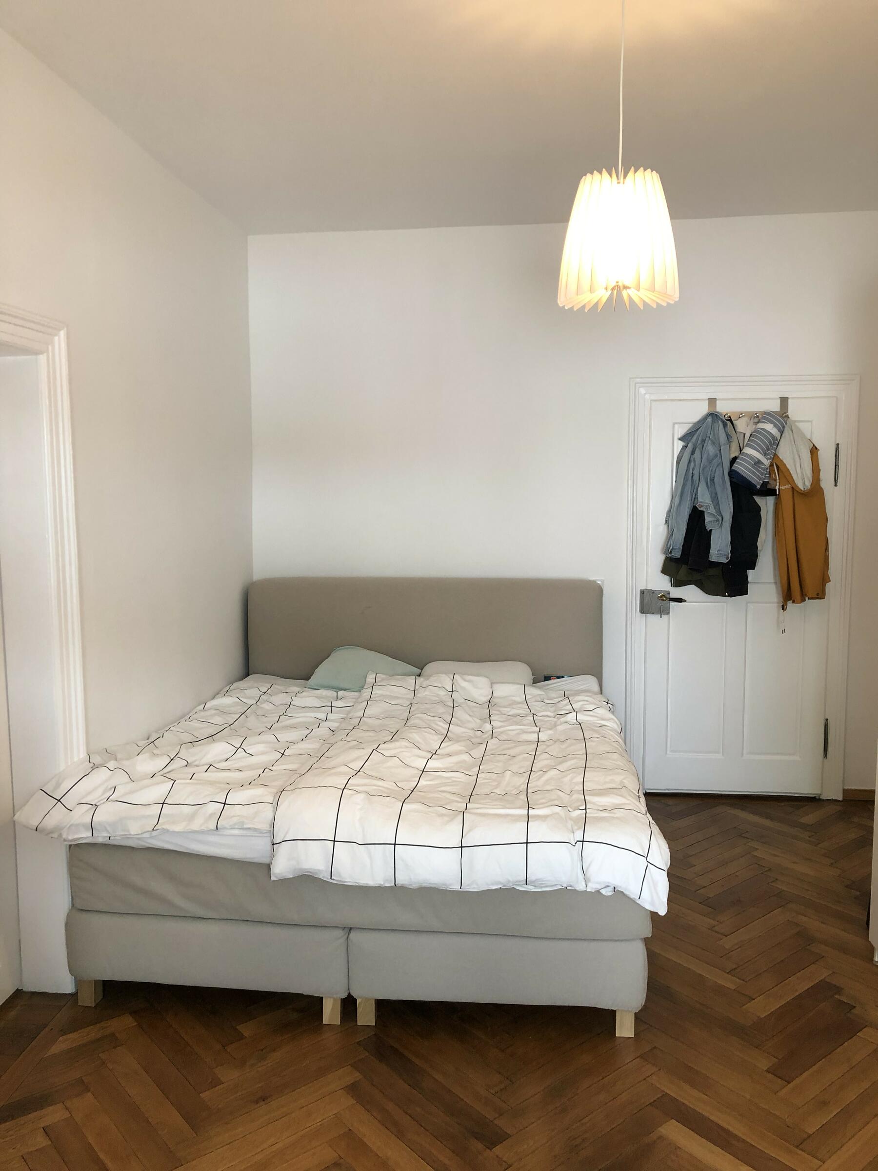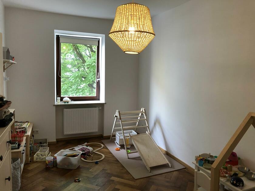Es handelt sich hierbei um eine sehr liebevoll renovierte Altbauwohnung mit original Fischgrätenboden, Kachelofen und vieles mehr. Die Bäder wurden mit deckenhohen Fließen und Bordüre komplett neu saniert. Die sehr schöne stylische schwarze Küche hat keine Hängeschränke, was den Raum noch größer erscheinen lässt. Unsere Wohnung ist in einem tollen Viertel in der Nähe des Rotkreuzplatzes in München gelegen, mit tollen kleinen Cafés und Restaurants direkt vor der Haustüre.
