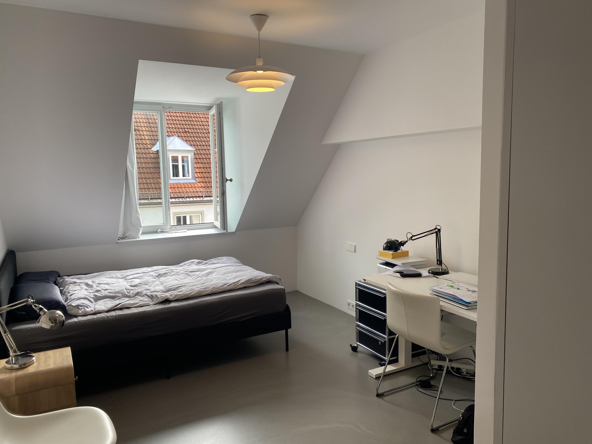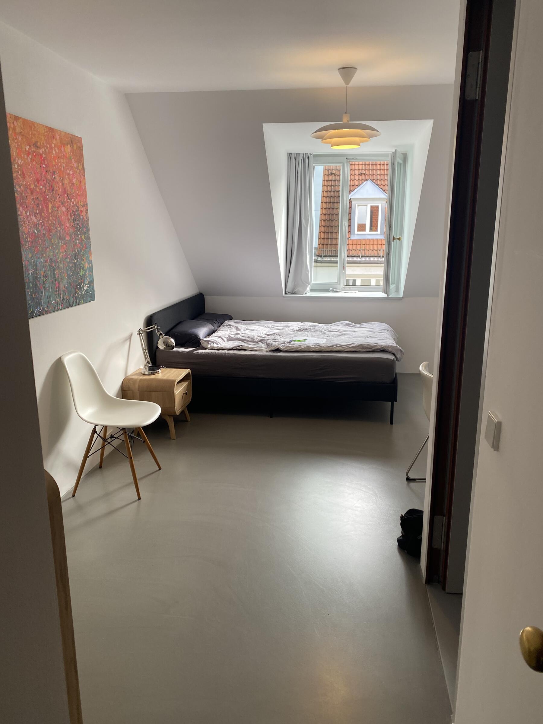 Unsere hochwertig eingerichtete 4-Zimmer-Dachgeschosswohnung befindet sich in einem Altbau im Glockenbach-Viertel. Die Wohnung ist im Mid-Century-Look gestaltet. Zur Einrichtung im Wohnzimmer zählen neben einer hochwertigen schwarzen Küche vom Schreiner, eine 12 m Teak-Schrankwand sowie diverse Möbel. Auf den Böden ist Design-Estrich verlegt. Das Badezimmer ist ebenfalls mit hochwertigen Design-Materialien ausgestattet. Die Räume können nach Absprache umgestaltet werden. Die Schlafzimmer können mit Vorhängen verdunkelt werden. Alle Fenster sind 2-fach-verglaste Schallschutzfenster, so dass kein Lärm von außen besteht.