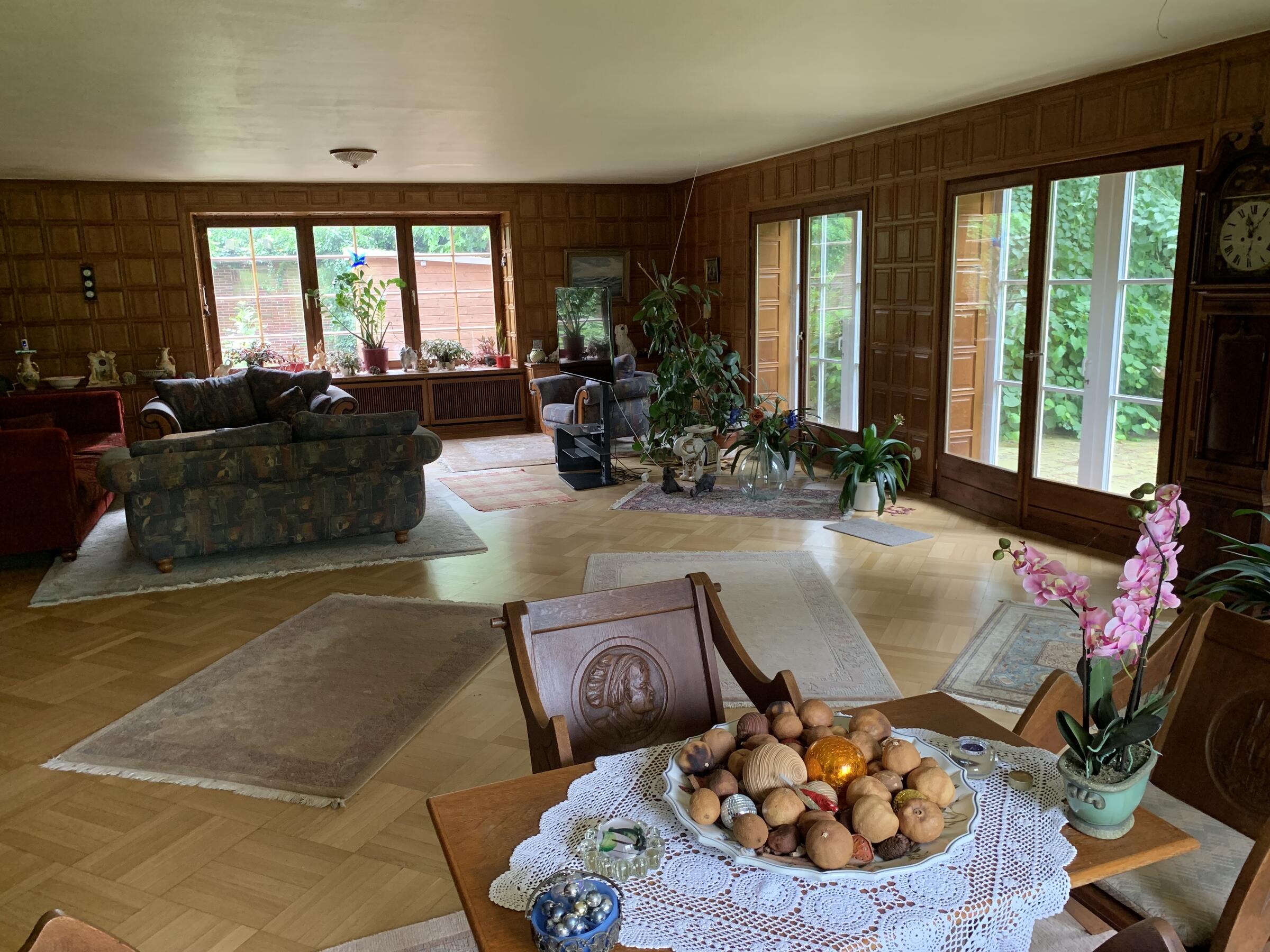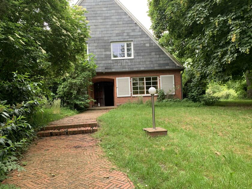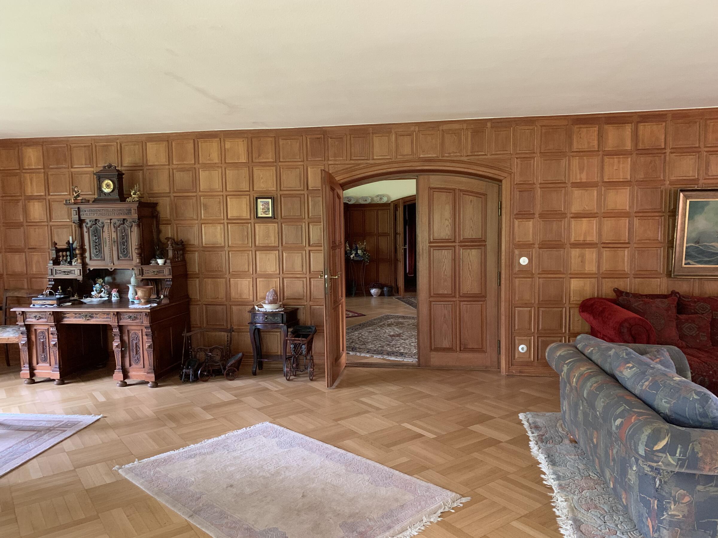 Das freistehende und teilweise mit einer Mauer umgebene Haus bietet eine Innenraumfläche von ca. 400 m² und befindet sich auf einem großem Grundstück mit Altbaumbestand. Das Haus wurde ungefähr im Jahr 1900 erbaut und in den 1960er Jahren renoviert. Bis Anfang des Jahres 2022 war das Haus bewohnt. Im Innenbereich bietet das Haus 10 Wohnräume sowie eine Küche und 5 kleine Badezimmer. In den Räume finden sich einige Antiquitäten. Im Wohnbereich sind die Wände vertäfelt und durch die Fenster fällt viel Tageslicht. Neben dem großen und weitläufigen Grundstück stehen auch 2 Garagen und ein Parkplatz zur Verfügung.