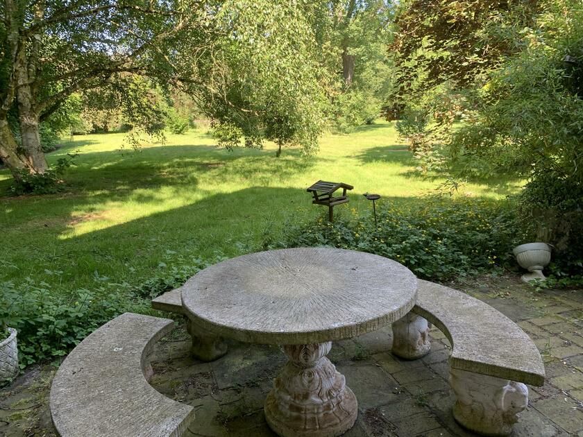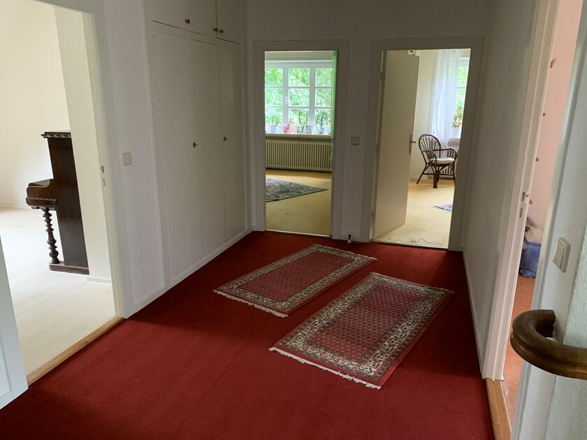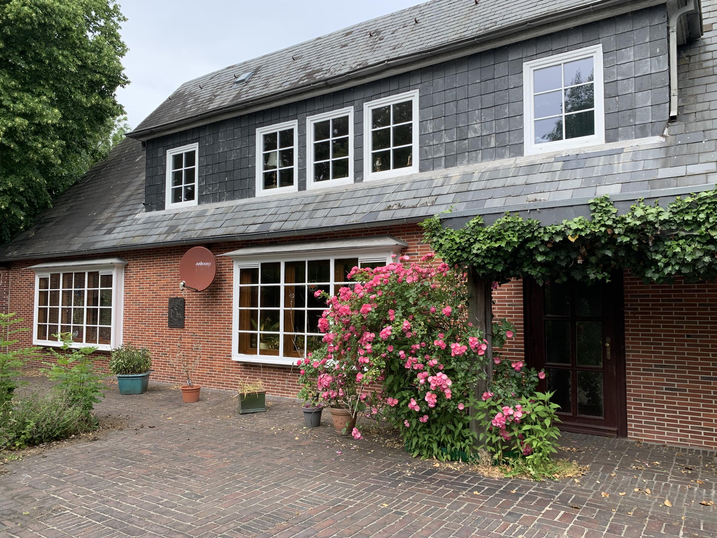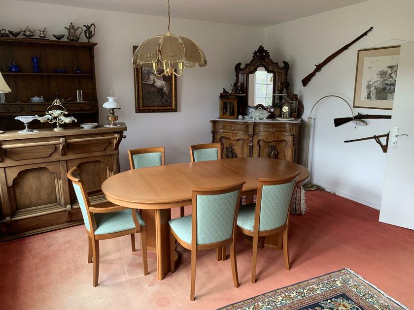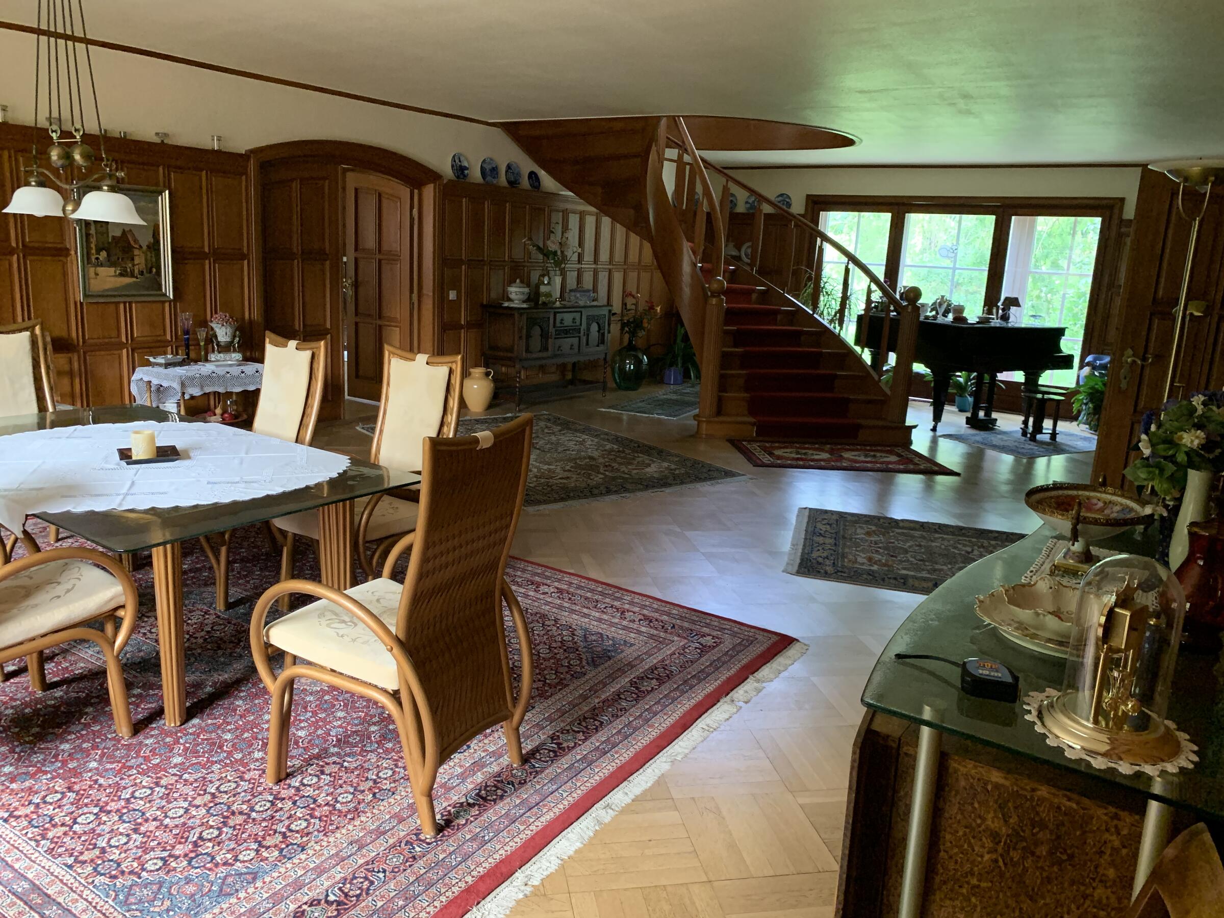 Das freistehende und teilweise mit einer Mauer umgebene Haus bietet eine Innenraumfläche von ca. 400 m² und befindet sich auf einem großem Grundstück mit Altbaumbestand. Das Haus wurde ungefähr im Jahr 1900 erbaut und in den 1960er Jahren renoviert. Bis Anfang des Jahres 2022 war das Haus bewohnt. Im Innenbereich bietet das Haus 10 Wohnräume sowie eine Küche und 5 kleine Badezimmer. In den Räume finden sich einige Antiquitäten. Im Wohnbereich sind die Wände vertäfelt und durch die Fenster fällt viel Tageslicht. Neben dem großen und weitläufigen Grundstück stehen auch 2 Garagen und ein Parkplatz zur Verfügung.