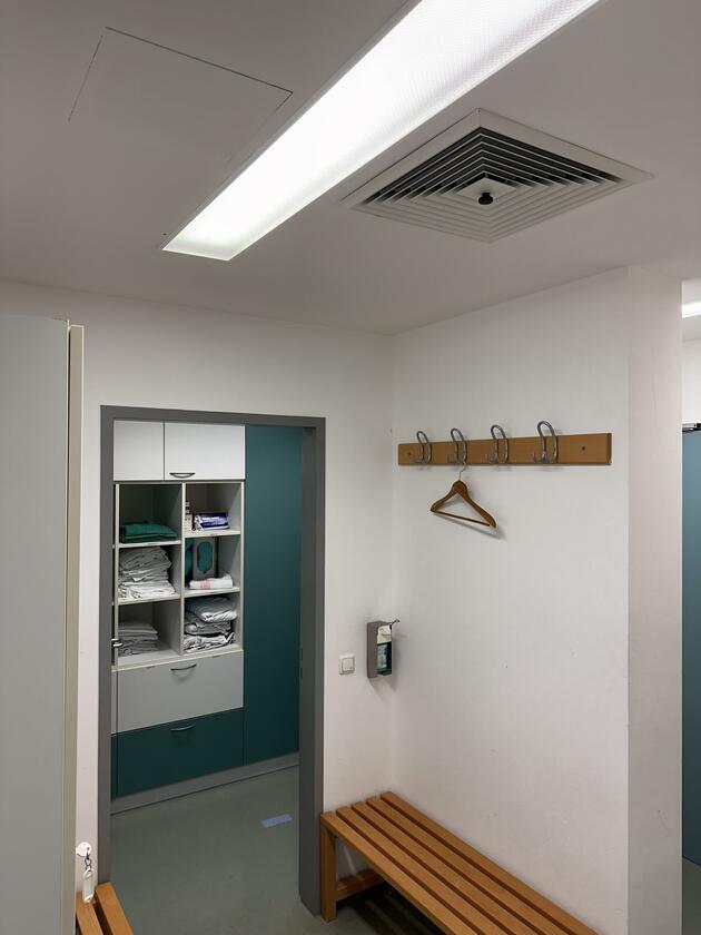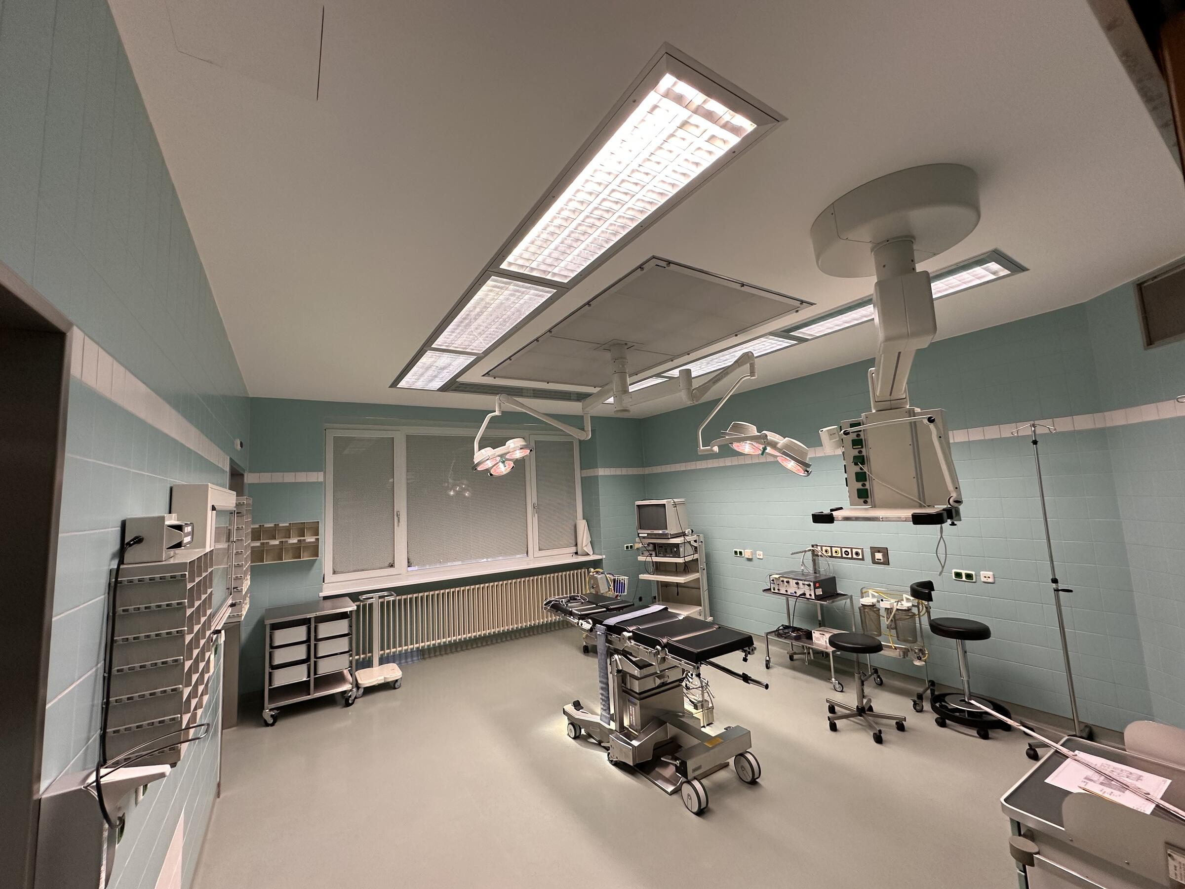 - OP-Saal (2. OG)Fläche: 28 m²Länge: 5,6 mBreite: 4,9 mHöhe: 2,95 mmöbliert: ja
