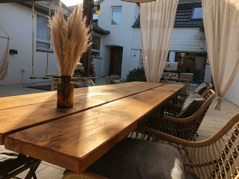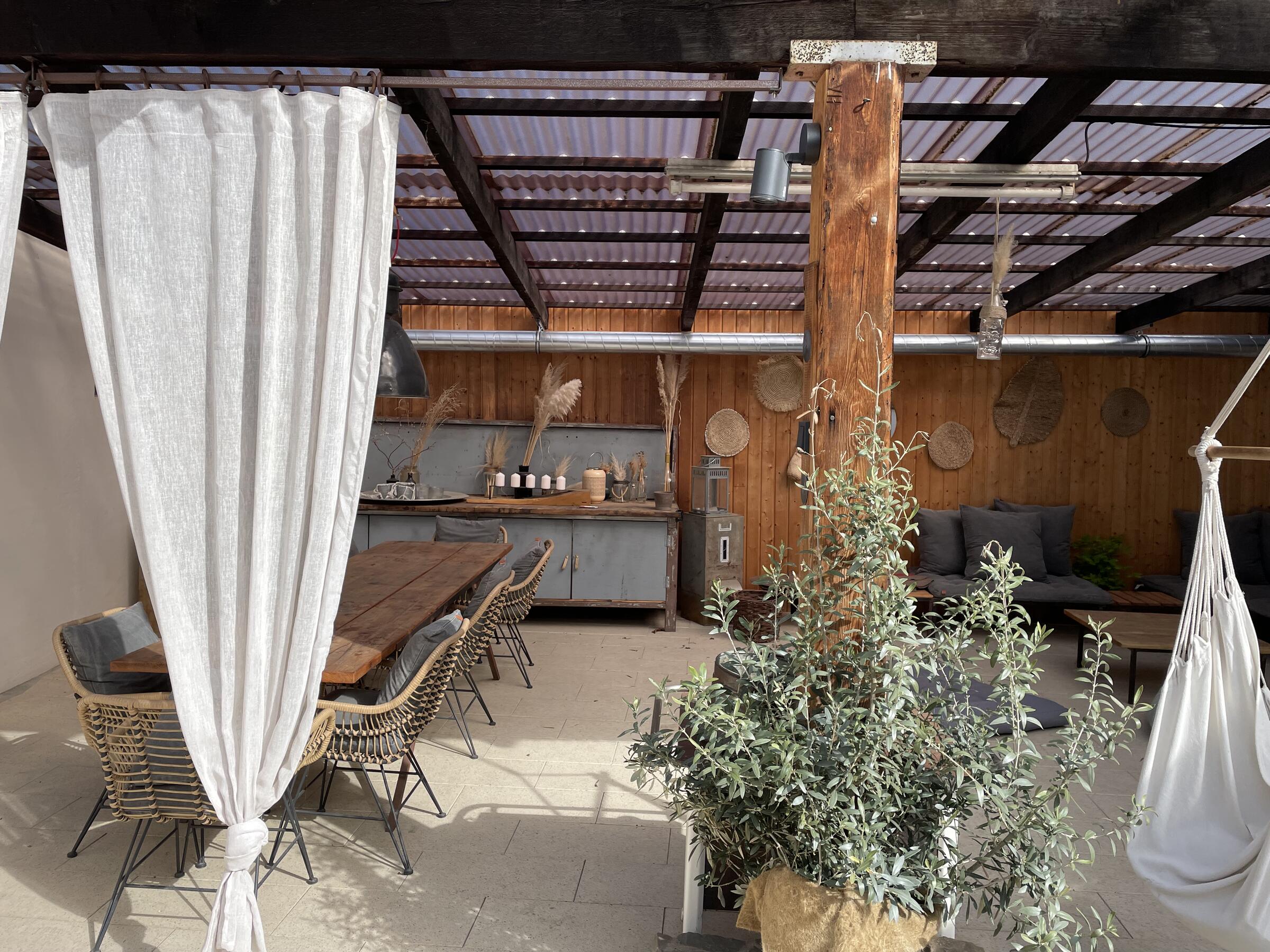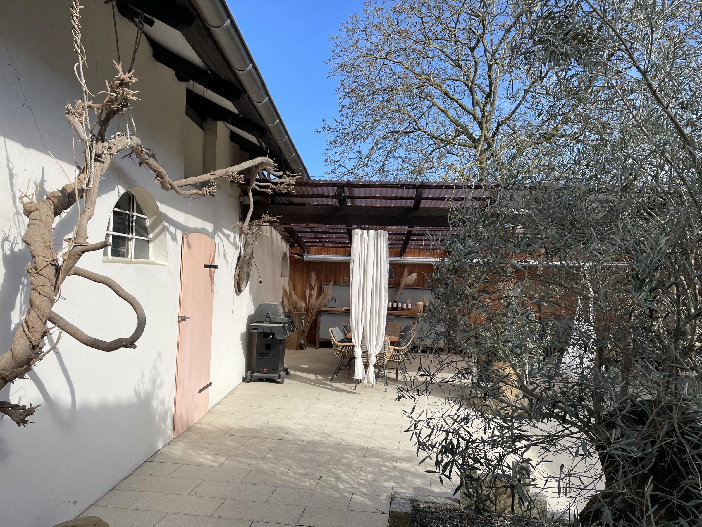 Unser im Jahr 1865 gebautes Bauernhaus wurde im Jahr 2019 aufwändig umgebaut und saniert. Der große, lichtdurchflutete Wohnbereich bietet mit der darüber liegenden Galerie 7 m Deckenhöhe. Im Außenbereich steht ein teilweise überdachter und somit wetterfester Innenhof mit einem riesigen Olivenbaum und einem Lounge-Bereich, die voll eingerichtete Werkstatt, der große Scheunenboden sowie der 1.300 m² große Garten mit eigenen Obstbäumen zur Verfügung. Die Anlieferung und Lagerung von Produktionsausrüstung ist in der Scheune und Garage Garage möglich. Die Scheune bietet genug Platz, um beispielsweise Ausrüstung und Dekorationen für mehrere Motive vorzubereiten. Der Zugang zum Haupthaus und allen Hauptmotiven kann durch die Hauswirtschaftsräume erfolgen. Die Zufahrt und der Hof bieten Platz für min. 6 Fahrzeuge. Wir sind erfahrene Motivgebende. Mehrere Produktionen haben bei uns bereits stattgefunden.