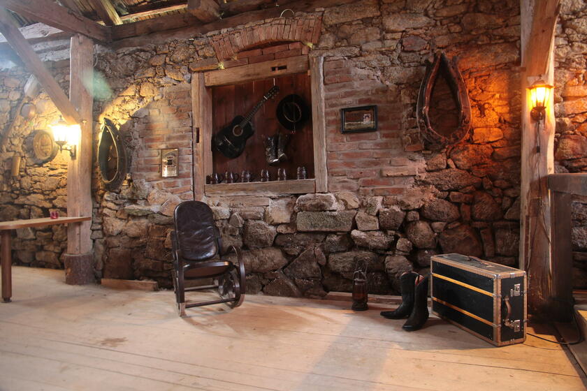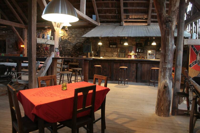 Diese einzigartige Scheune wurde im Stil eines Western Saloon umgebaut. Die Scheune ist sehr alt und besticht durch ihre authentische Atmosphäre mit vielen alten Balken und wunderschönen Steinmauern. Zur Ausstattung gehören beispielsweise alte Bierfässer, große Heuwagen, ein altes Piano und viele weitere rustikale Accessoires. Die Scheune ist nicht beheizt und daher im Winter nur eingeschränkt nutzbar. Im Außenbereich kann ebenfalls der Garten genutzt werden. Parkplätze stehen vor der Scheune auf der vorbeiführenden und kaum befahrenen Straße zur Verfügung. Die Autobahn Nürnberg-Pilsen-Prag ist nur ca. 5 km entfernt.
