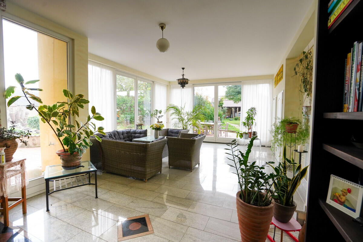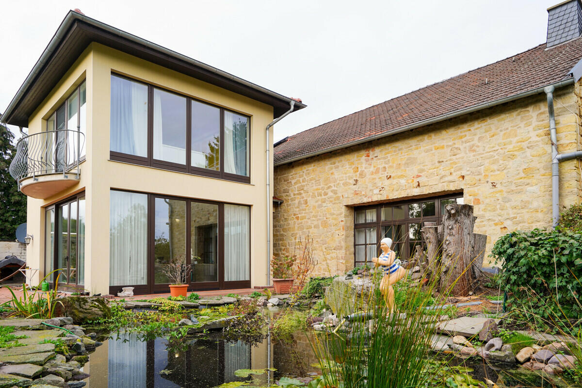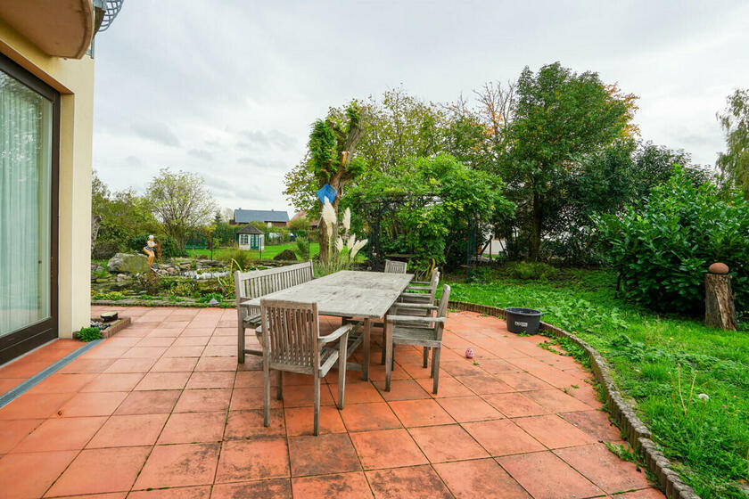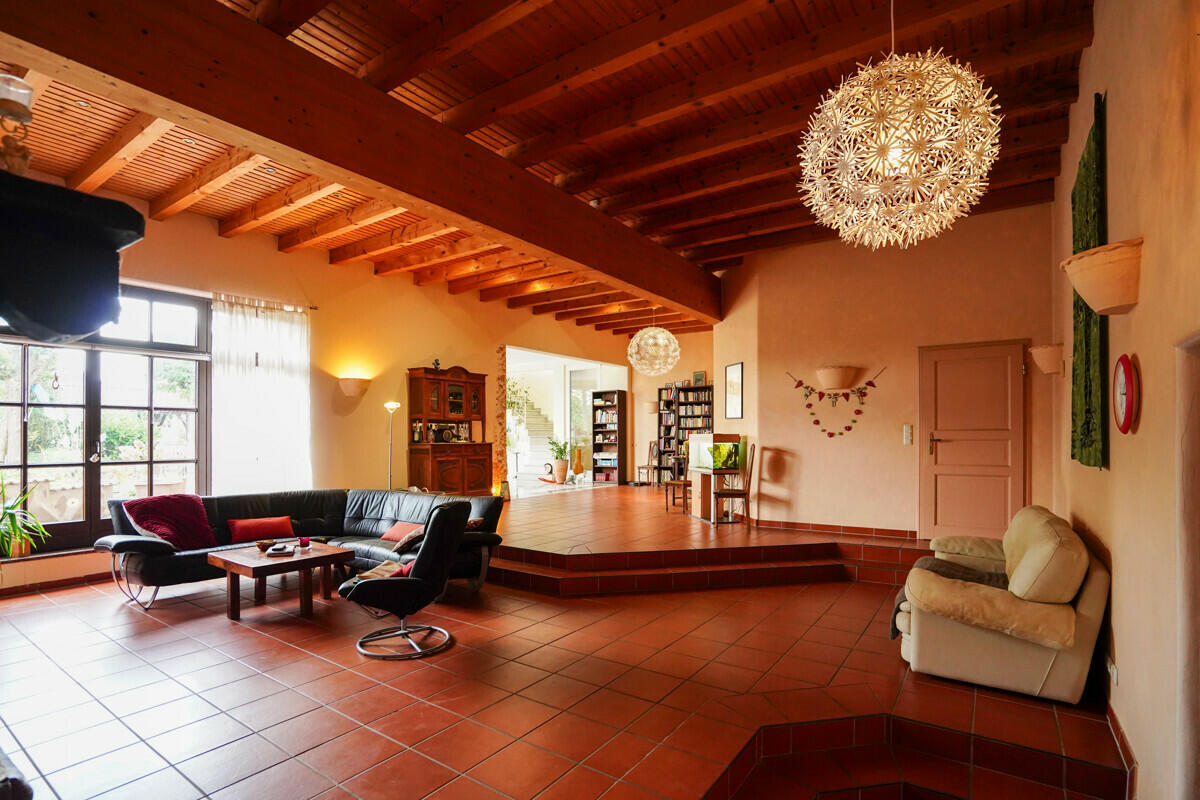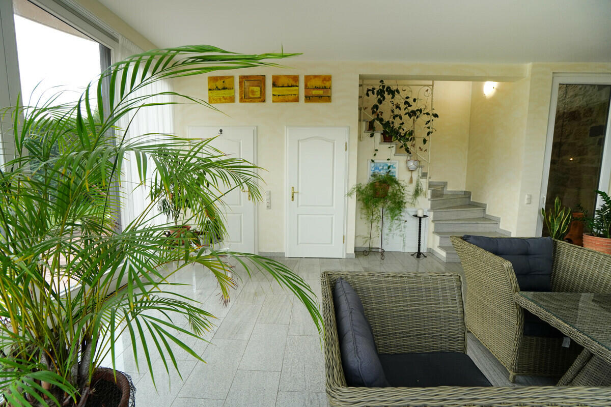 Unser Haus befindet sich im ruhigen und ländlichen Ortsteil Wollersheim. Der große Wohnbereich unseres Hauses ist offen gestaltet und verbindet das Kaminzimmer, die Bibliothek und den Wintergarten harmonisch miteinander. Durch die bodentiefen Fenster fällt viel Tageslicht in die Wohnräume. Die Fenster können teilweise mit Hilfe von Gardinen und Vorhängen abgedunkelt werden. Die vollständig ausgestattete Wohnküche bietet unter anderem einen freistehenden Küchenblock. Unser Haus verfügt auch über einen Innenpool mit Gegenstromanlage. Im Außenbereich stehen mehrere Terrassen und unser großer Garten mit einem Brunnen, einem Teich und verschiedenen Sitzbereichen zur Verfügung. Unser Grundstück ist nur ca. 50 Autominuten über die A1 vom Kölner Zentrum entfernt.