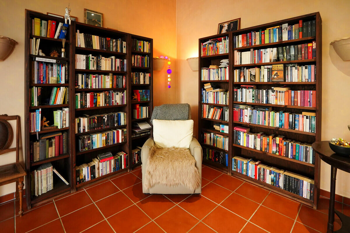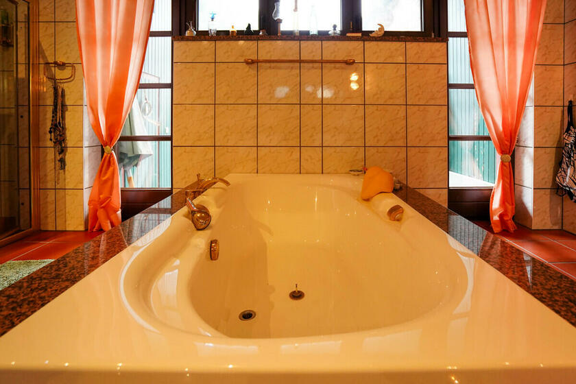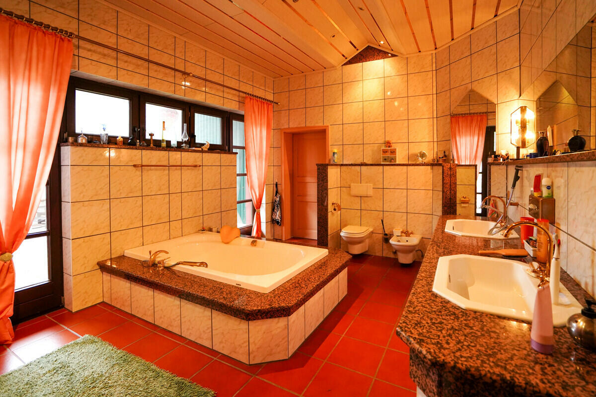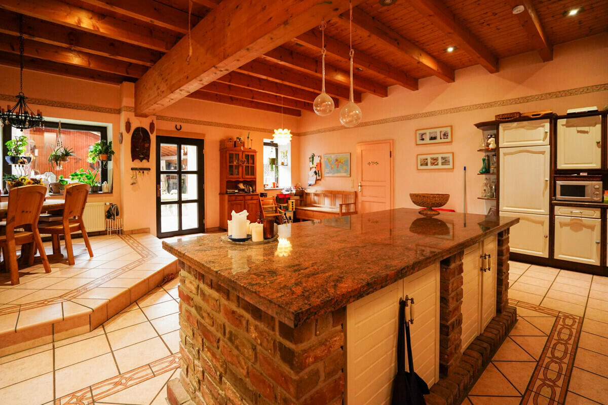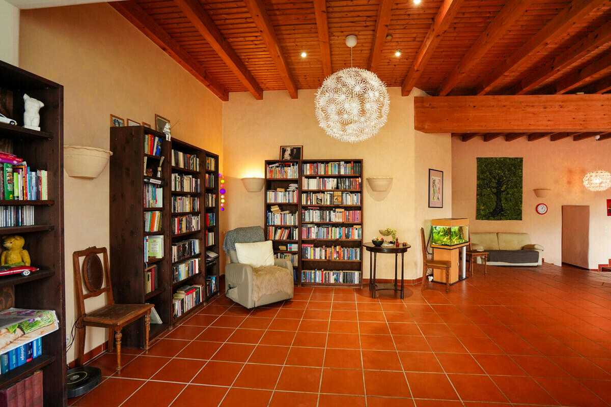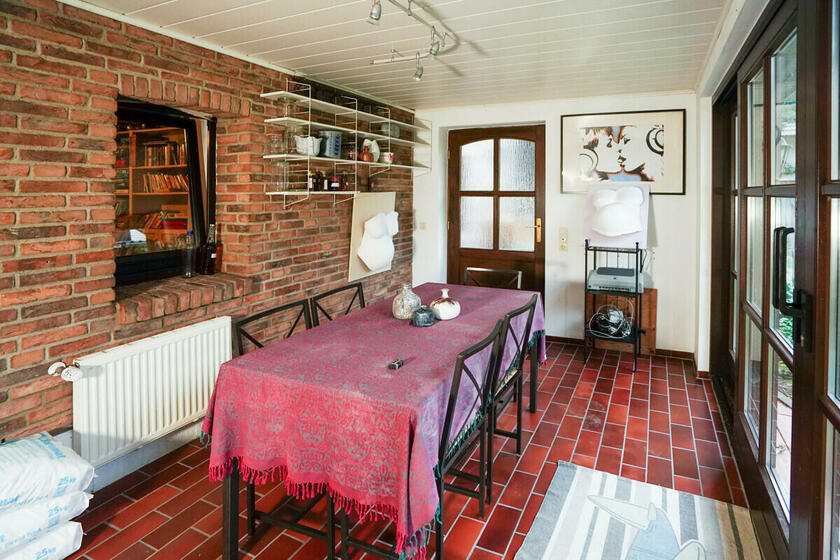 Unser Haus befindet sich im ruhigen und ländlichen Ortsteil Wollersheim. Der große Wohnbereich unseres Hauses ist offen gestaltet und verbindet das Kaminzimmer, die Bibliothek und den Wintergarten harmonisch miteinander. Durch die bodentiefen Fenster fällt viel Tageslicht in die Wohnräume. Die Fenster können teilweise mit Hilfe von Gardinen und Vorhängen abgedunkelt werden. Die vollständig ausgestattete Wohnküche bietet unter anderem einen freistehenden Küchenblock. Unser Haus verfügt auch über einen Innenpool mit Gegenstromanlage. Im Außenbereich stehen mehrere Terrassen und unser großer Garten mit einem Brunnen, einem Teich und verschiedenen Sitzbereichen zur Verfügung. Unser Grundstück ist nur ca. 50 Autominuten über die A1 vom Kölner Zentrum entfernt.