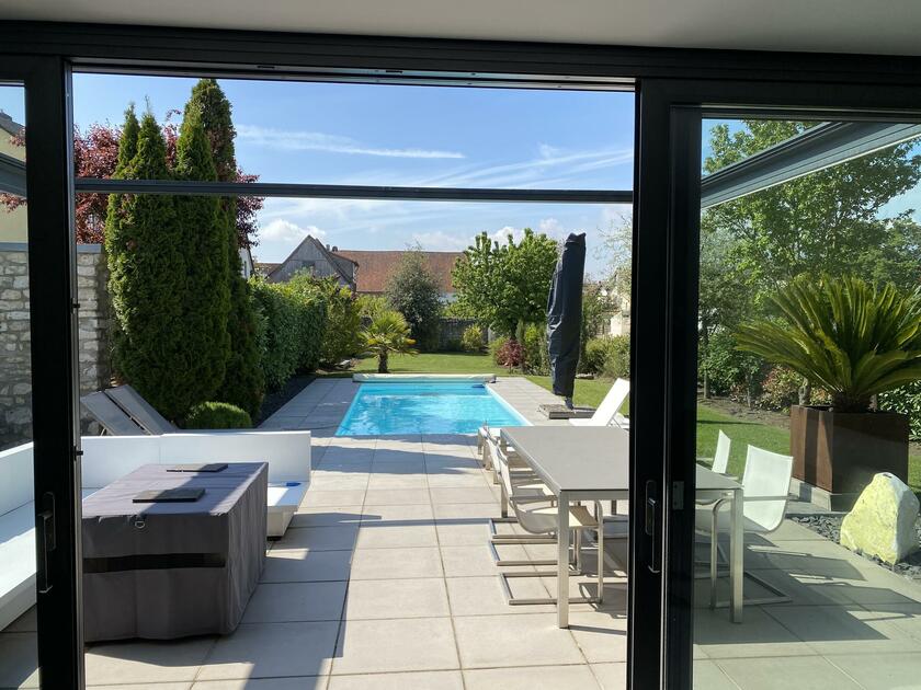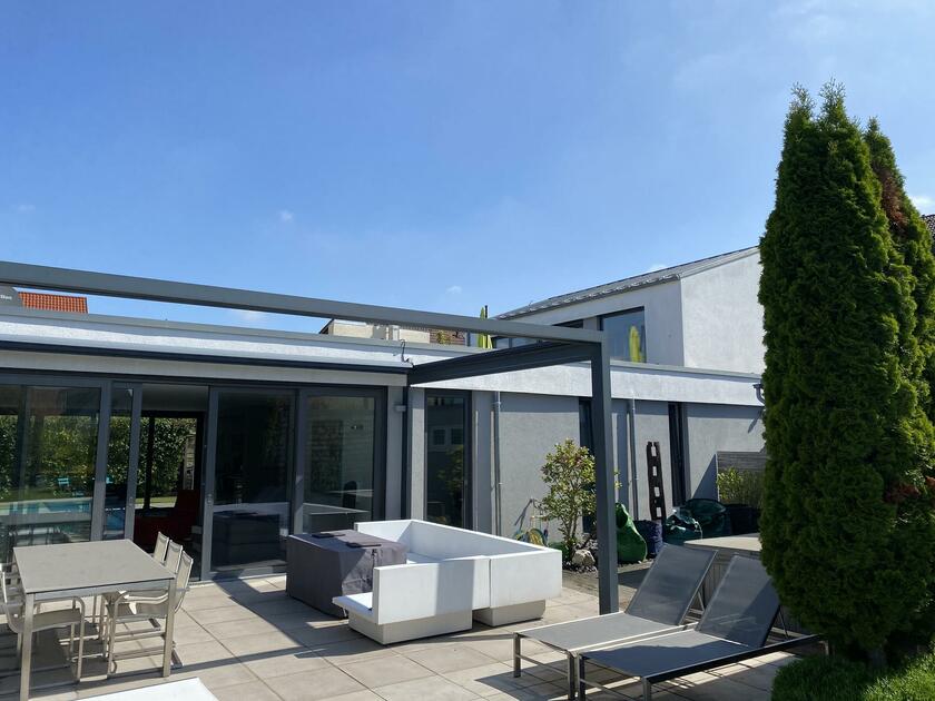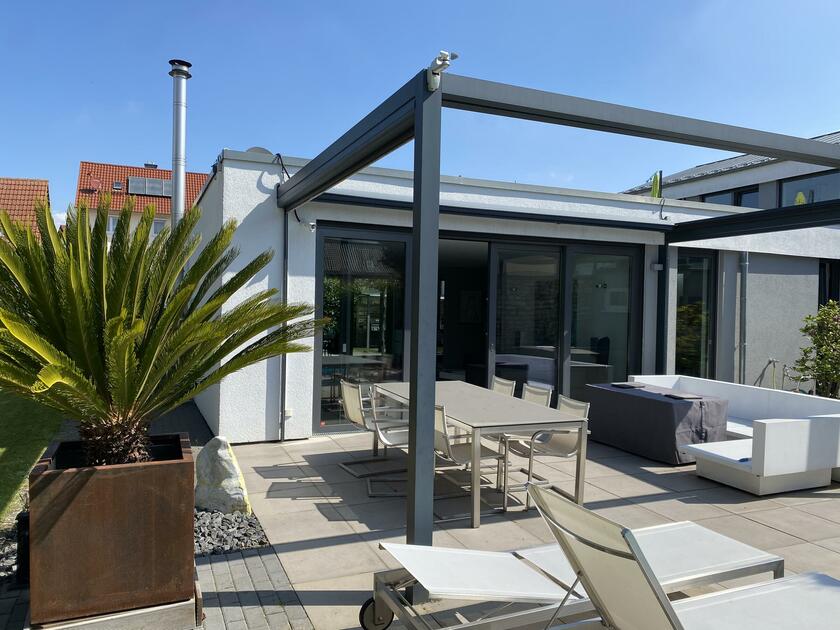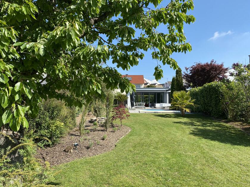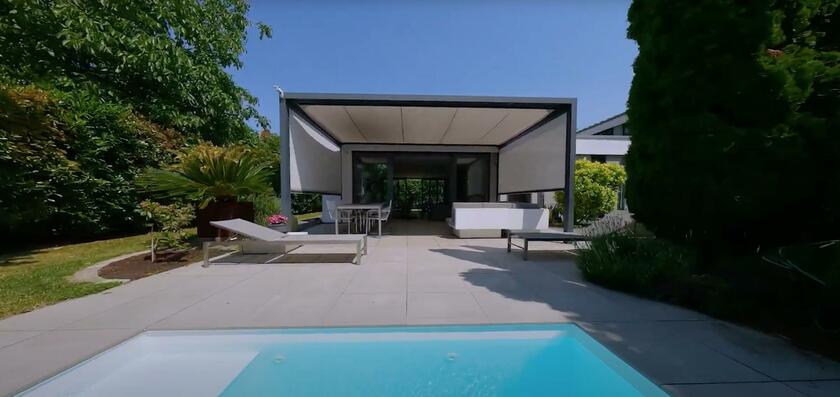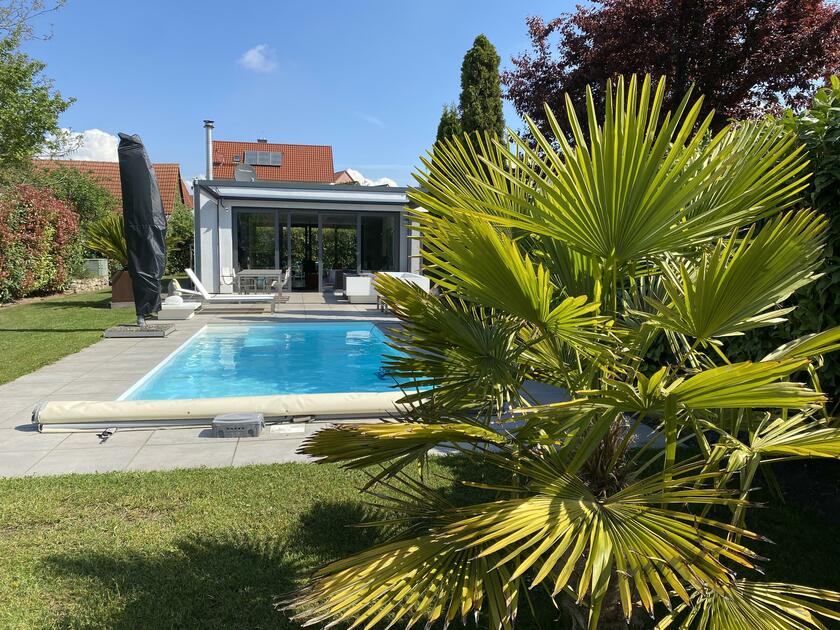 Die Außenfläche von ca. 1.200 m² bietet vielfältige Motive für Außenaufnahmen: Eine moderne Pool- und Jacuzzi-Anlage auf der Südseite schafft cleane und elegante Bilder, während der mediterrane Grillbereich mit Weinfass auf der Nordseite eine rustikale, warme Atmosphäre bietet. Diese Vielfalt an Motiven ermöglicht verschiedene Szenarien, ohne den Standort wechseln zu müssen.