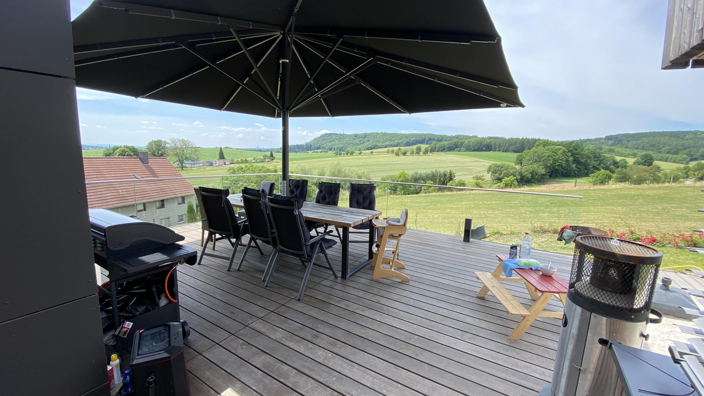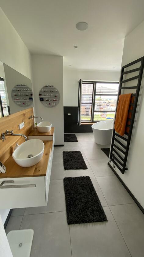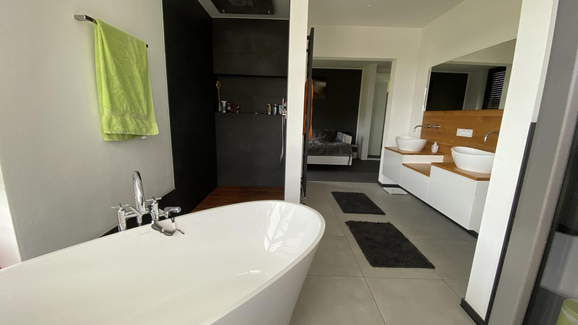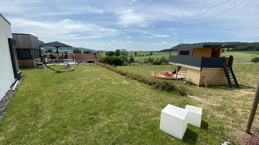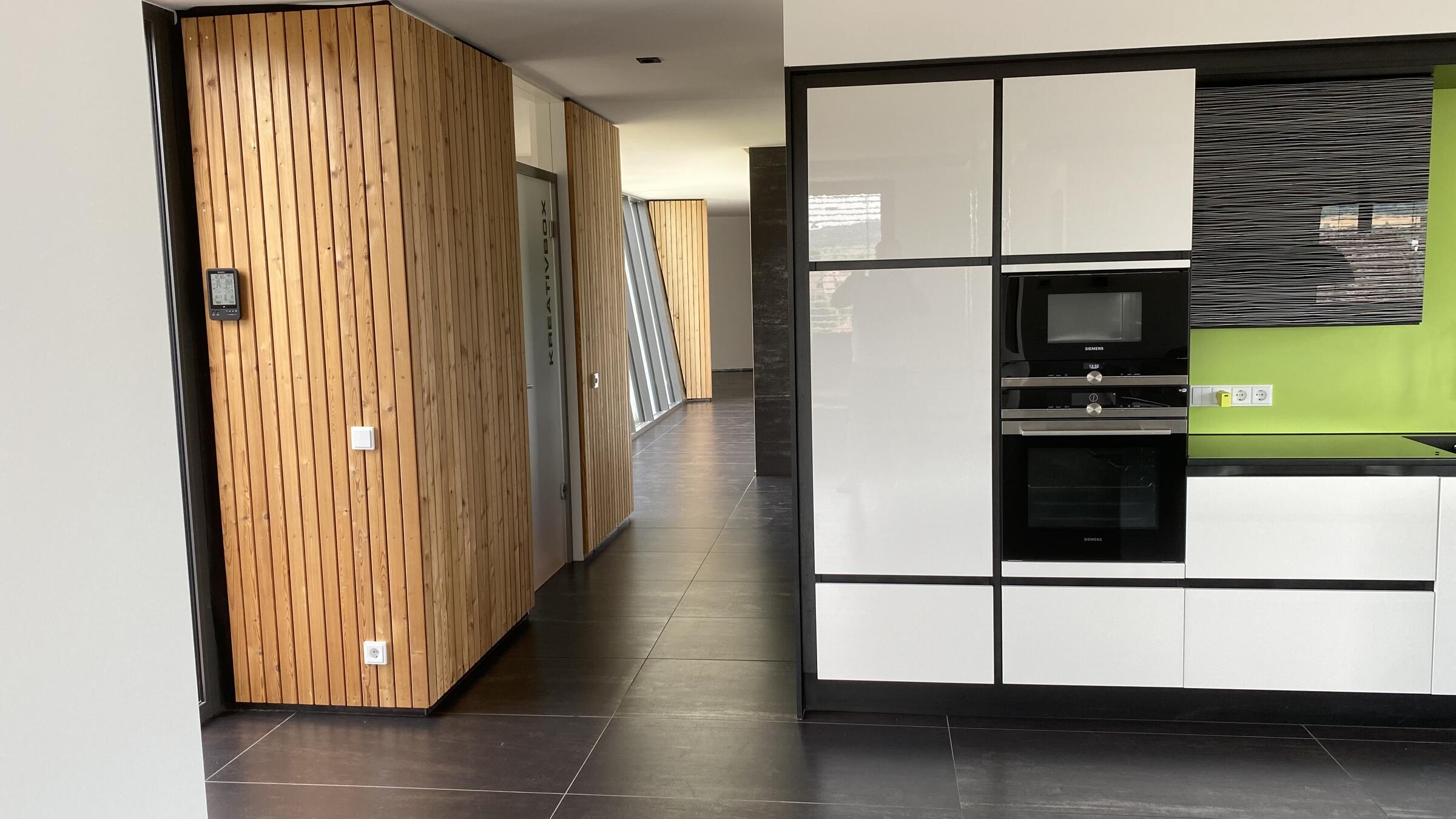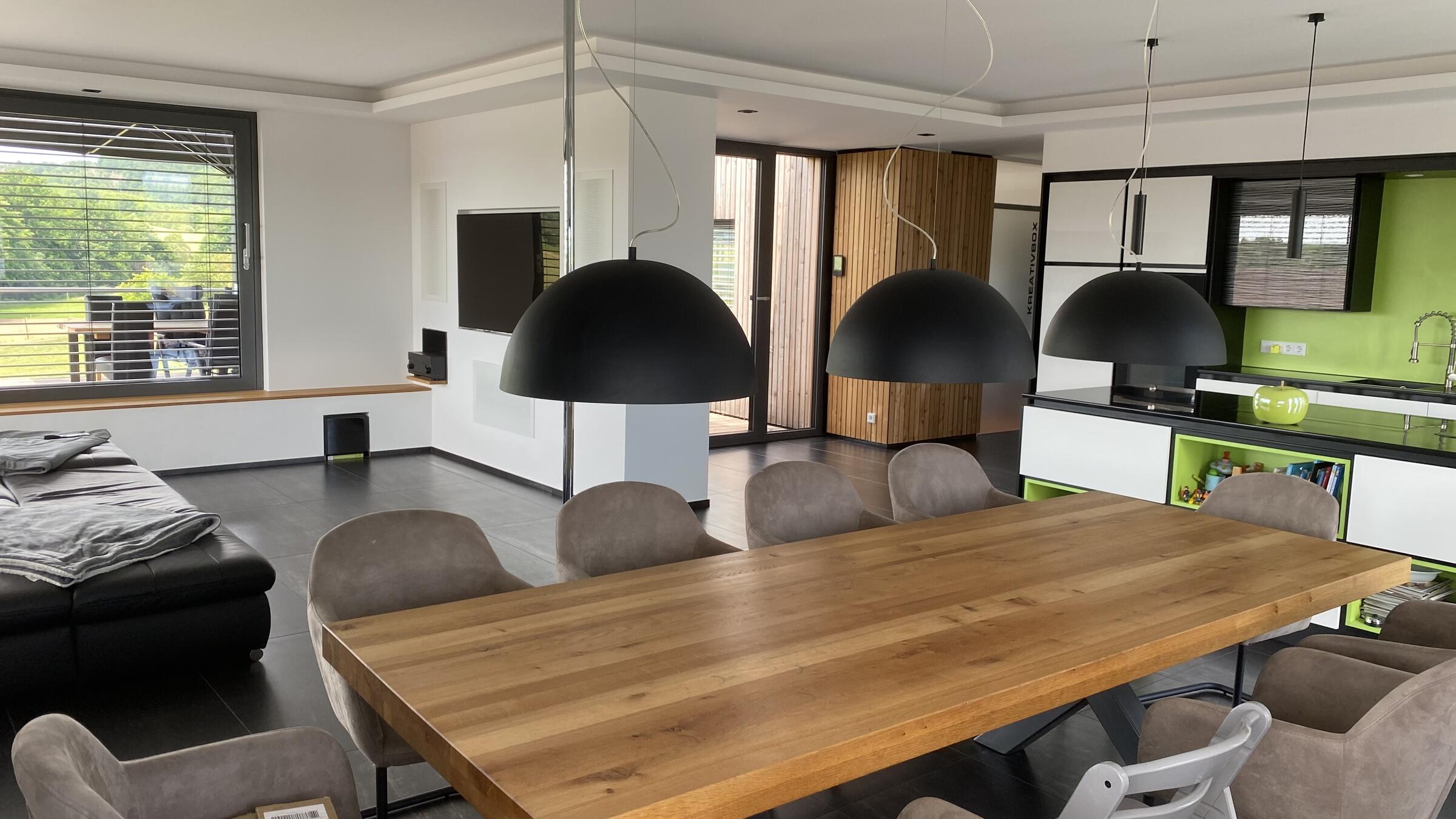 Unser Einfamilienhaus "Straight View" steht für moderne, gradlinige Architektur mit einem starken Bezug zum Außenraum. Ein konstruktives Highlight stellt der 4,5 m auskragende Wohnbereich dar. Eine Vorhangfassade aus anthrazitfarbenen Eternit®-Platten für den öffentlichen Wohnbereich, ein weißes Wärmedämmverbundsystem mit grauen Farbakzenten für den privaten Wohnbereich und eine senkrechte Holzverschalung aus Lärchenholz an der »Creativ Box« gliedern das Haus. Dank der modernen Haustechnik ist das Haus unabhängig von Strom und fossilen Brennstoffen. Eine tolle und moderne Kulisse.