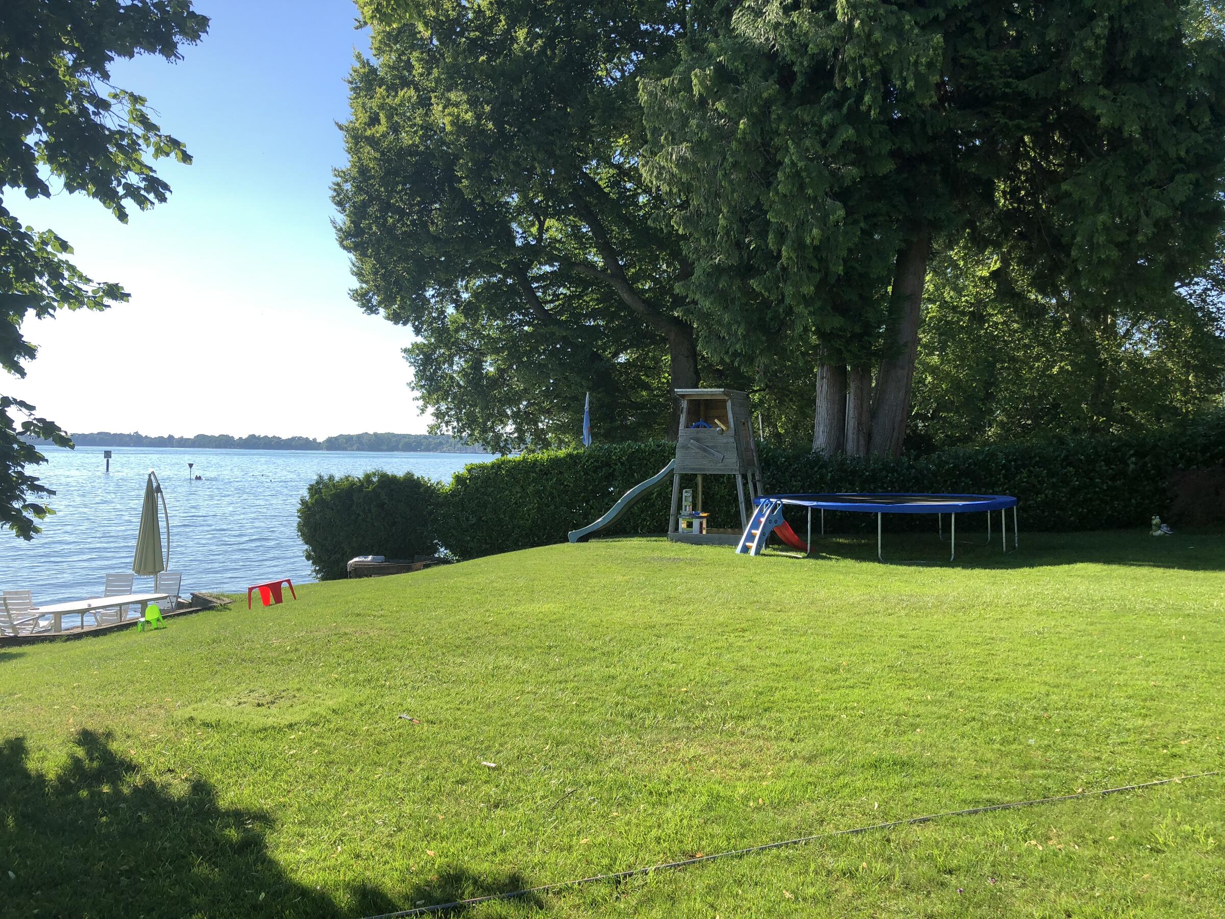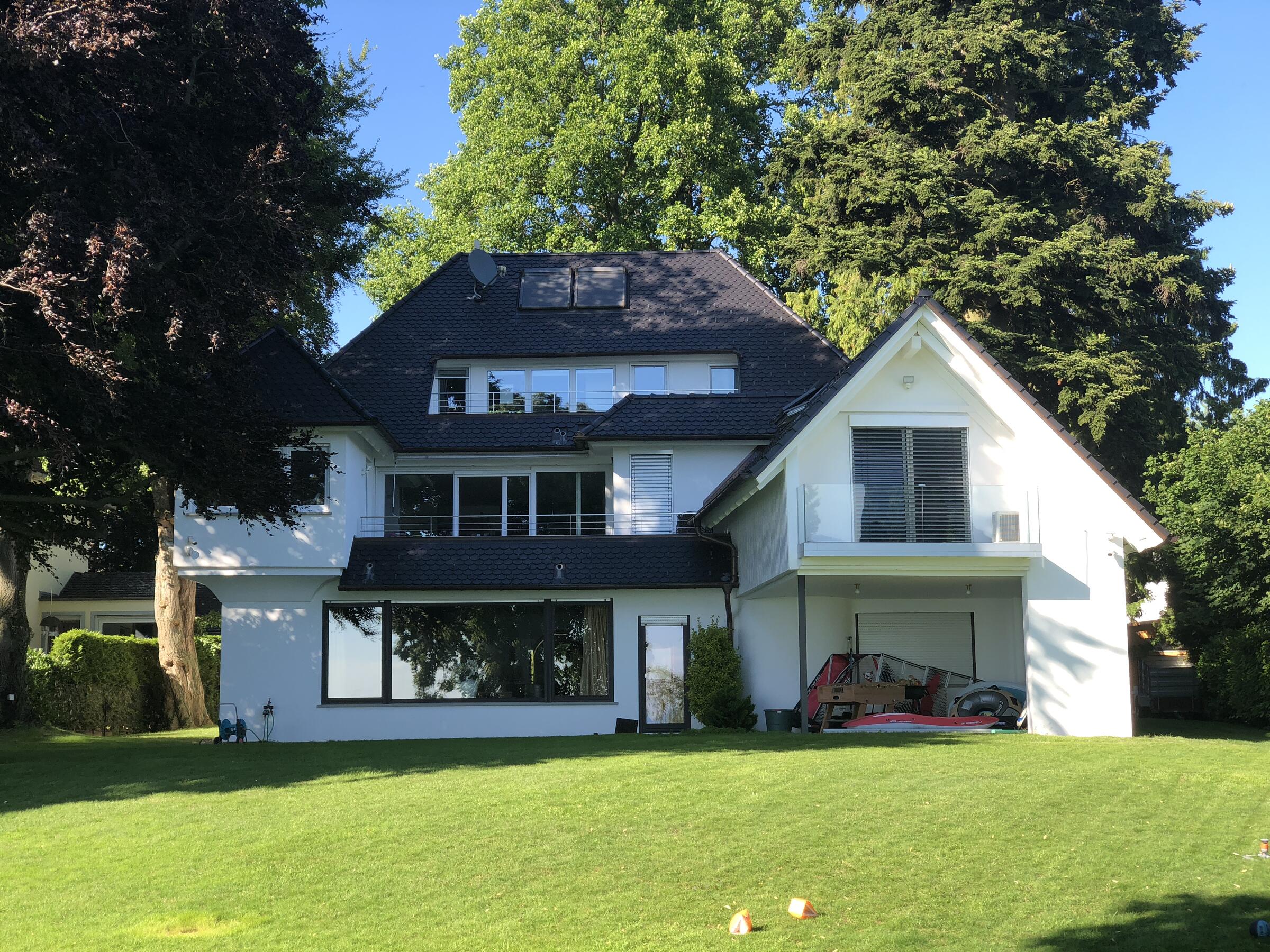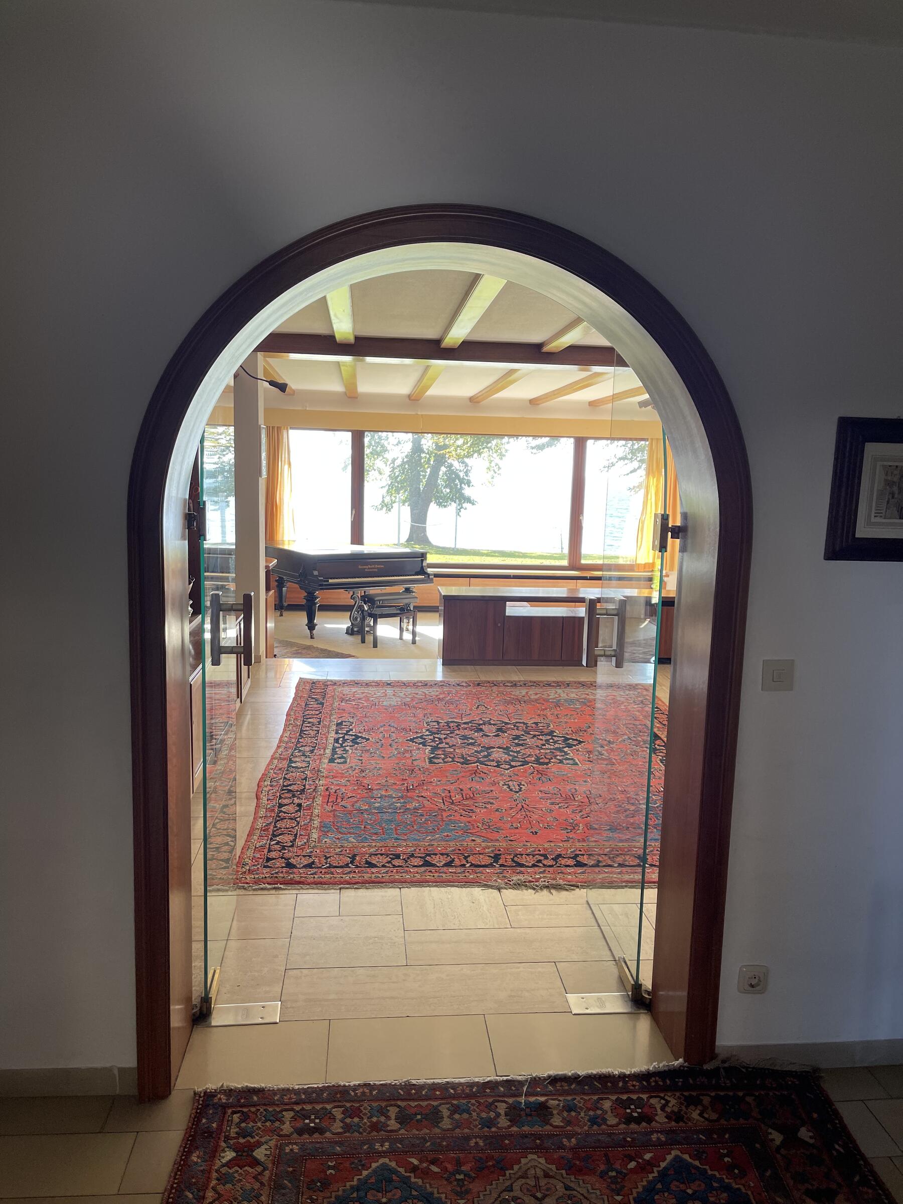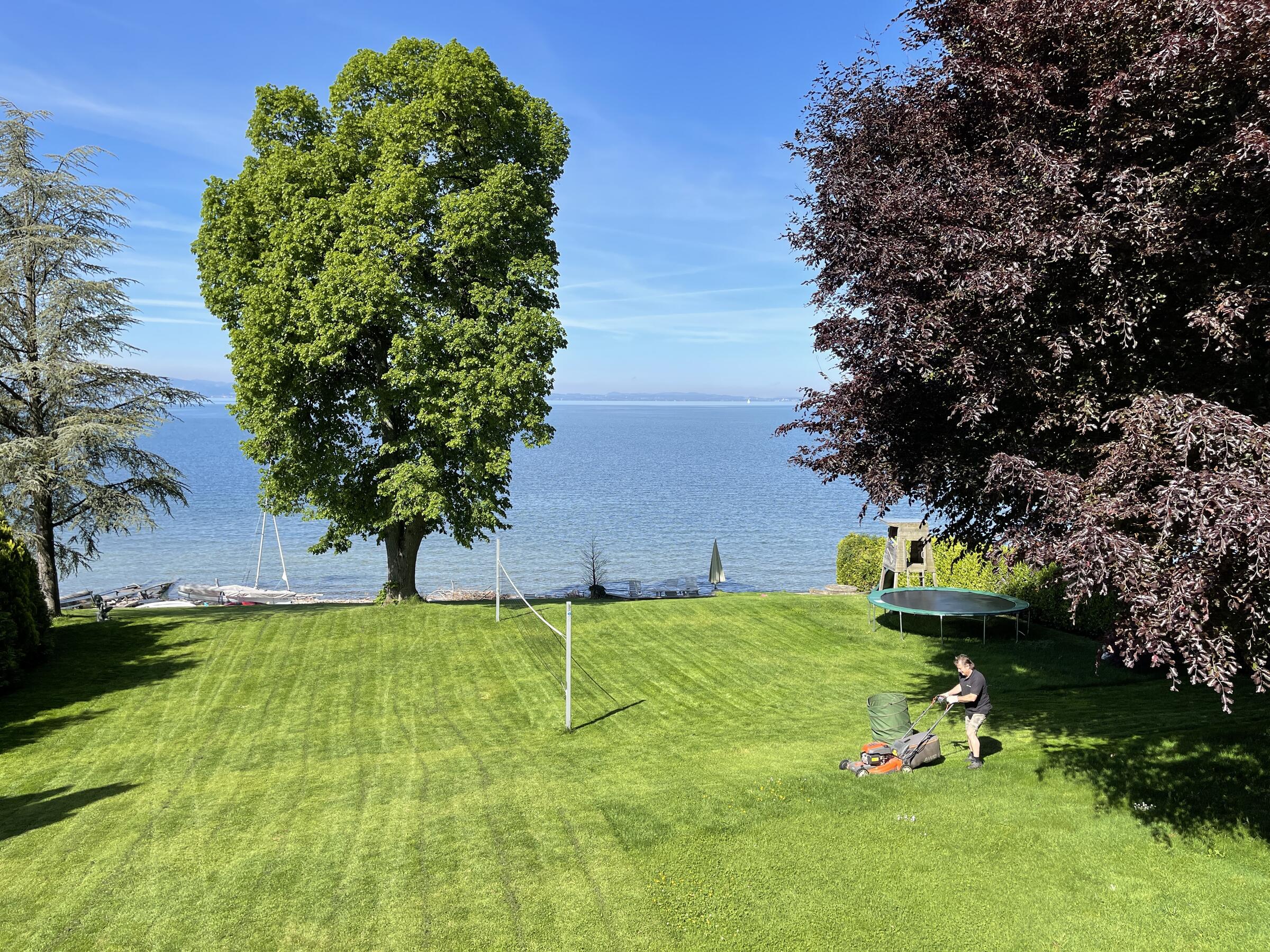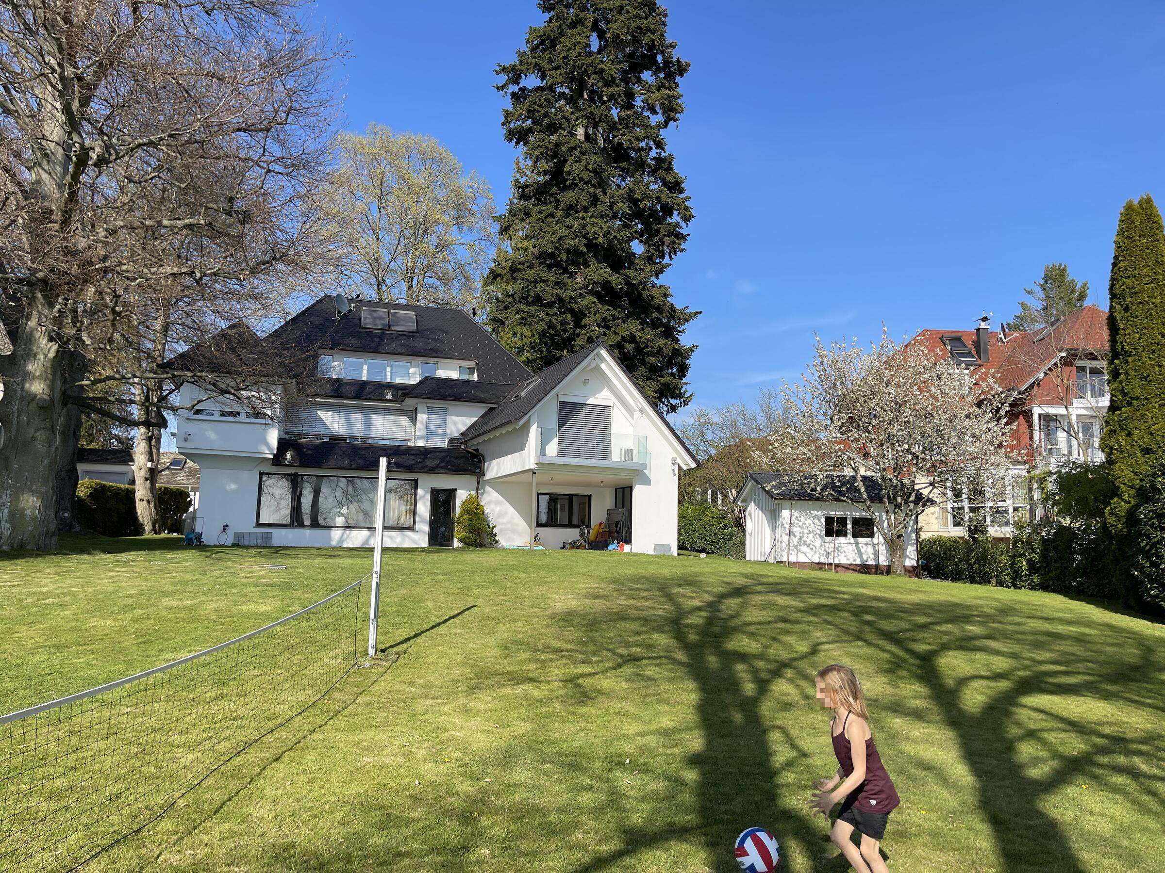This 440 square meter Villa, located directly on Lake Constance, is composed of two separate units divided into 5 floors. It is set on a 2000 square meter lush lawn ending with a 30 meter long private beach. The villa was built in 1969 and has been in our family since 1975 when it was modified and expanded toward the lake. I occupy the upper apartment with my family, which was completely renovated in 2013, together with the roof and the façade of the villa. The ground floor, on the other hand, is still original and vacant.