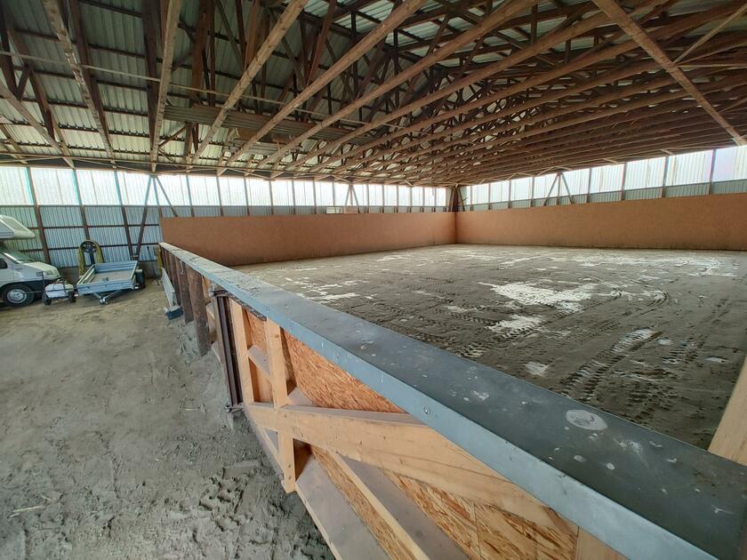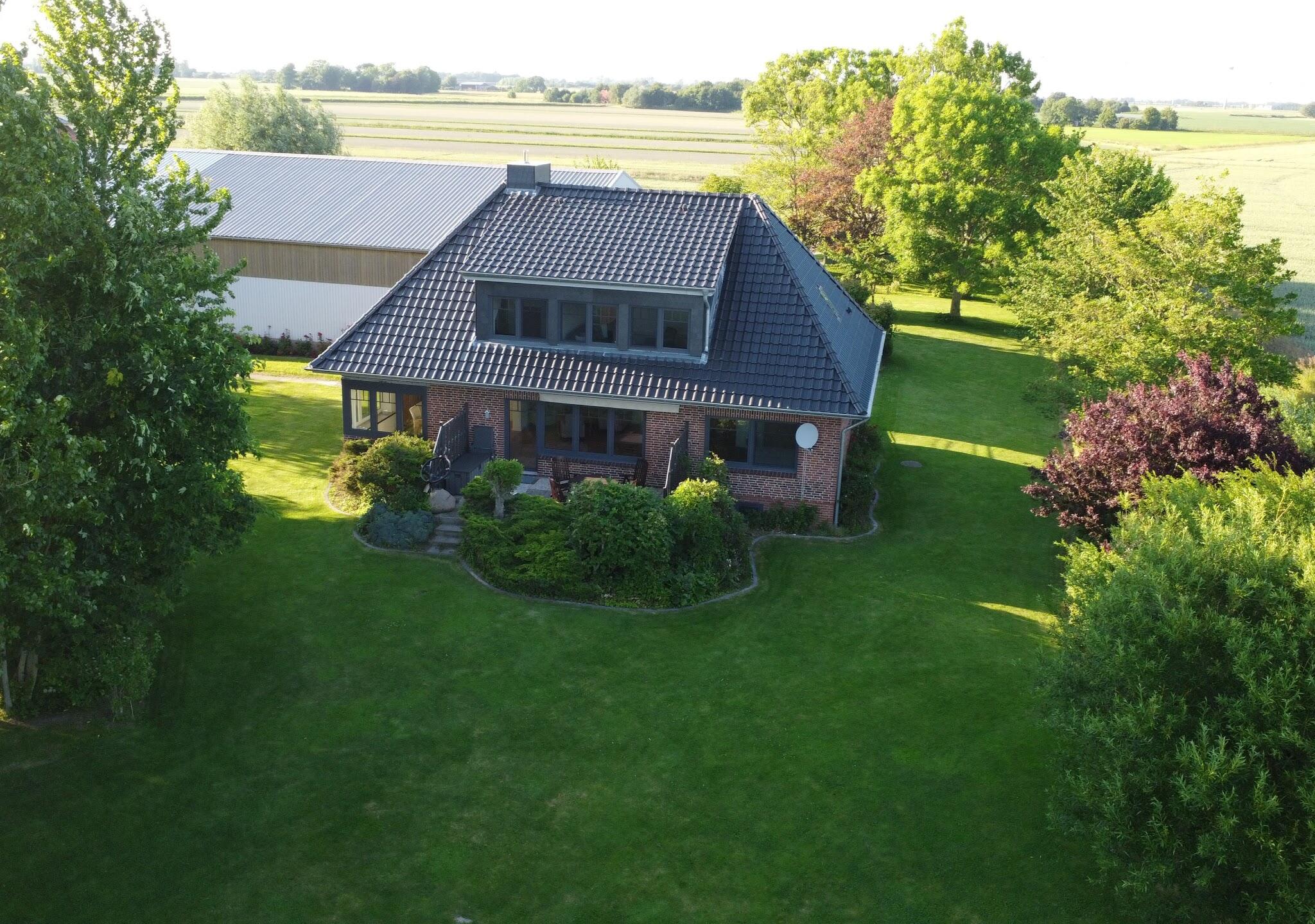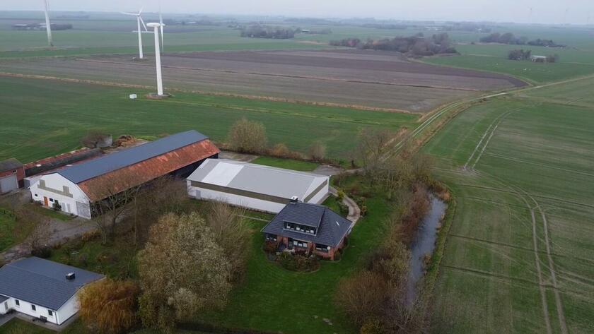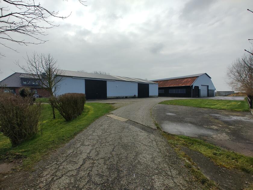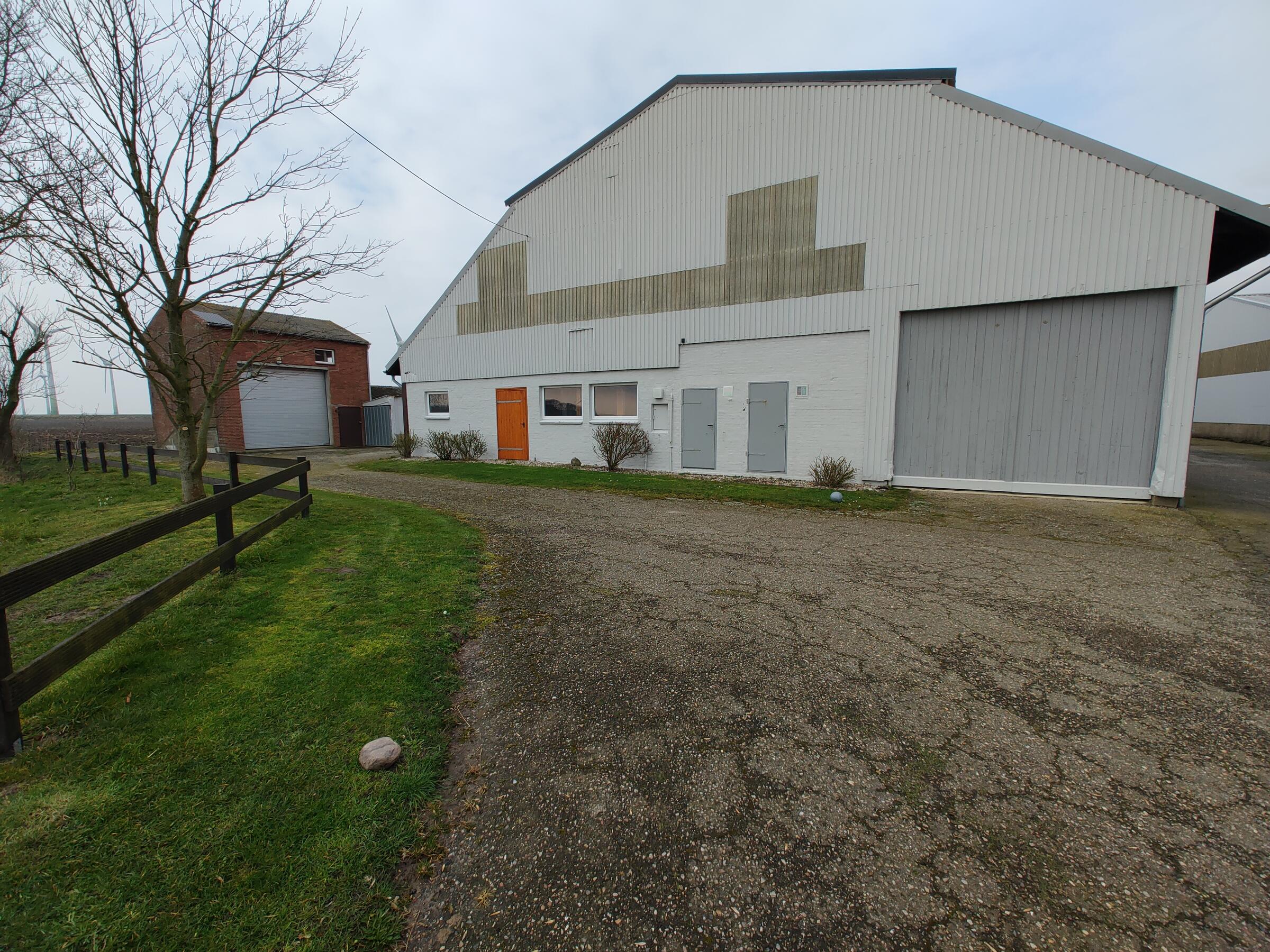 Ebenfalls befinden sich 3 Hallen auf dem Hof. Die erste ist ein nicht mehr benutzter alter Schweinestall. Die Scheune mit zwei Pferdeboxen und Strohballenlager wurde 1945 aus den Trümmern wieder aufgebaut. Diese Scheune hat unter anderem ein großes altes Holztor. Das Dach ist mit Dachziegeln bestückt. In der anderen Hälfte dieser Scheune werden landwirtschaftliche Geräte und Fahrzeuge gelagert. In der dritten Halle, die außen mit Blech verkleidet ist, befindet sich ein Reitplatz sowie eine kleine Werkstatt. Der Hof ist 4 km von der Nordseeküste entfernt.