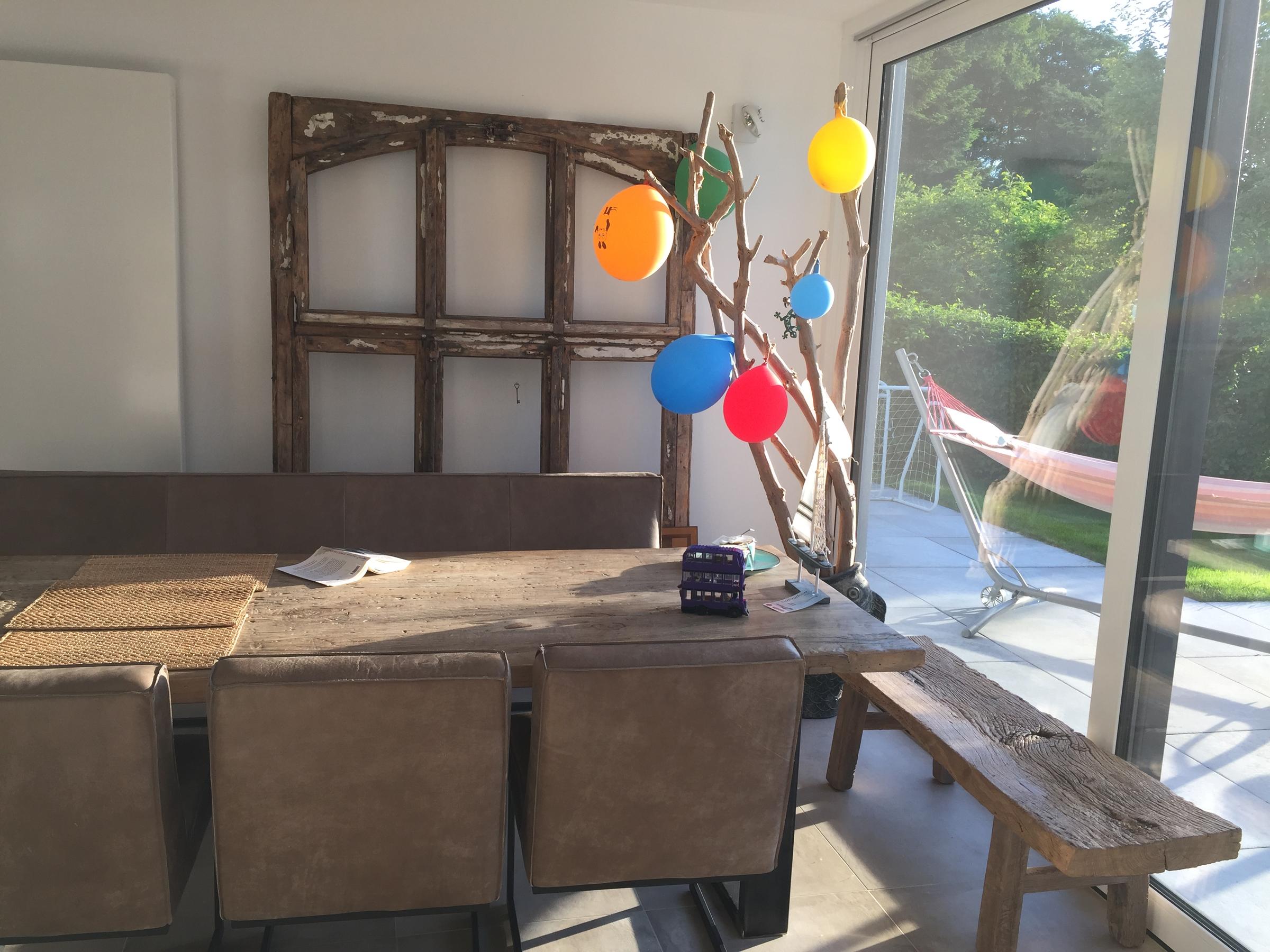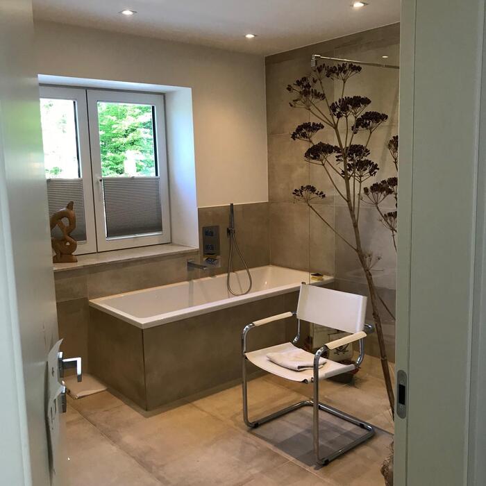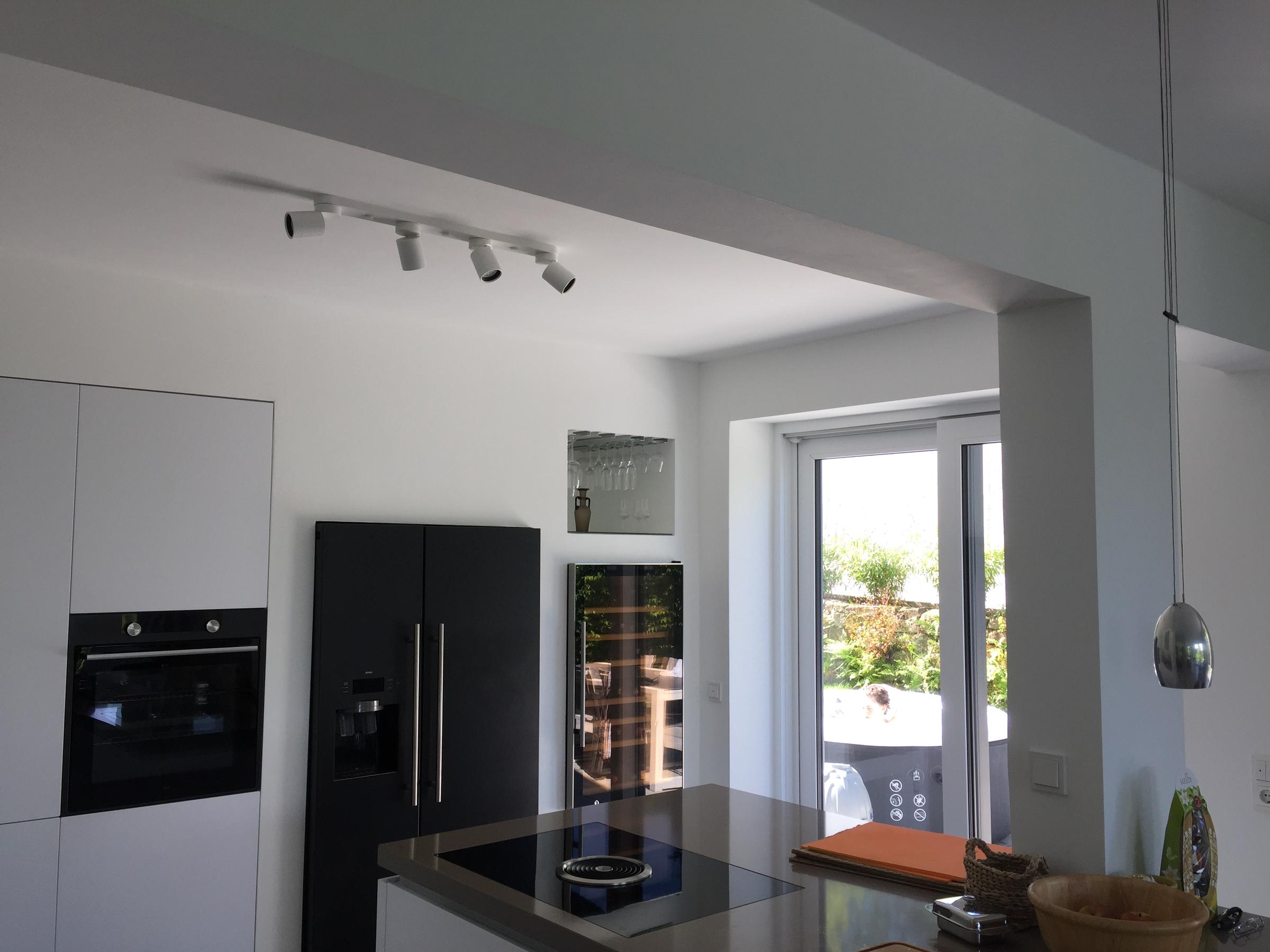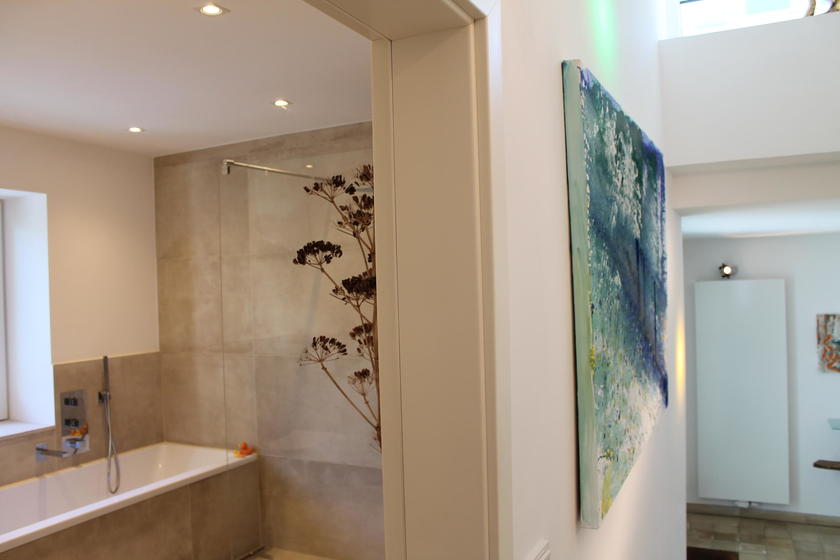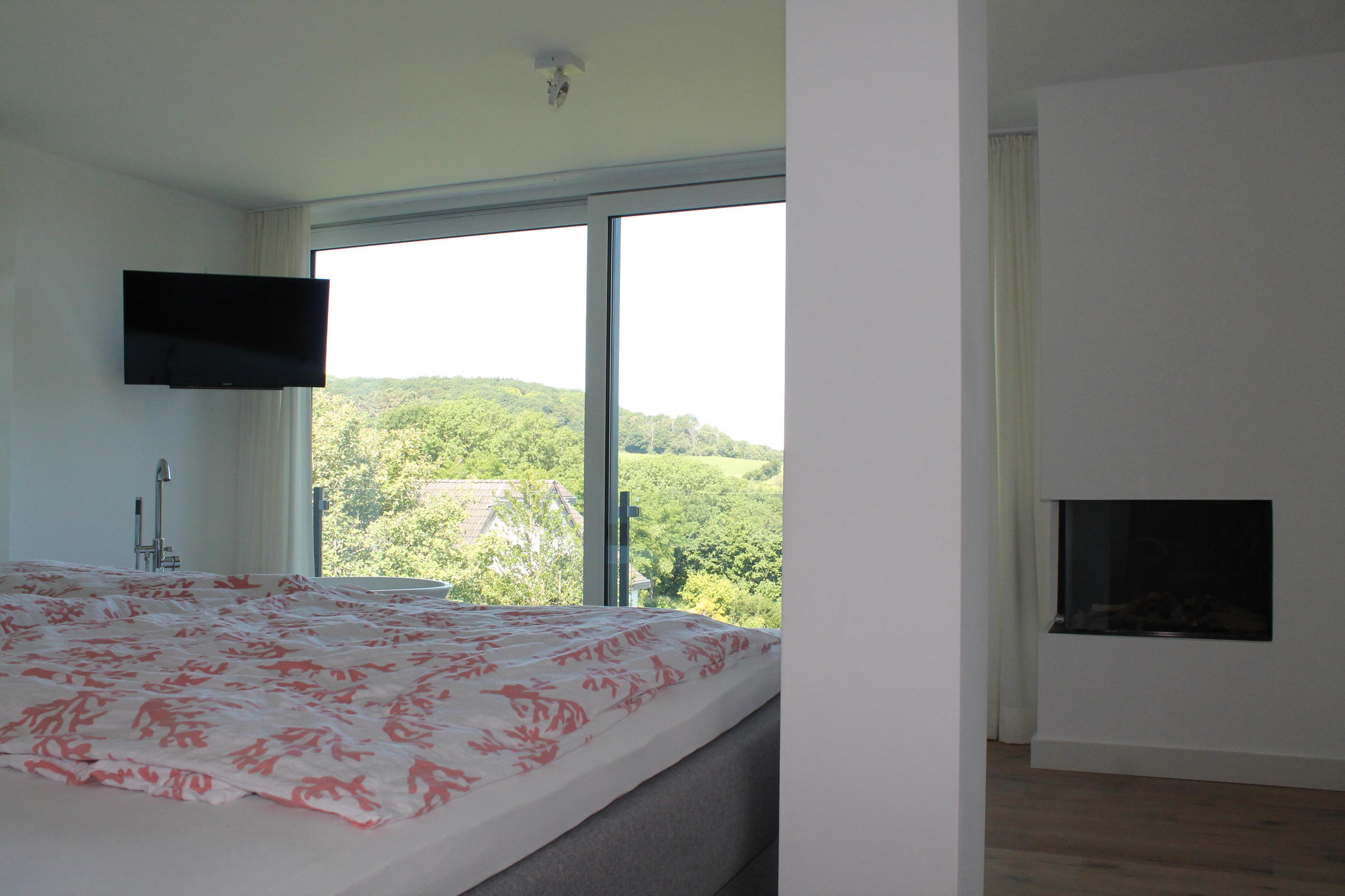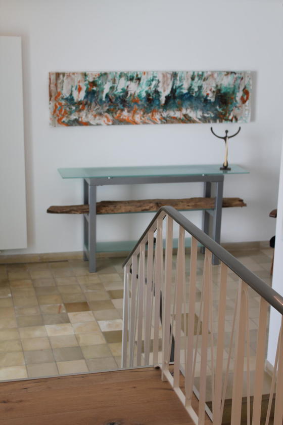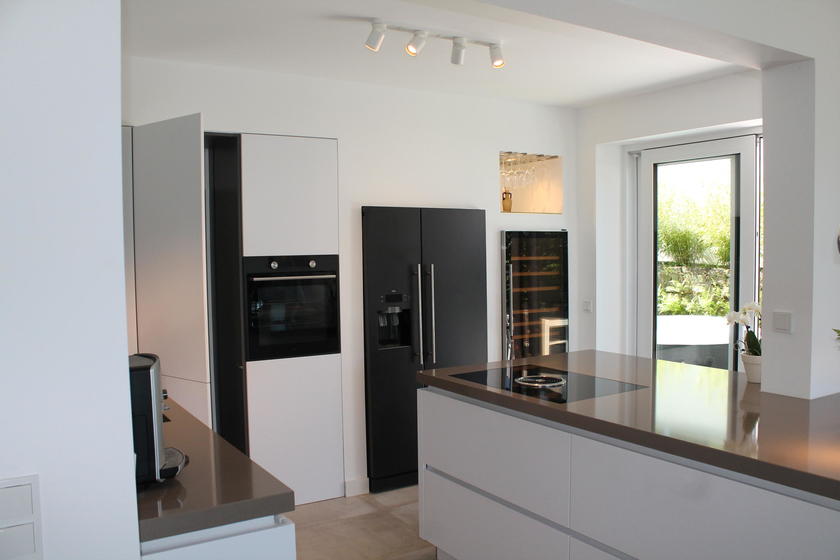 Das edel gestaltete Haus hat einen offenen Wohn-, Küchen- und Essbereich von 90 m² Größe mit Gaskamin. Durch bodentiefe Fenster (Hebe-Schiebeanlagen) kommt man von dort aus auf alle Terrassen und in den Garten. Das freistehende, nach Süden und Westen ausgerichtete Haus ist rundum von Terrassen und Garten umgeben. Das Grundstück liegt in direkter Nähe zu Wald, Pferden, Hochlandrindern und Schafen. Es ist nicht einsehbar und bietet weiten Fernblick.