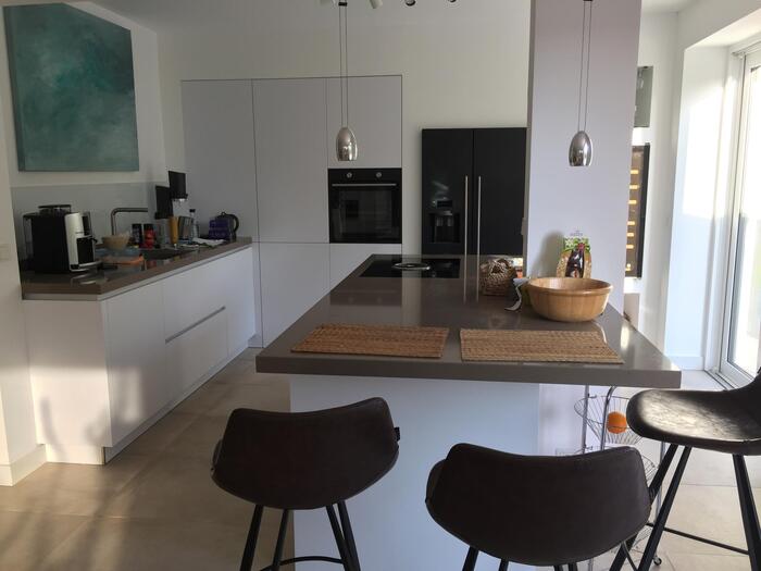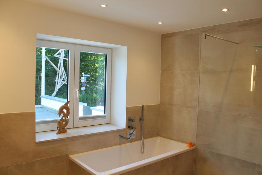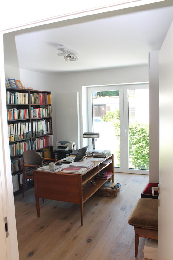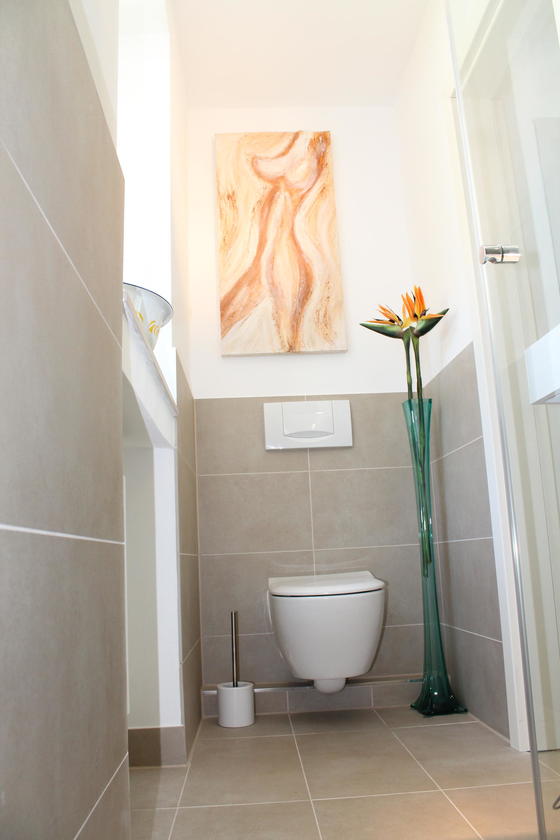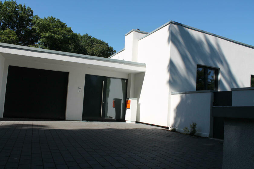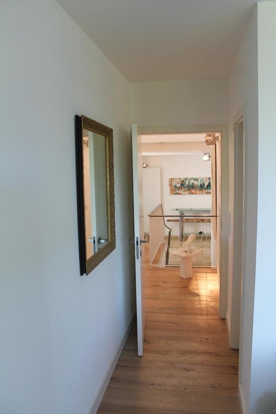 Bei starkem Sonnenschein kann das Haupthaus komplett mit elektrischen Plissees abgedunkelt werden. Parkplätze und eine Garage stehen direkt am Hauseingang zur Verfügung. Das freistehende Haus liegt in einer ruhigen Sackgasse.