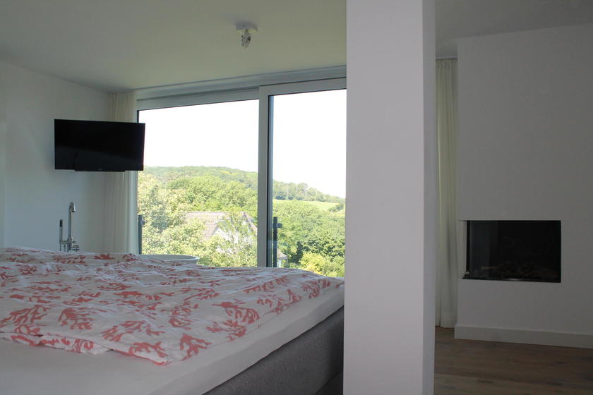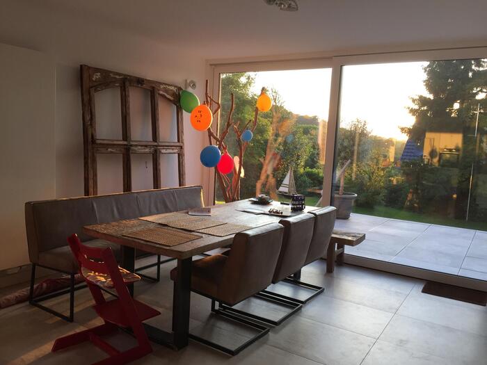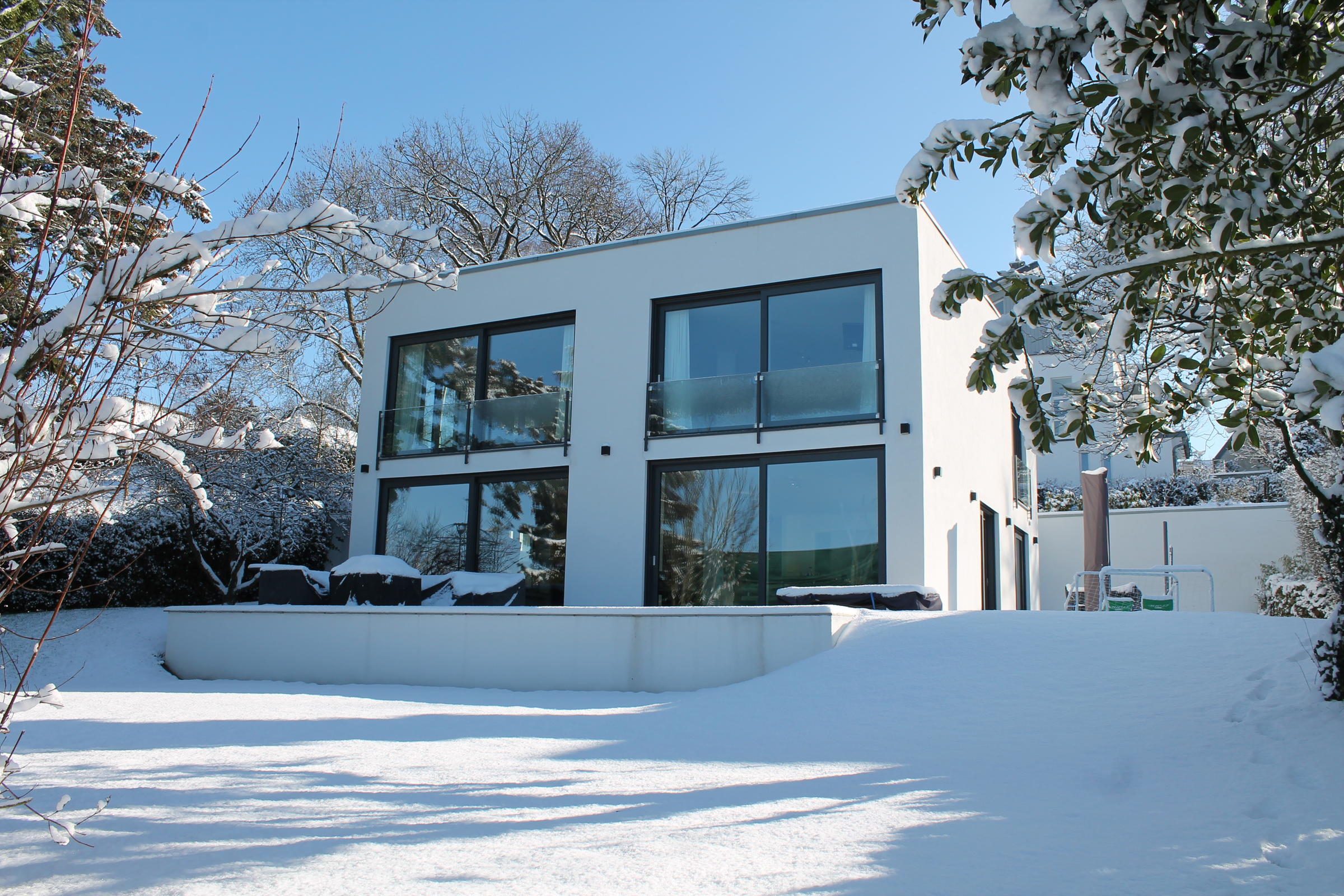 Diese exklusive 250 Quadratmeter große Villa im Bauhaus-Stil (zweistöckiger Flachbau) in Aachen bietet über eine komplette Fensterfront einen traumhaften Blick auf das benachbarte Naturschutzgebiet.