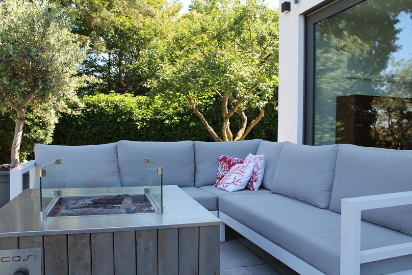 Zum Garten gehören auch ein "Atelierhaus unter dem Mirabellenbaum" und eine Lounge mit Gas-Feuerstelle.