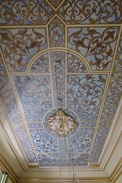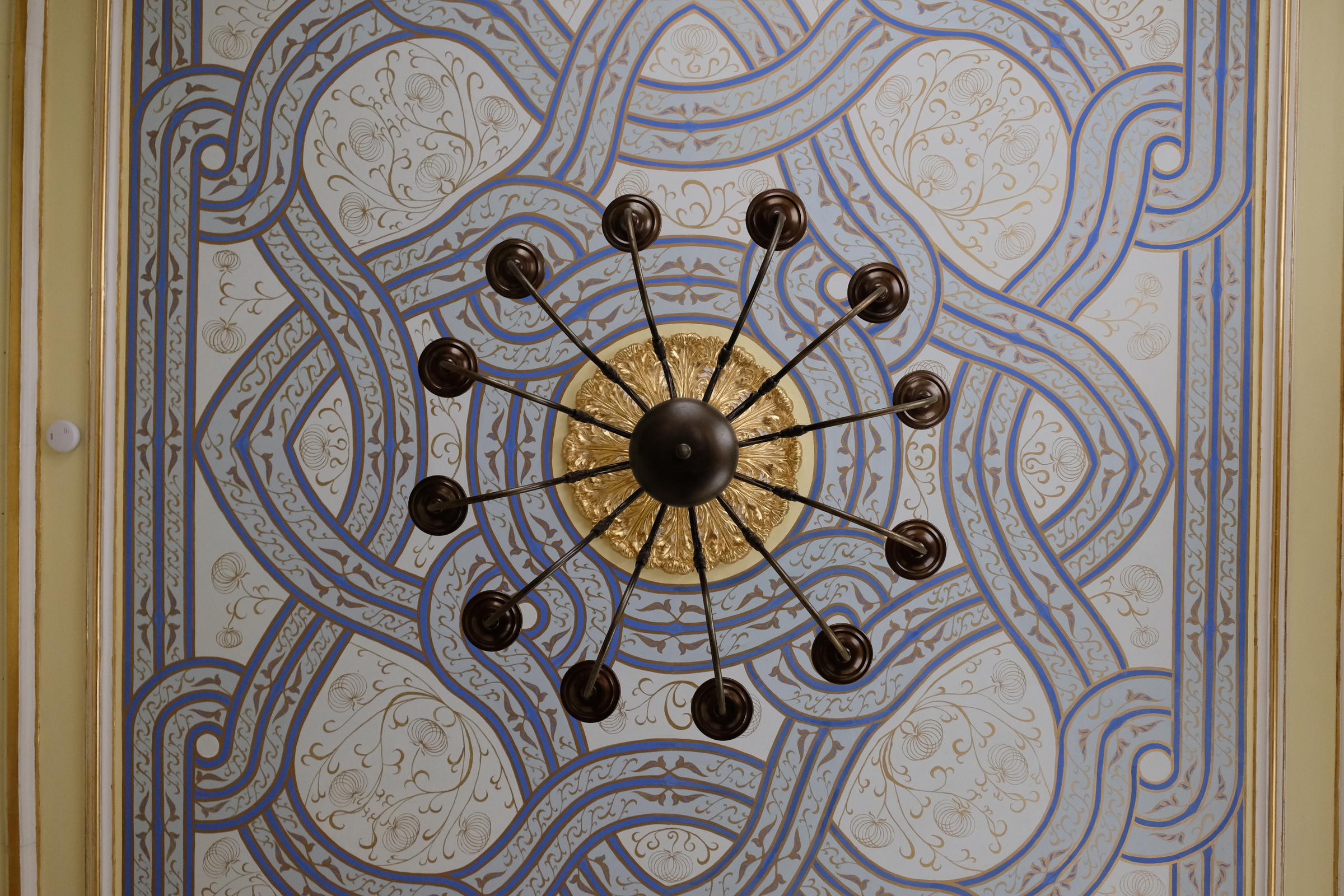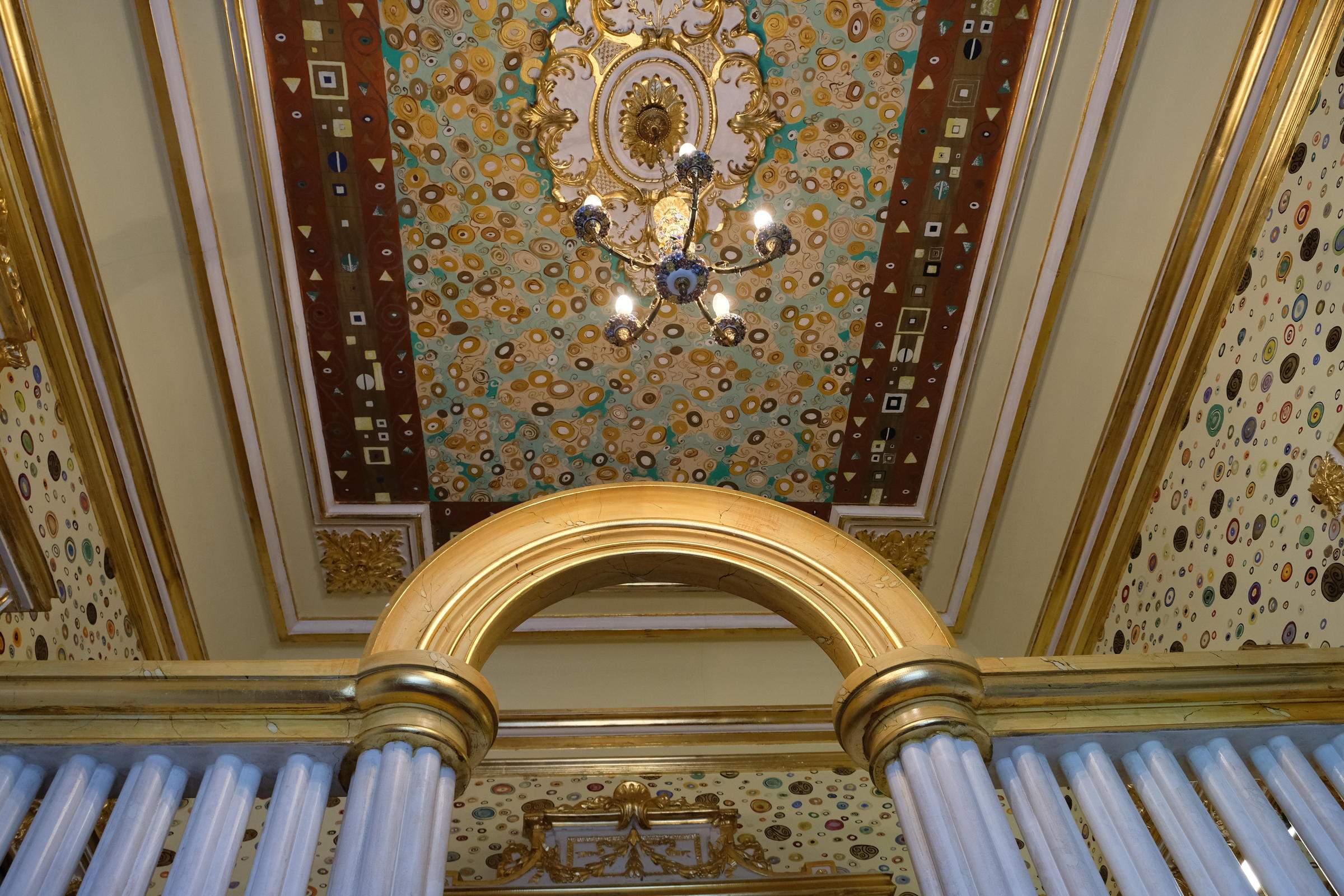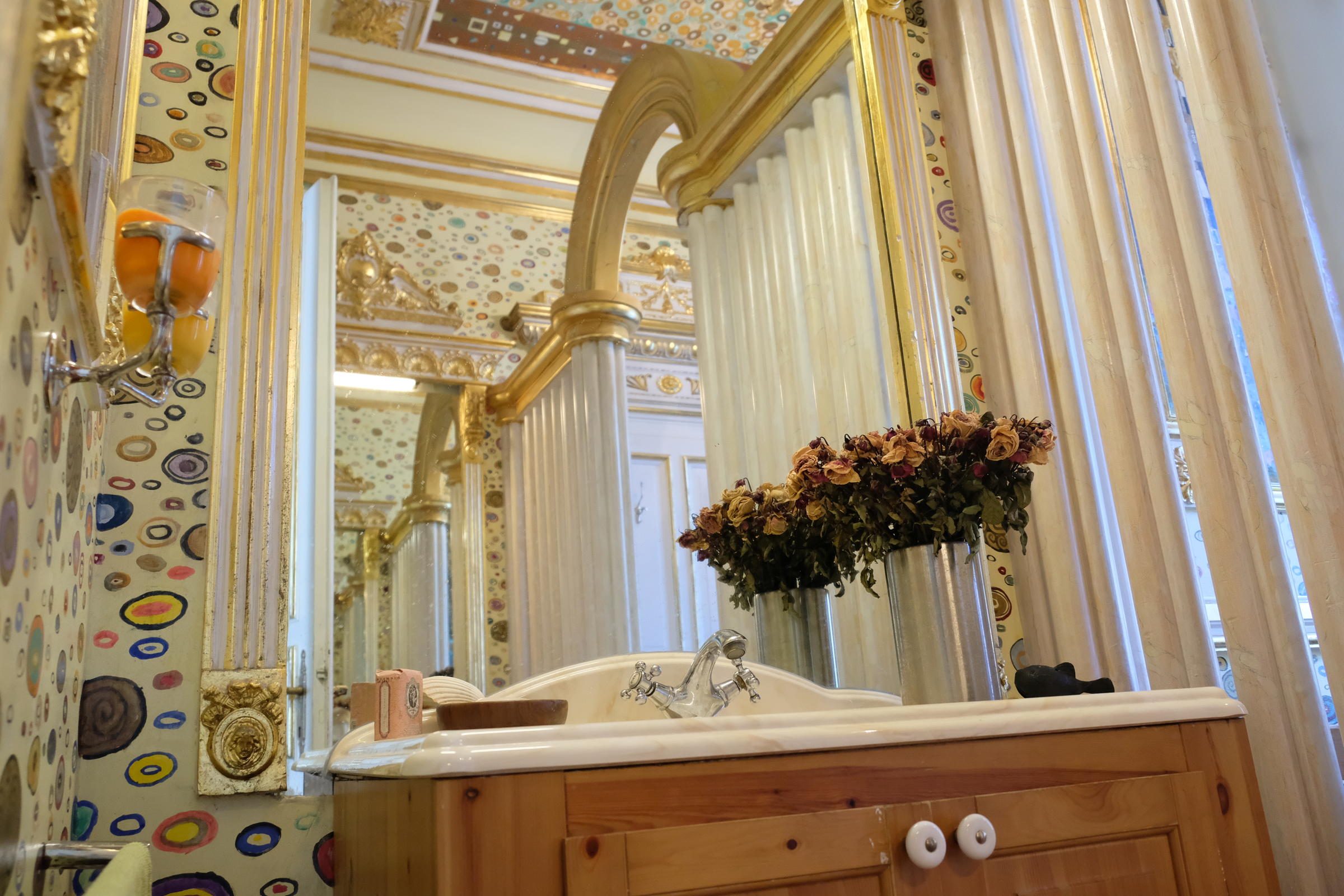 Bei dieser Wohnung in Nordrhein-Westfalen handelt es sich um das gesamte Parterre sowie die überdachte Veranda einer Fabrikantenvilla aus der Gründerzeit. Die Villa umgibt ein großzügiger straßenabgewandter Garten, in dem ein hölzernes originales Kutschenhaus aus der Zeit 1878 steht. Das Haupthaus steht unter Denkmalschutz, seine Fassade sieht aber durch einen ehemaligen flächendeckenden Efeubewuchs heute verwunschen aus. Betritt man durch den üppig verzierten Hauseingang die Wohnung, so tritt man in einen langen Flur mit für die Zeit typischen Musterkacheln am Boden, von dem aus linker Hand Gäste-, Ess- und Wohnzimmertür abgehen. Diese drei Räume sind ausserdem jeweils miteinander verbunden, was durch alle Räume interessante Durchblicke ermöglicht. Küche, Schlafzimmer und Bad liegen gegenüber und haben jeweils ihren Fensterblick in den Garten. Die gesamten Wände der Wohnung sind reichhaltig mit Blattgold, Stuckelementen und Wandmalereien verziert. Jeden Raum schmückt dabei eine andere, individuelle und sehr detailreiche Wandbemalung und Deckenornamentik. Lassen die Motive im Schlafzimmer und Bad die Malerei der Wiener Sezession um die Jahrhundertwende anklingen, so zitieren andere Räume teils Motive des Pariser Impressionismus, Klassizismus oder des Orients. Die Einrichtung der Wohnung mischt antike mit modernen Möbeln, teils Designerstücken, die Deckenlampen sind dem jeweiligen Charakter des Raumes individuell angepasst. Im Wohnzimmer befindet sich ein Flügel der Marke Steinway im viktorianischen Stil , Baujahr 1876. Zu der Wohnung gehört ein abschließbarer Kellerraum von ca. 25 m² der gegebenenfalls auch als Zwischenlager für Equipment zu nutzen wäre.