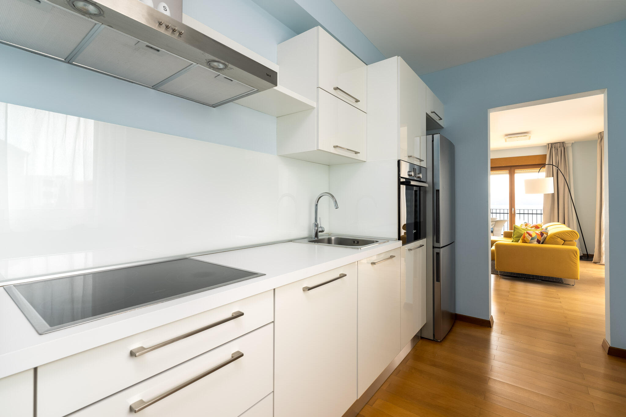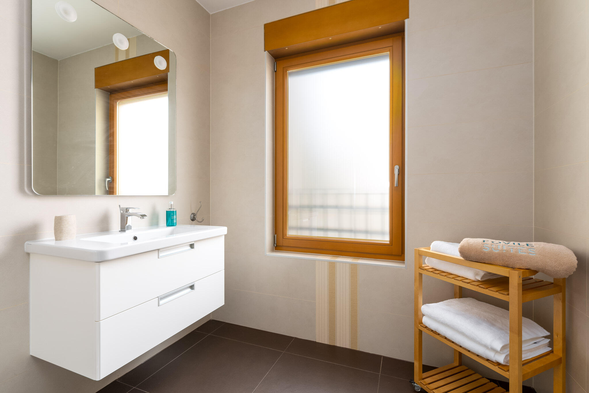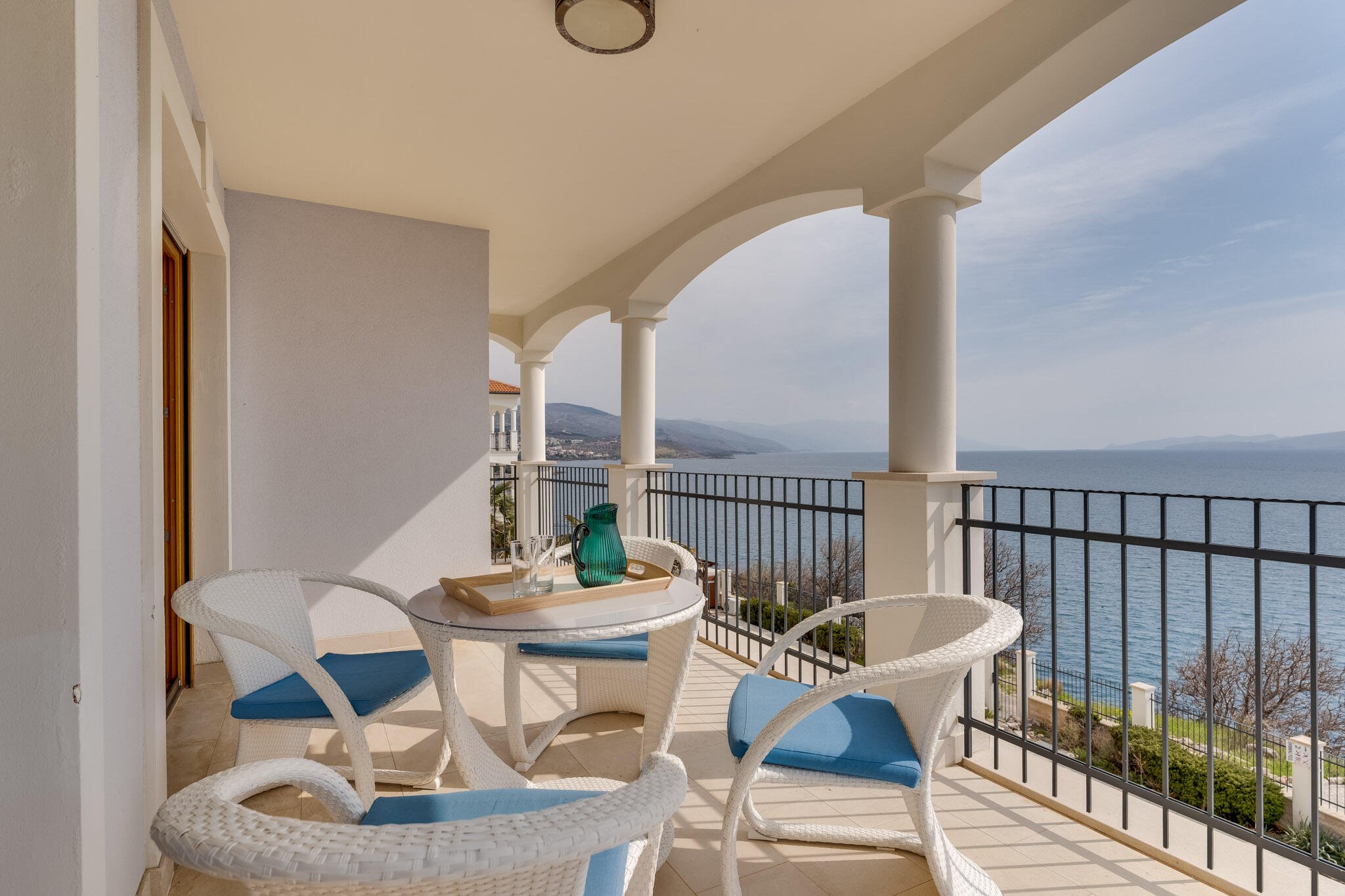 Die helle Ferienwohnung befindet sich im 1. Obergeschoss eines zweistöckigen Hauses. Alle Räume sind vollständig möbliert. Neben einem großen Wohn- und Esszimmer und einer Küche stehen 2 separate Schlafzimmer, 2 Bäder en Suite, ein Gäste-WC und ein großzügiger Eingangsbereich zur Verfügung. Die bodentiefen Fenster im lichtdurchfluteten Wohnzimmer und den Schlafzimmern können mit Vorhängen oder elektronischen Rollläden abgedunkelt werden. Vom großzügigen Balkon hat man einen unverbauten Blick auf das Meer. Dazwischen befindet sich ein Swimmingpool in einer gepflegten Gartenanlage. Zum Lagern von Equipment kann ein ca. 50 m² großer Kellerraum genutzt werden. Vor dem Wohnhaus stehen 5 Pkw-Stellplätze zur Verfügung. Auf Wunsch können auch die Wohnungen im Erdgeschoss und 2. OG angemietet werden.