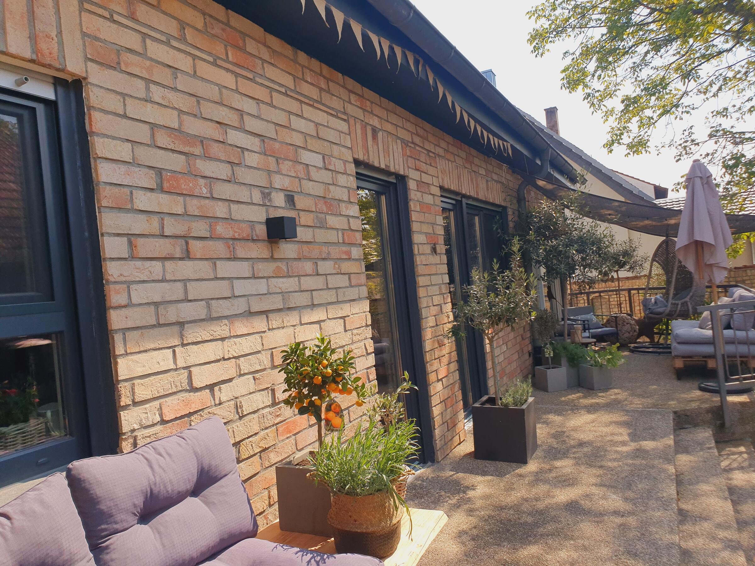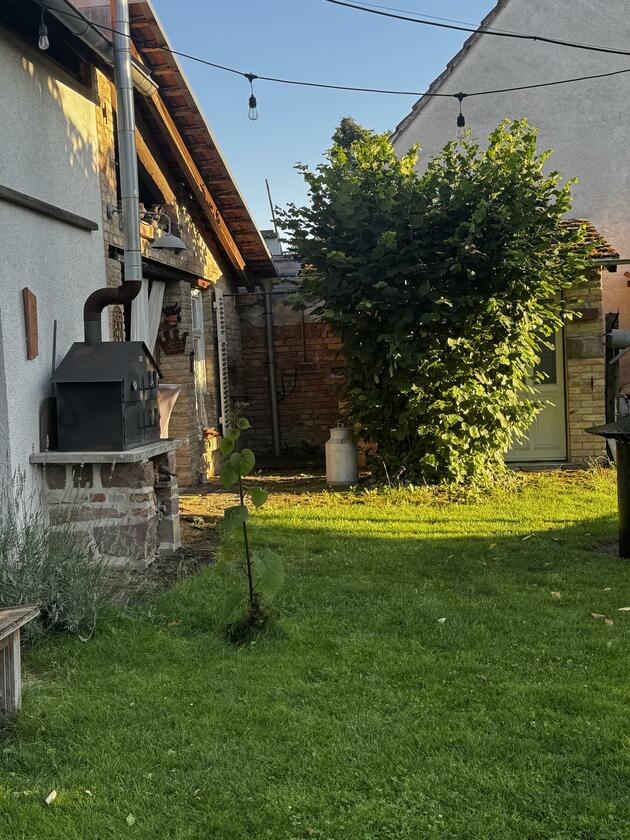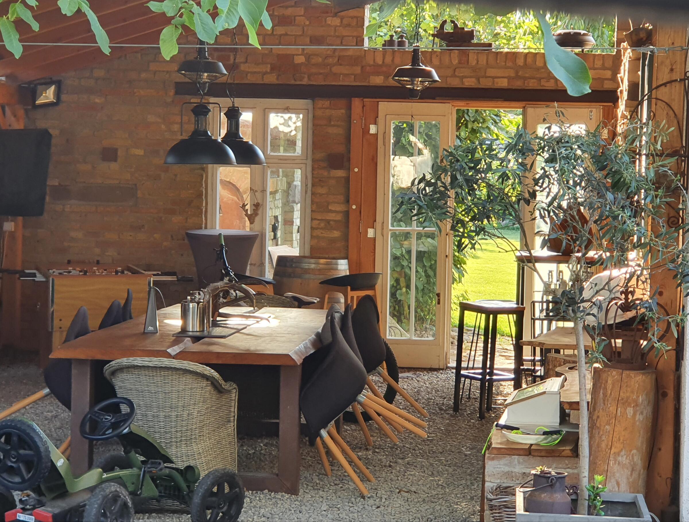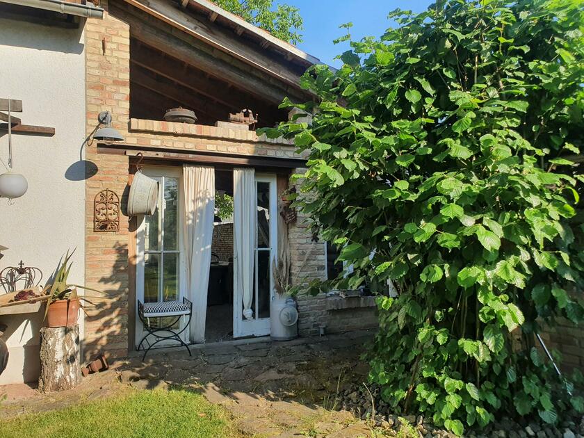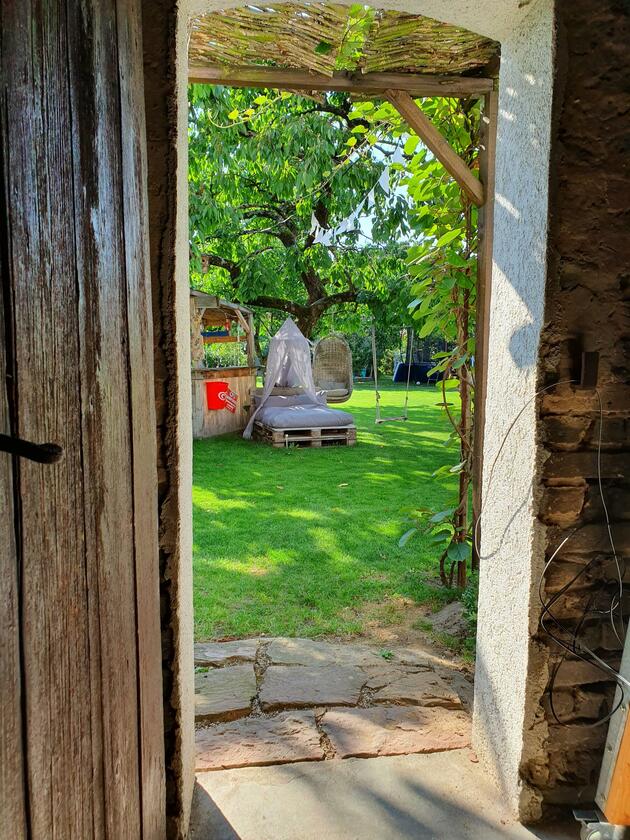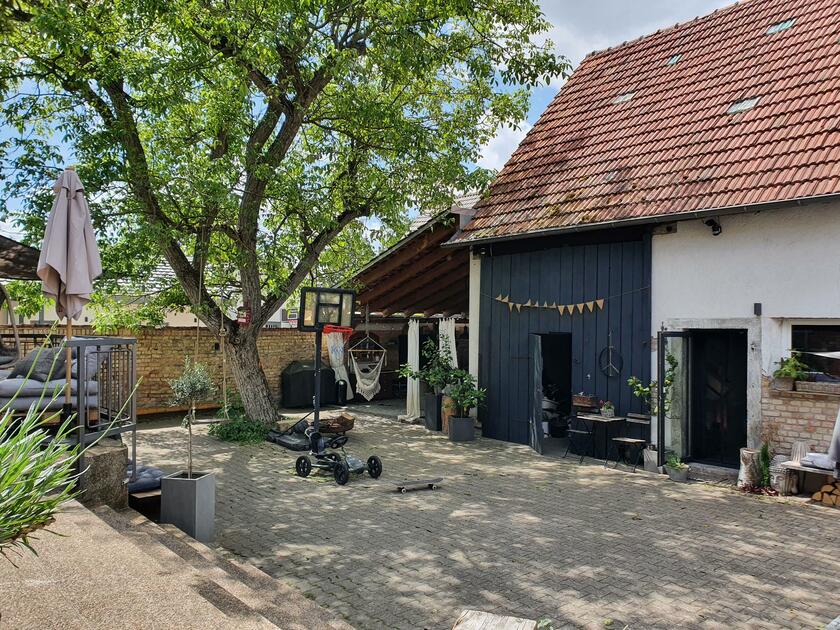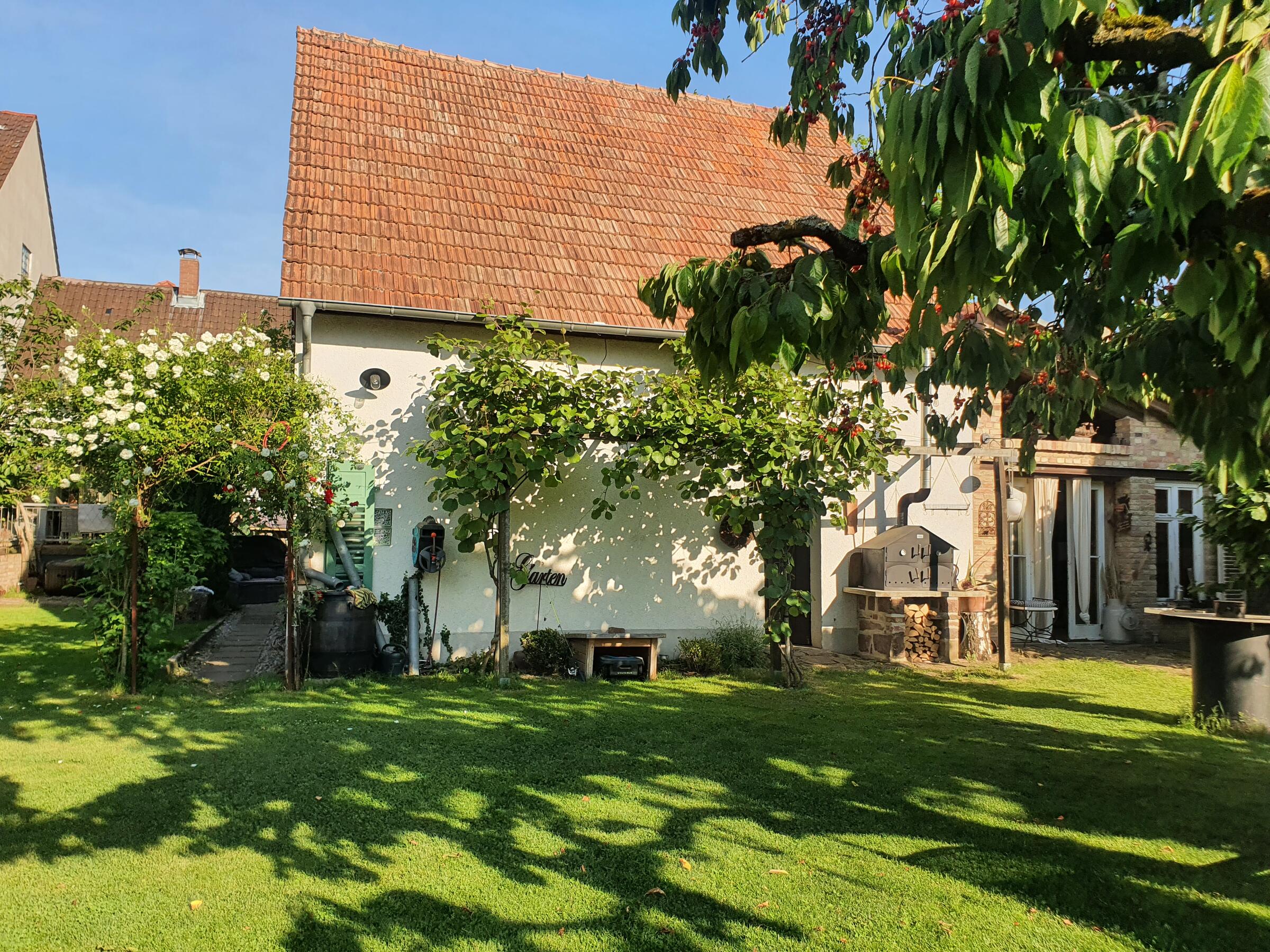 Unser Haus wurde im Jahr 1891 erbaut und befindet sich in der Ortsmitte. Das Grundstück, mit Haus, Hof, Scheune und Garten, hat eine Fläche von 1400 m² und bietet viel Natur und Baumbestand. Im EG befindet sich der Flur mit Treppenhaus, Küche, Esszimmer, Abstellraum, Kellerabgang, Gäste WC, Elternbad, Waschraum, Elternschlafzimmer und das Wohnzimmer auf insgesamt 220 m² Wohnfläche. Im OG befindet sich ein kleiner Gang, Zimmer und ein Bad auf 220 m² Wohnfläche mit Dachschräge. Eine große Terrasse erstreckt sich über die komplette Hausbreite von 17 m Länge. Stufen führen zum großen Innenhof mit der Scheune, einem alten Walnussbaum und einer tollen Überdachung (Outdoor-Wohnzimmer/Partylounge) die ein echter Hingucker ist. Hinter der Scheune folgt dann ein großer Naturgarten mit ca. 700 m² Fläche mit einer Feuerstelle, Hühnerstall, Spielplatz, Holzunterstand, Pizzabackofen, WC und Aufstellpool.