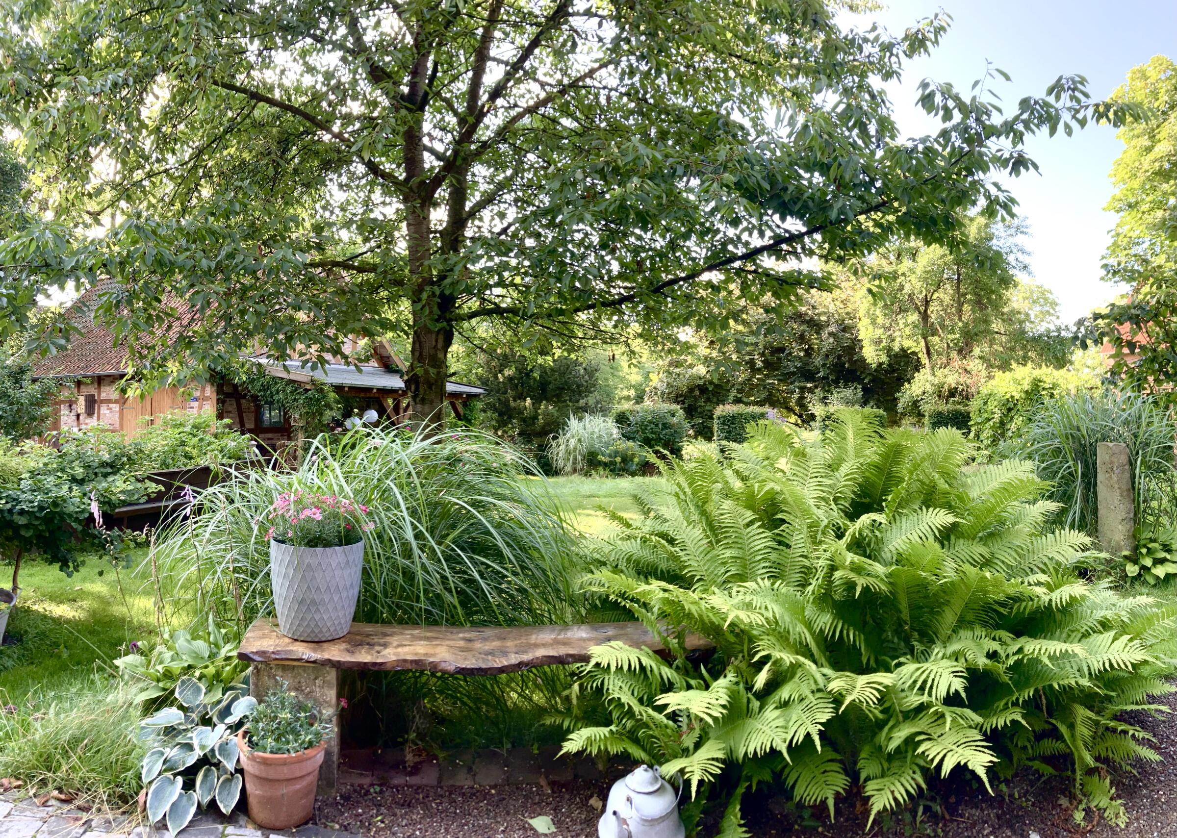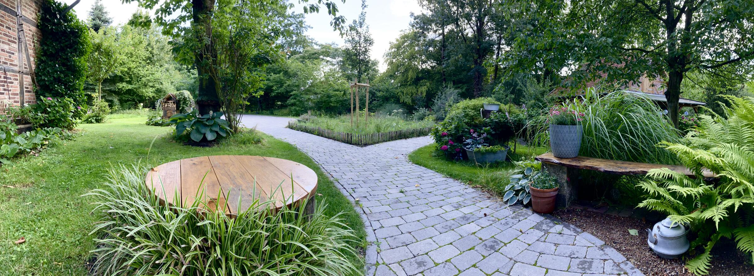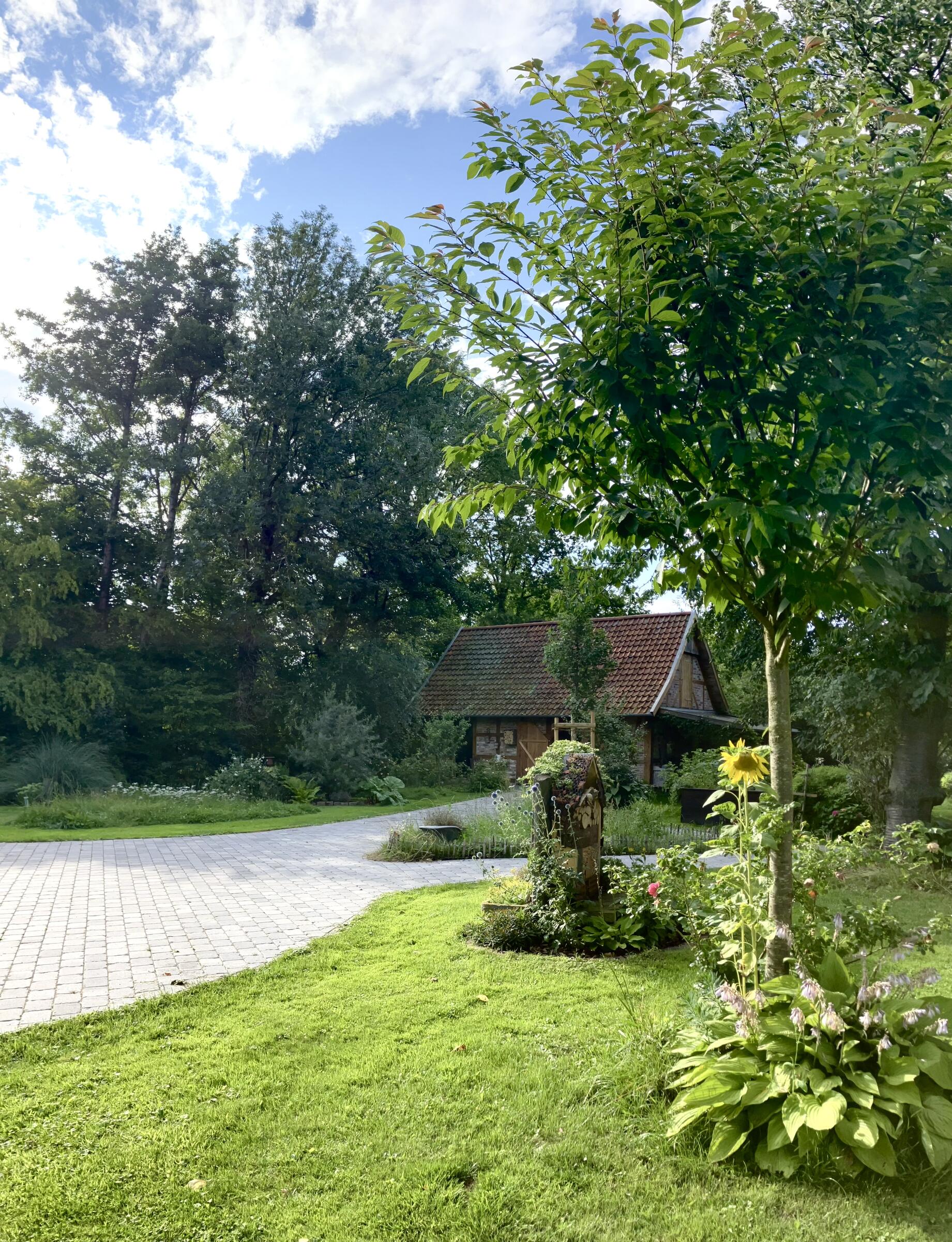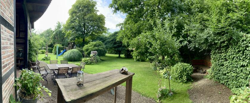 Das Fachwerkensemble befindet sich auf einem rund 2.800 m² großen, im Sommer zu drei Seiten blickdicht eingewachsenen Grundstück mit parkähnlichem Garten.
