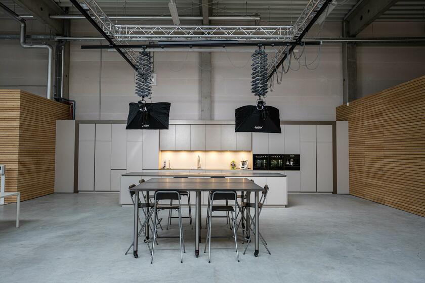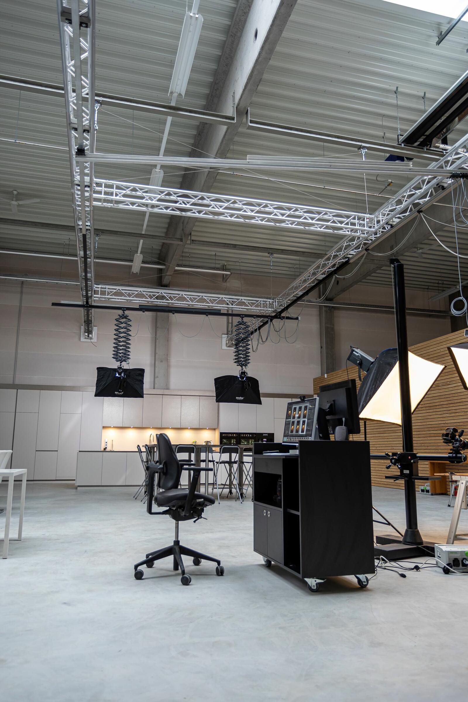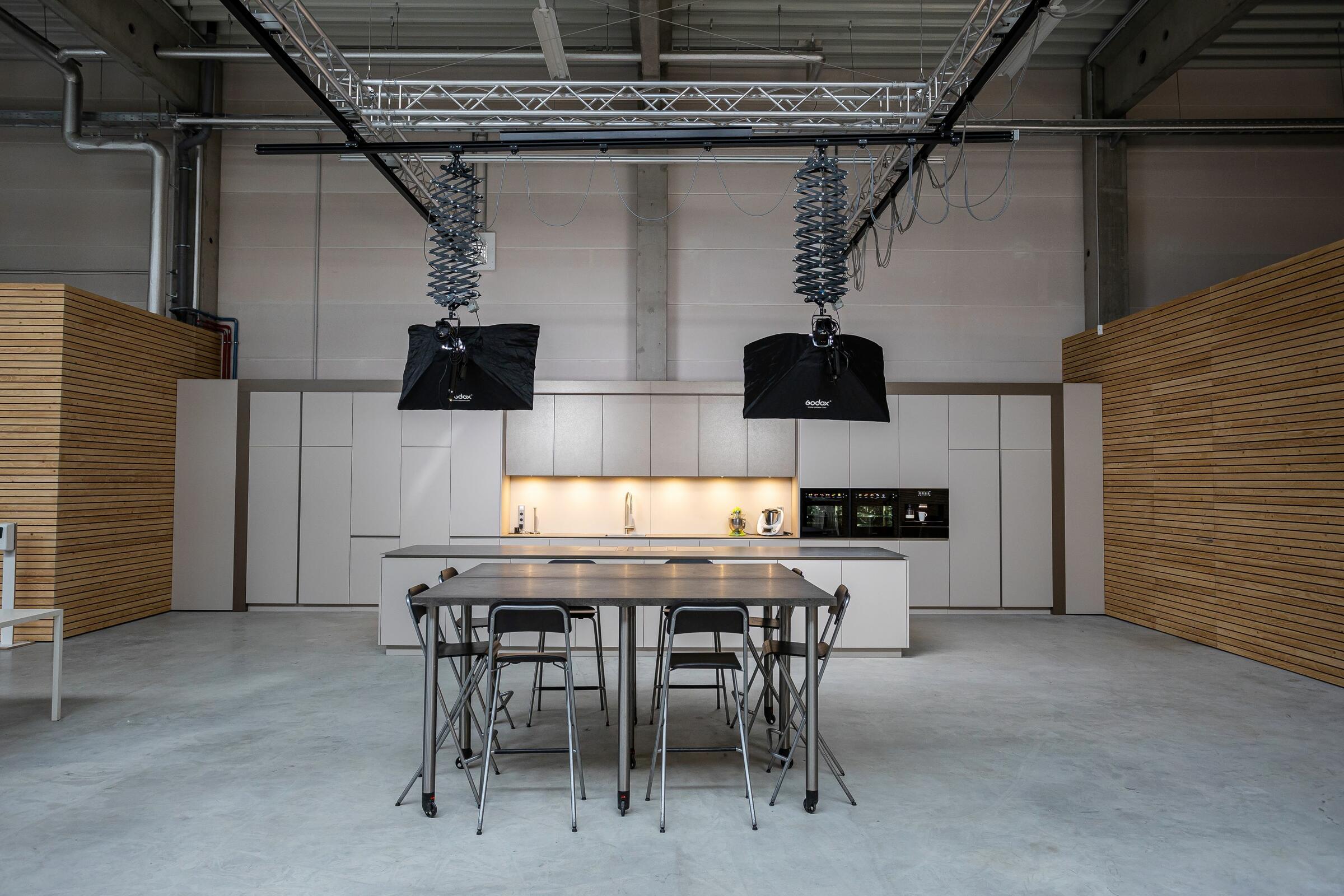 Unser großes Studio befindet sich in einem Gewerbegebiet. Zur umfangreichen Ausstattung unseres Studio gehören beispielsweise ein Deckenschienensystem, Licht, Aufheller, verschiedene Stative, professionelle Belichtung und Blitzanlagen. Ebenfalls bieten wir eine vollausgestattete und offene Küchenzeile für Food-Fotografie und andere Produktionen im Küchenbereich. Die Küche ist mit einer freistehenden Kücheninsel (4,80 m x 1,20 m) inklusive einem 3-Fach Induktionsfeld, einer Spülmaschine, 3 Kühlschränken, einem Gefrierschrank, 2 Bora X BO Dampfbacköfen und einem Kaffeevollautomat ausgestattet. Im Außenbereich unseres Studios sind ausreichend Parkplätze zu finden. Für das direkte Be- und Entladen von Material und Equipment kann eine LKW-Laderampe genutzt werden.