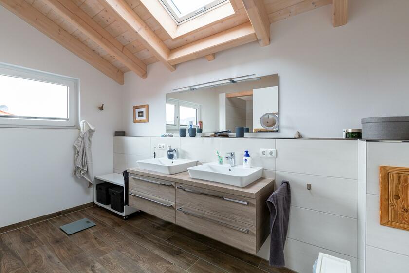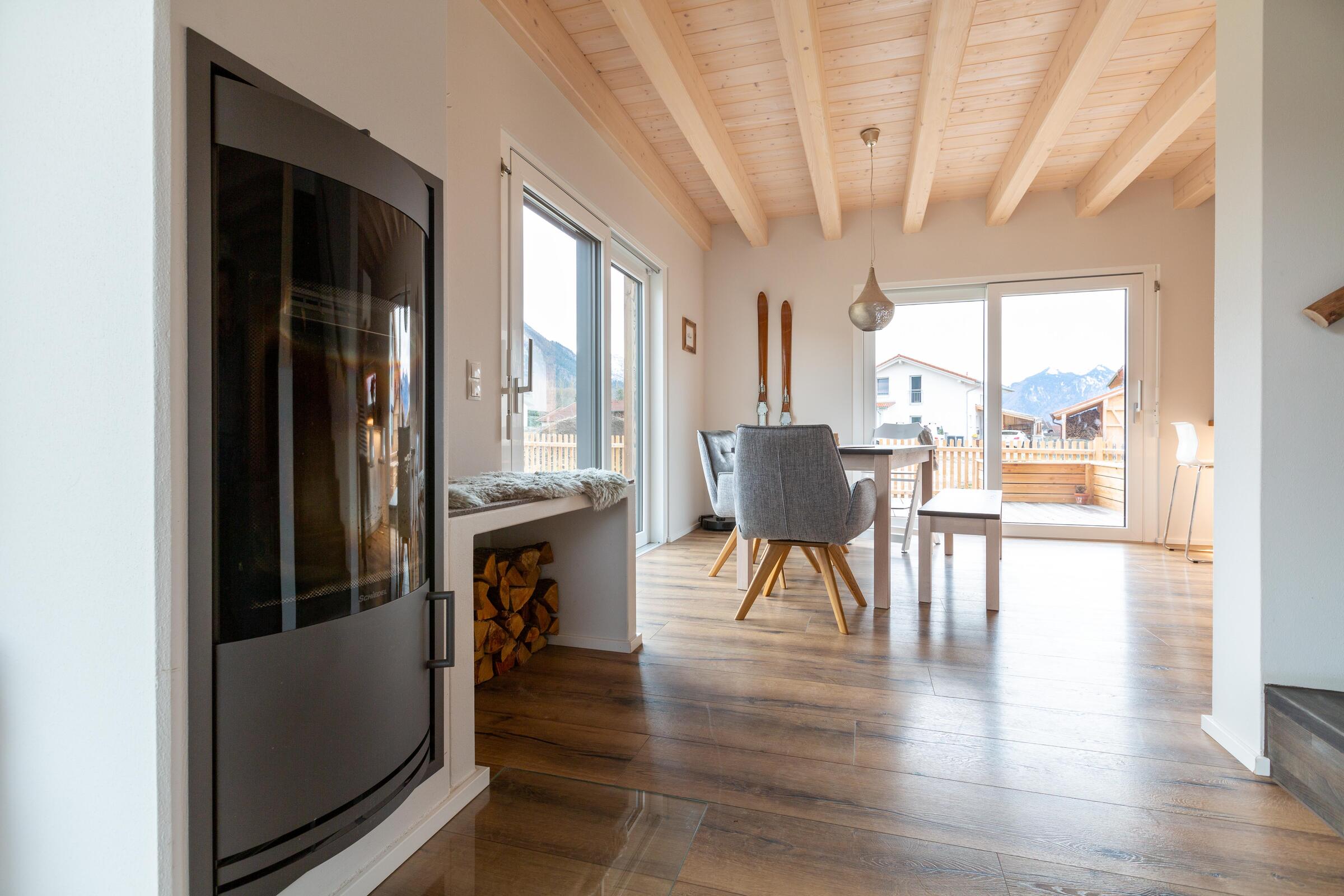 Die Räume unseres modernen Einfamilienhauses sind aufgrund der großen Fensterflächen sehr hell und lichtdurchflutet. Die Fußböden der Räume sind mit robustem Laminat oder Vinylboden verlegt. Im Wohnbereich gibt es einen Schwedenofen mit einem integrierten Sitzbereich. Als Teamaufenthalt, Maske und Garderobe bieten sich beispielsweise ein ausbebauter und beheizter Raum im Keller und ein Badezimmer im Erdgeschoss unseres Hauses an. Im Außenbereich bietet unser Haus eine teilweise glasüberdachte Terrasse mit einem Badefass, einen Garten und ein Doppel-Carport. Parkplätze sind auf unserem Grundstück vorhanden.