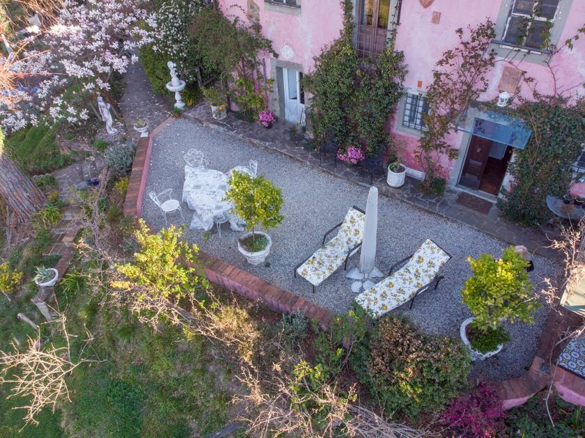 La Gioiella, so der Hausname, ist wie eine Filmkulisse aus einem romantischen Film sagen viele der Besucher wenn Sie La Gioiella sehen. Das 1881 errichtete Landhaus liegt in einem Naturschutzgebiet in der Svizzera Pesciatina umgeben von malerischen Steindörfern, Maroniwäldern und Olivenhainen. Das märchenhafte Ambiente verdankt La Gioiella seiner Lage, den malerischen Gärten und seinem englisch Flair. Einzigartige Stimmungen und ein besonders schönes Licht lassen das Haus zu jeder Tages- und Jahreszeit in einem besonderen Lichte erscheinen. Auf dem Grundstück befindet sich ein altes Steinhaus, Chestnuthouse, genannt, welches ebenso für Aufnahmen zur Verfügung gestellt werden kann.