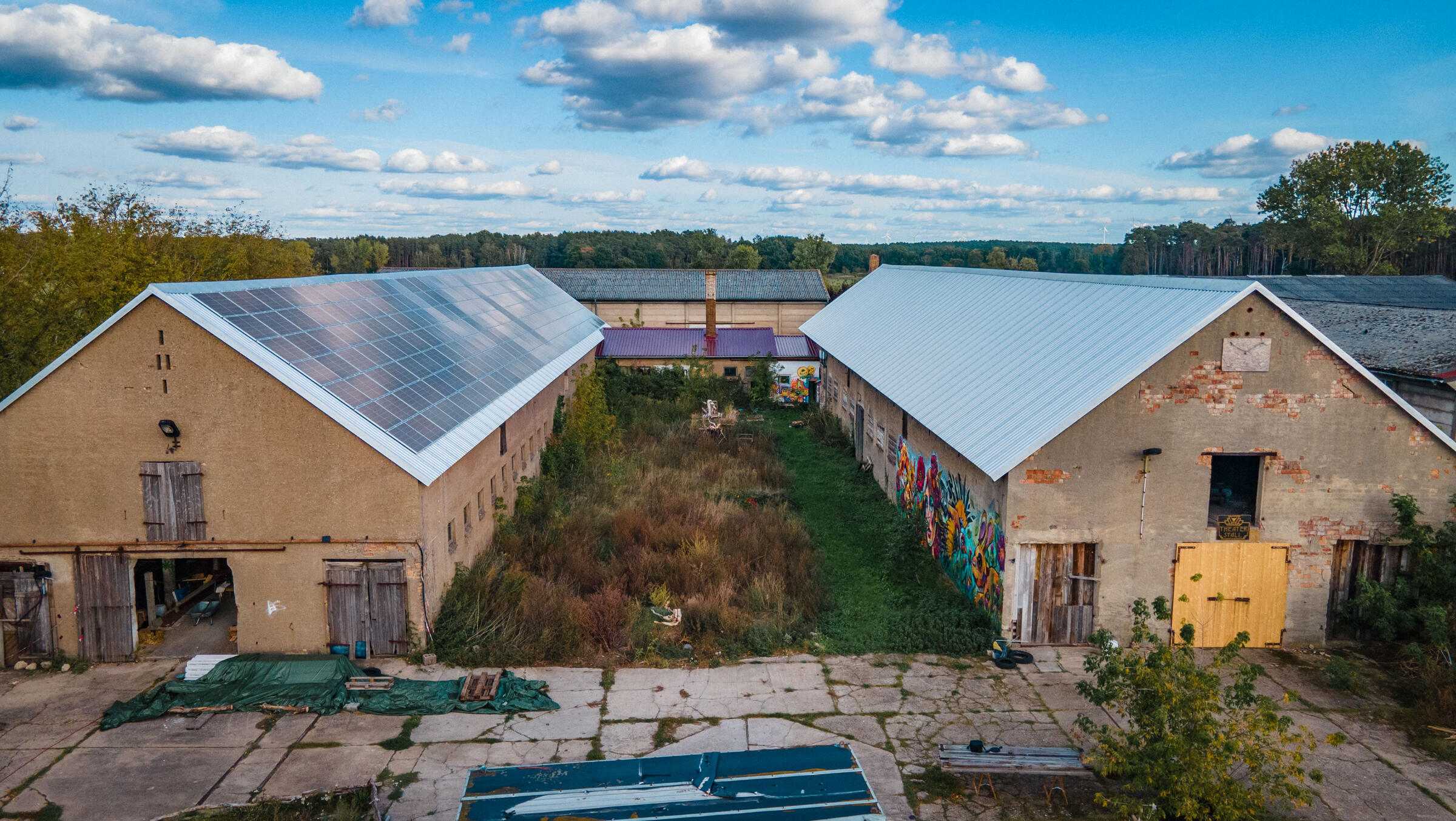 Dies ist ein alter LPG Kuhstall der zu einem Kulturgebäude umgebaut werden, mit einer Fläche von 6000 m². Dazu gehören 2 Ställe mit jeweils einer Länge von 60 m und eine Freifläche. Es gibt Komposttoiletten. In dem einen Stall steht eine Tribüne und eine Bühne, wie in einem Theater. Es gibt zwei große Dachböden und ein kleines Zwischenhaus mit zwei Zimmern, die ebenfalls komplett leer sind. Durch die große Freifläche ist Parken kein Problem. Für Garderobe, Maske und Teamaufenthalt kann der Club im Quergebäude genutzt werden. Die Location liegt nur 5 km von der Autobahn A9 nach Berlin entfernt. Es gibt gute Zug- und Busanbindungen. Es gibt auch Starkstrom.