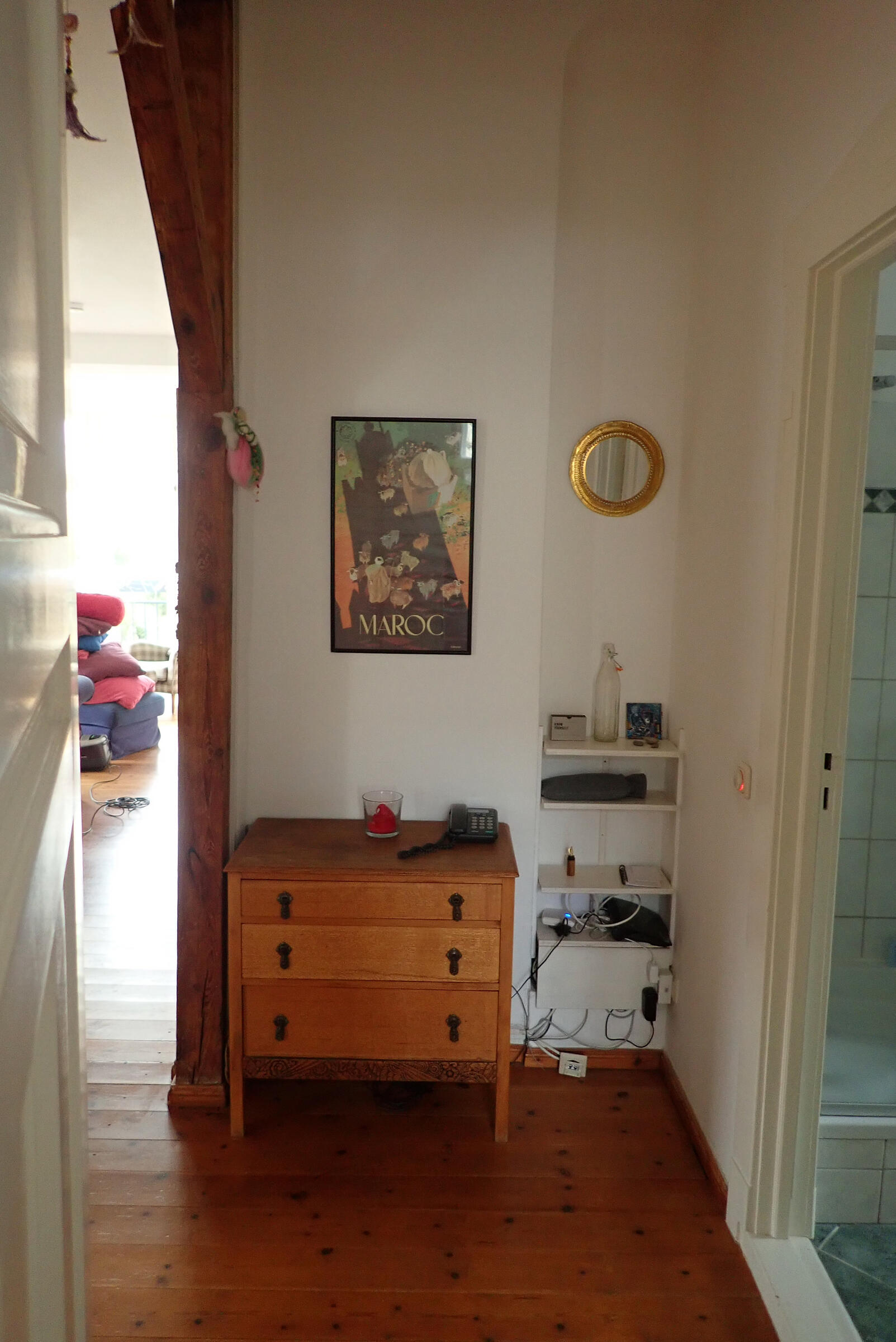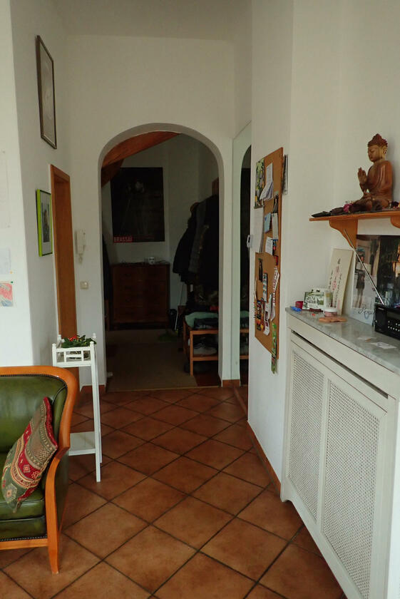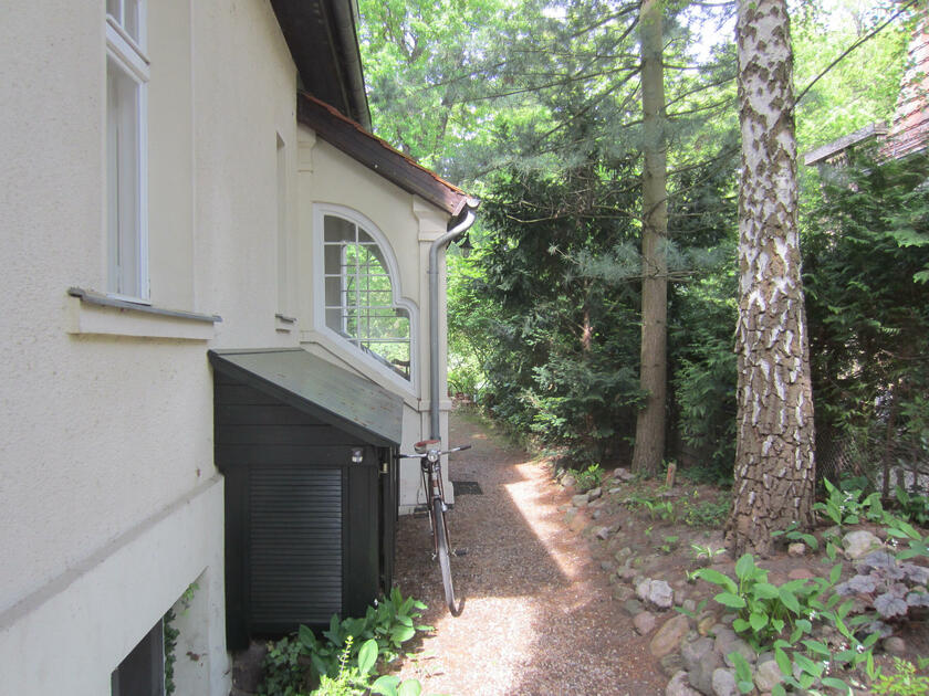 Die Maisonette-Wohnung befindet sich in einer im Jahre 1912 erbauten Villa in Babelsberg-Nord. Historische Stilelemente umfassen die Holzwangentreppe mit gedrechselten Traillen und Schnitzereien, original Doppelkastenfenster und -türen mit alten Beschlägen, geätztes Glas, Kassettentüren mit Art Deco Gestaltung und schönen Messingbeschlägen, die Pitchpine Landhausdielen und einige dekorative Stuckrosetten.
