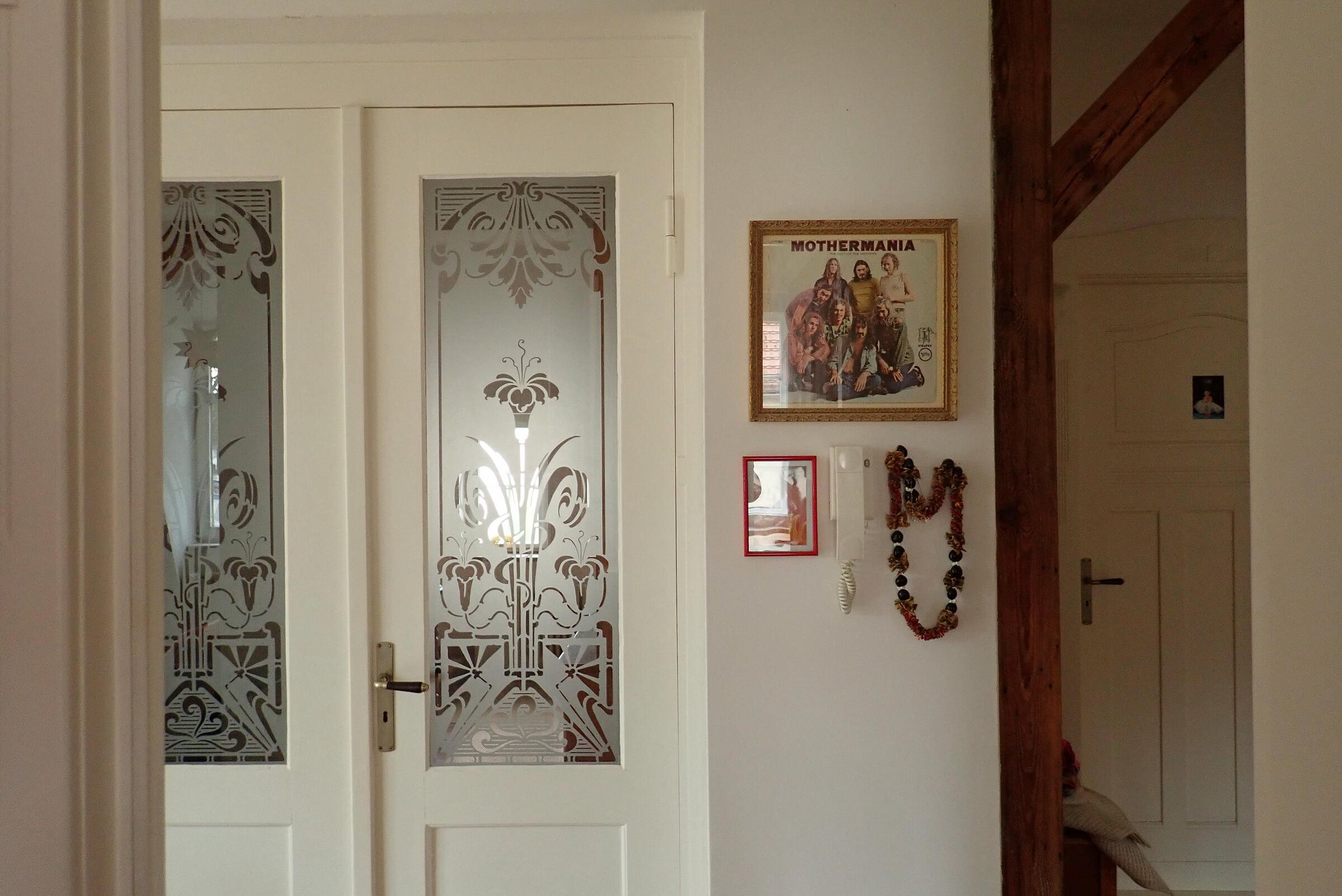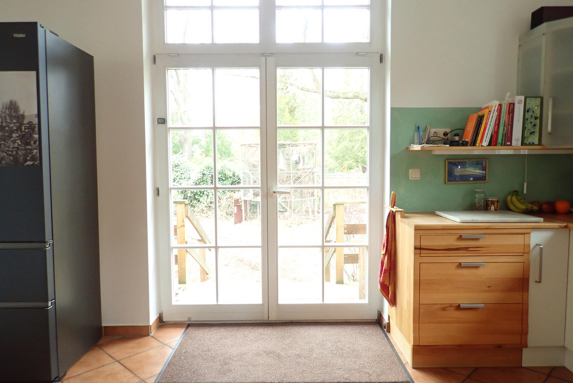 Die Fassade wird geschmückt von den original Stuckelementen sowie dem aufwändig nach historischem Vorbild rekonstruierten Holzanbau mit Bleiglaselementen in einem Rundbogenfenster. Das Haus wurde innen und außen stilgerecht saniert und eingerichtet mit einer Mischung aus antiken und zeitlos klassischen Möbeln und Einrichtungselementen wie Heizkörperabdeckungen mit Bastgeflecht.