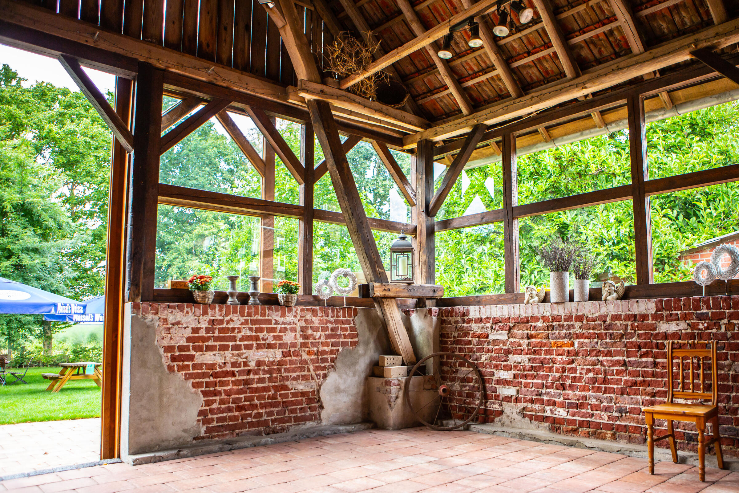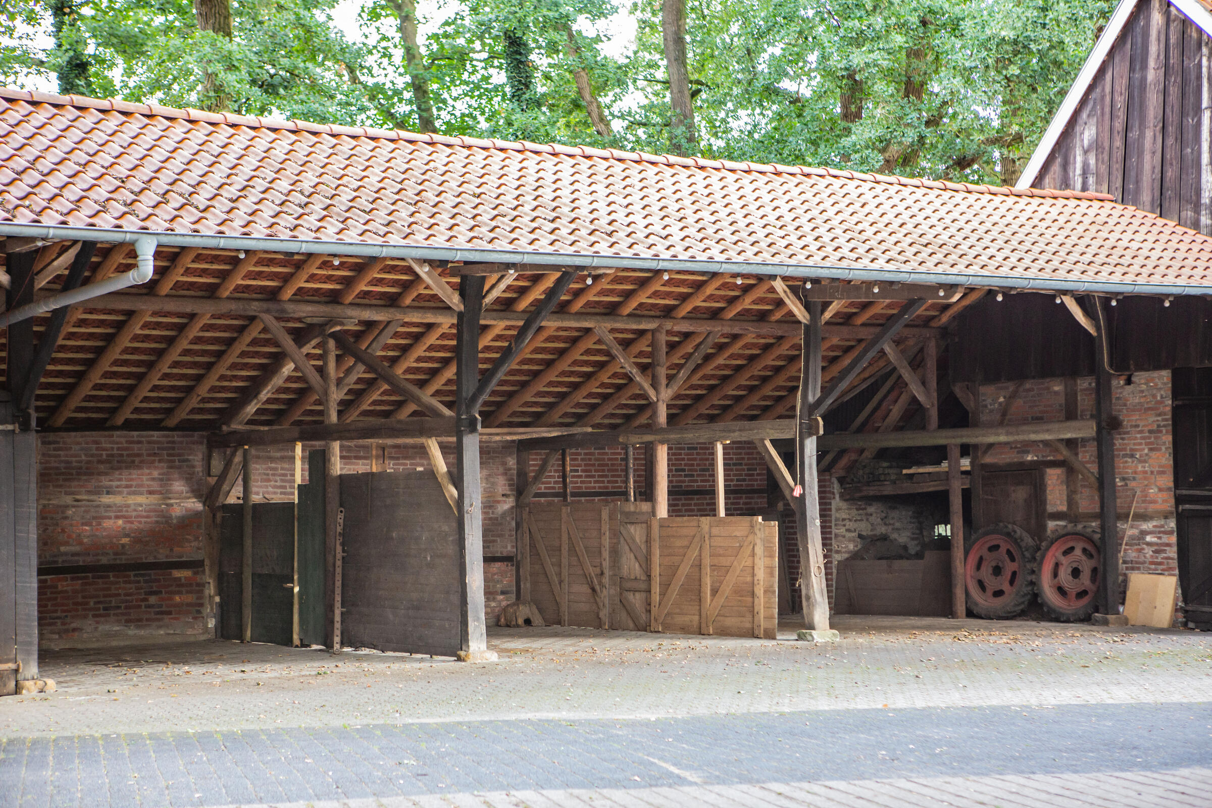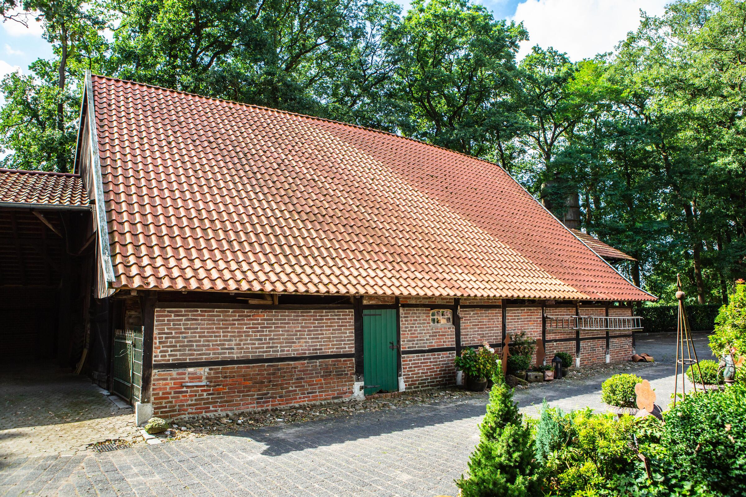 Unser Hof, mit seinem alten Eichenbestand, liegt in ruhiger Ortsrandlage im südlichen Münsterland. Der großzügig gestaltete Hof beeindruckt mit seinen alten Gebäuden und dem herrschaftlichen Wohnhaus. Angrenzend an das Wohnhaus befindet sich eine parkähnliche Gartenanlage, in dem Rhododendron, Rosen, Hortensien uvm. zu den Jahreszeiten verschieden blühend zu finden sind. Ein großer Raum im umgebauten Schweinestall bietet Platz für bis zu 100 Personen. Der angrenzende Biergarten besticht mit seiner Größe und seinem gepflegten grünem Rasen. Ein weiteres Highlight des Hofes sind die beiden Heuböden mit den "Heusuiten" und der beeindruckenden Balkenkonstruktion. Parkplätze sind in ausreichender Zahl auf dem Hof vorhanden. Toilettenanlagen sind vor Ort.