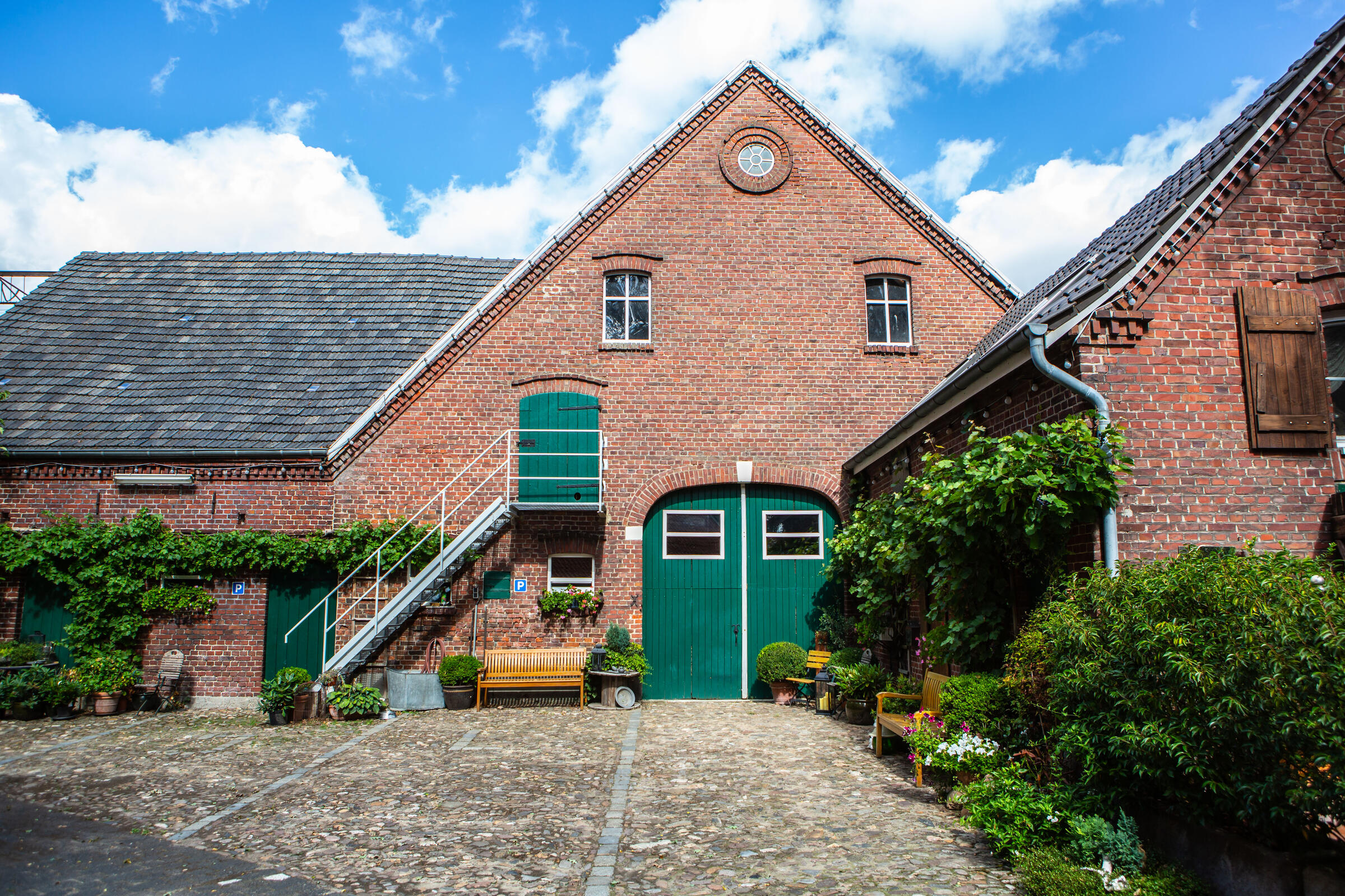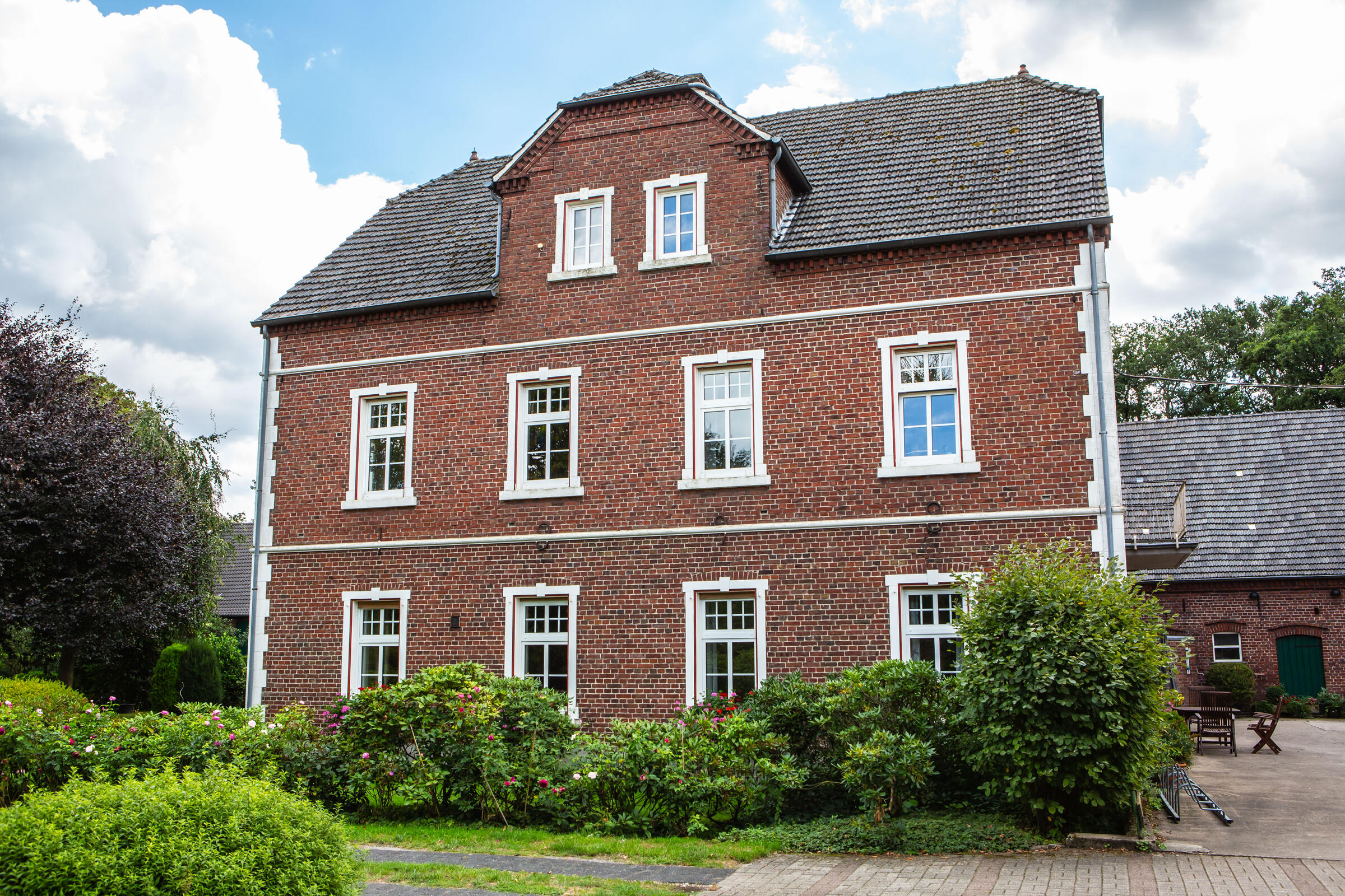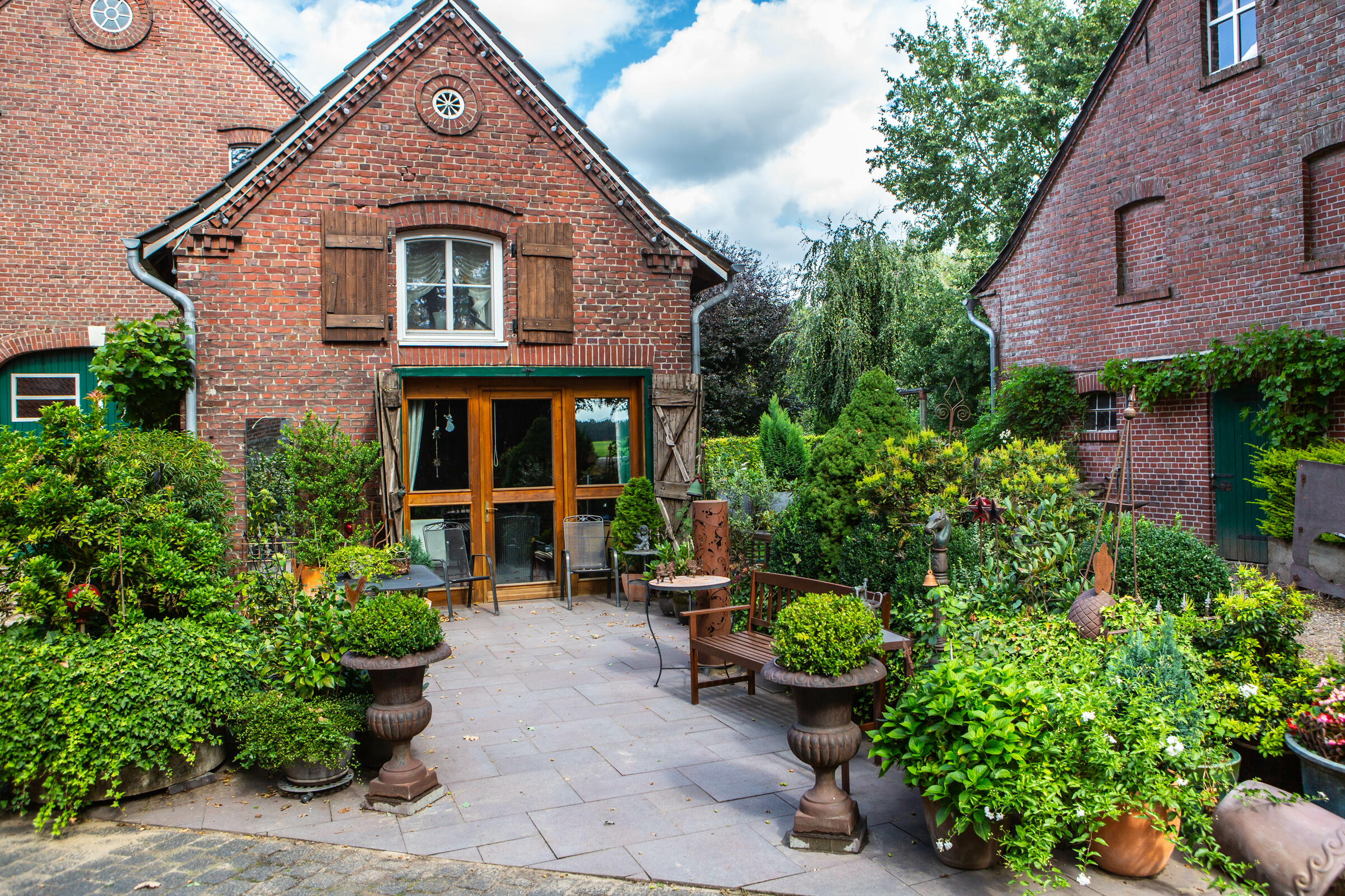 Unser Hof, mit seinem alten Eichenbestand, liegt in ruhiger Ortsrandlage im südlichen Münsterland. Der großzügig gestaltete Hof beeindruckt mit seinen alten Gebäuden und dem herrschaftlichen Wohnhaus. Angrenzend an das Wohnhaus befindet sich eine parkähnliche Gartenanlage, in dem Rhododendron, Rosen, Hortensien uvm. zu den Jahreszeiten verschieden blühend zu finden sind. Ein großer Raum im umgebauten Schweinestall bietet Platz für bis zu 100 Personen. Der angrenzende Biergarten besticht mit seiner Größe und seinem gepflegten grünem Rasen. Ein weiteres Highlight des Hofes sind die beiden Heuböden mit den "Heusuiten" und der beeindruckenden Balkenkonstruktion. Parkplätze sind in ausreichender Zahl auf dem Hof vorhanden. Toilettenanlagen sind vor Ort.
