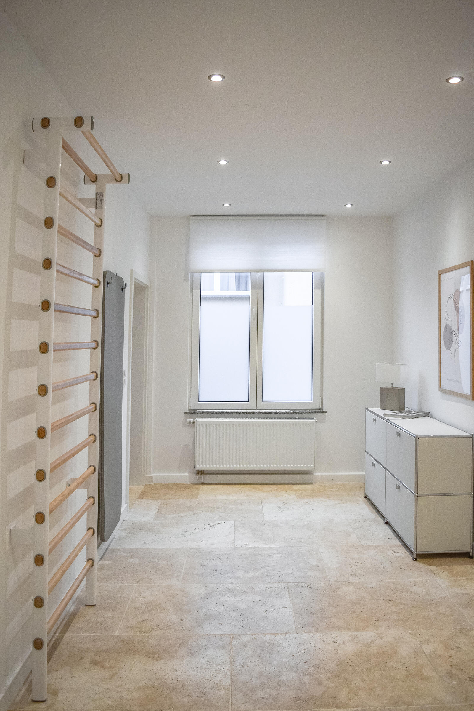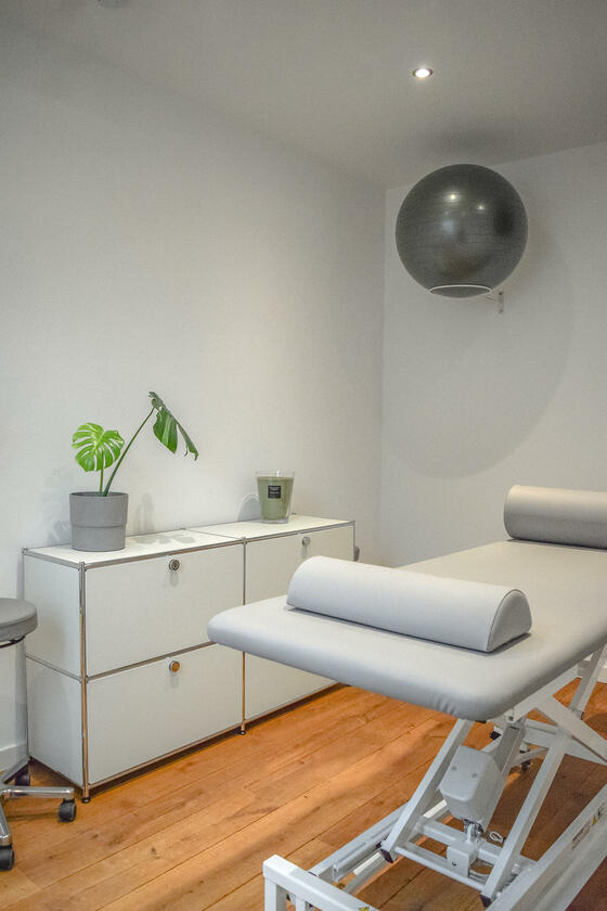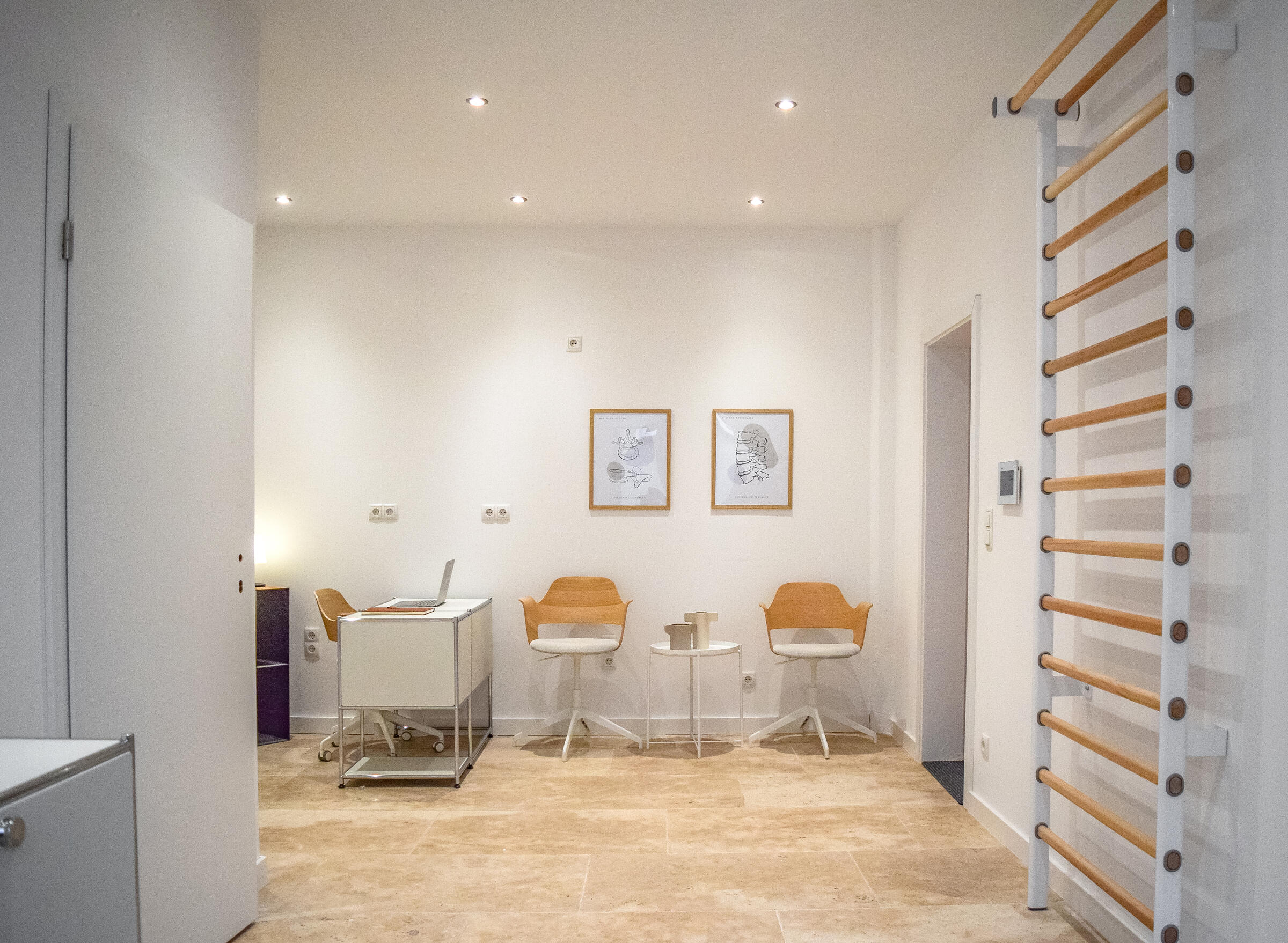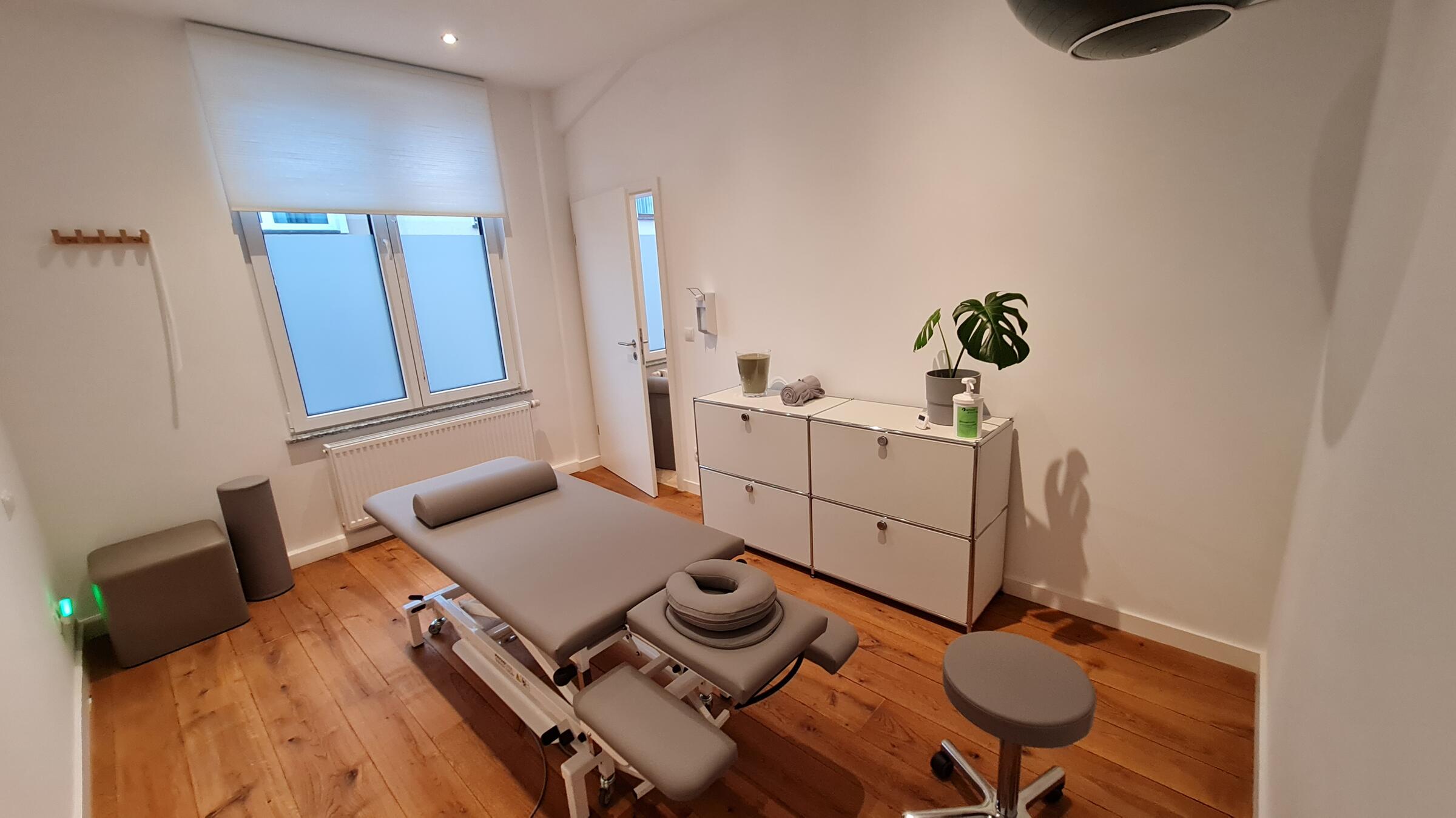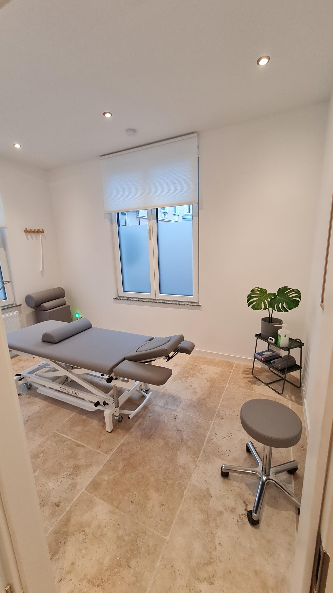 Unsere helle und modern ausgestattete Physiotherapiepraxis bietet einen offen gestalteten Empfangs- und Wartebereich, zwei separierte Behandlungsräume, einen Trainingsbereich sowie ein kleines Badezimmer mit Duschkabine. Die Räume sind hell und lichtdurchflutet. Die Fenster sind in der unteren Hälfte mit blickdicht foliert und können jeweils mit weißen Jalousien abgedunkelt werden. Vor der Praxis bestehen mehrere Parkplätze. Der Rhein ist nur ca. 100 m entfernt. Aufgrund der verkehrsgünstigen Anbindungen über die nahegelegenen Autobahnen A61 und A3 sind beispielsweise Köln (35 km entfernt) und Bonn (10 km entfernt) schnell zu erreichen.