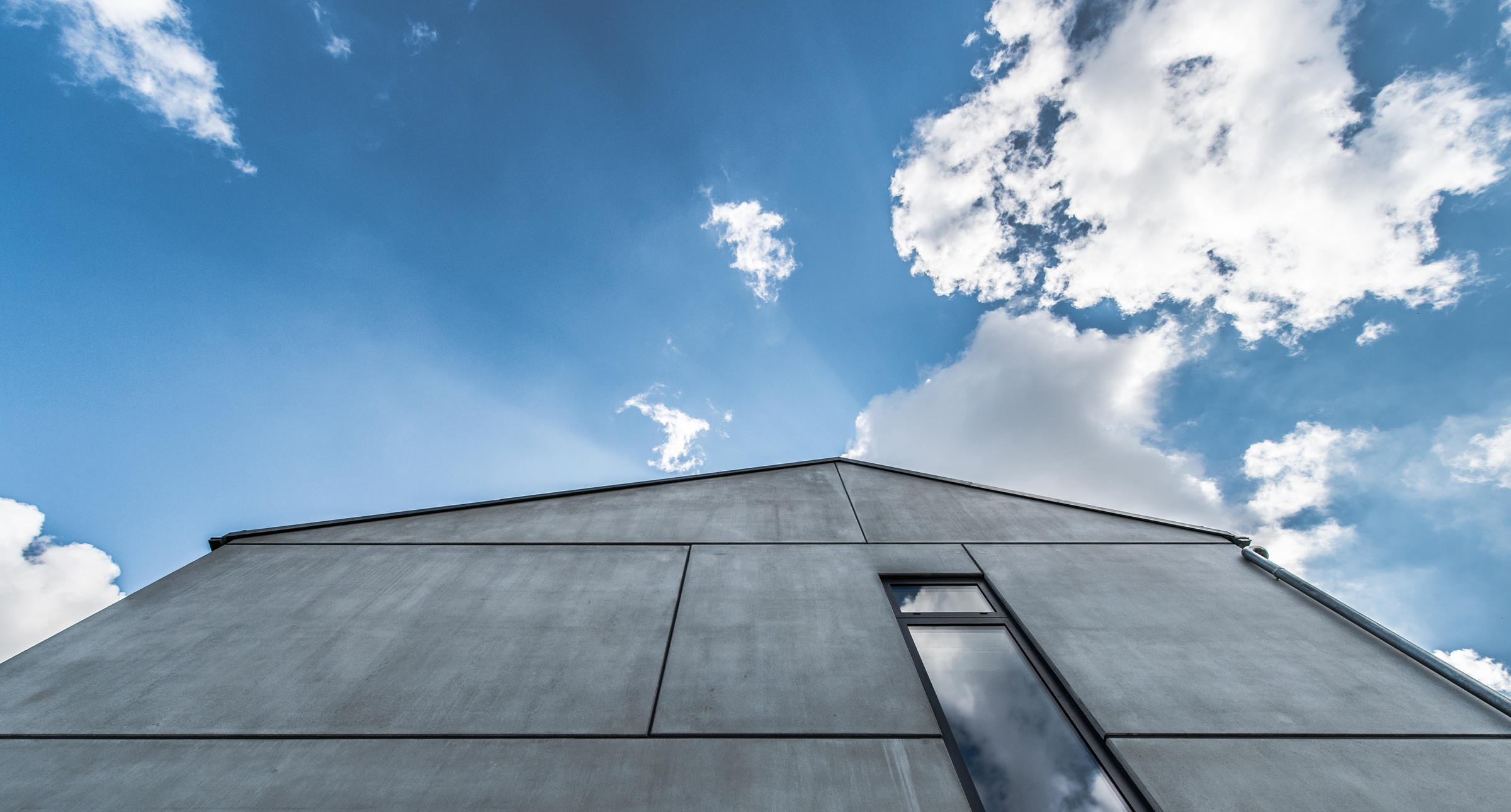 Im Inneren des Wohnhauses überwiegt ein offenes großzügiges Raumkonzept. Große Fenster erhellen die Räume. Die klare Materialwahl wird durch minimalistische Elemente und Einbauten komplettiert.