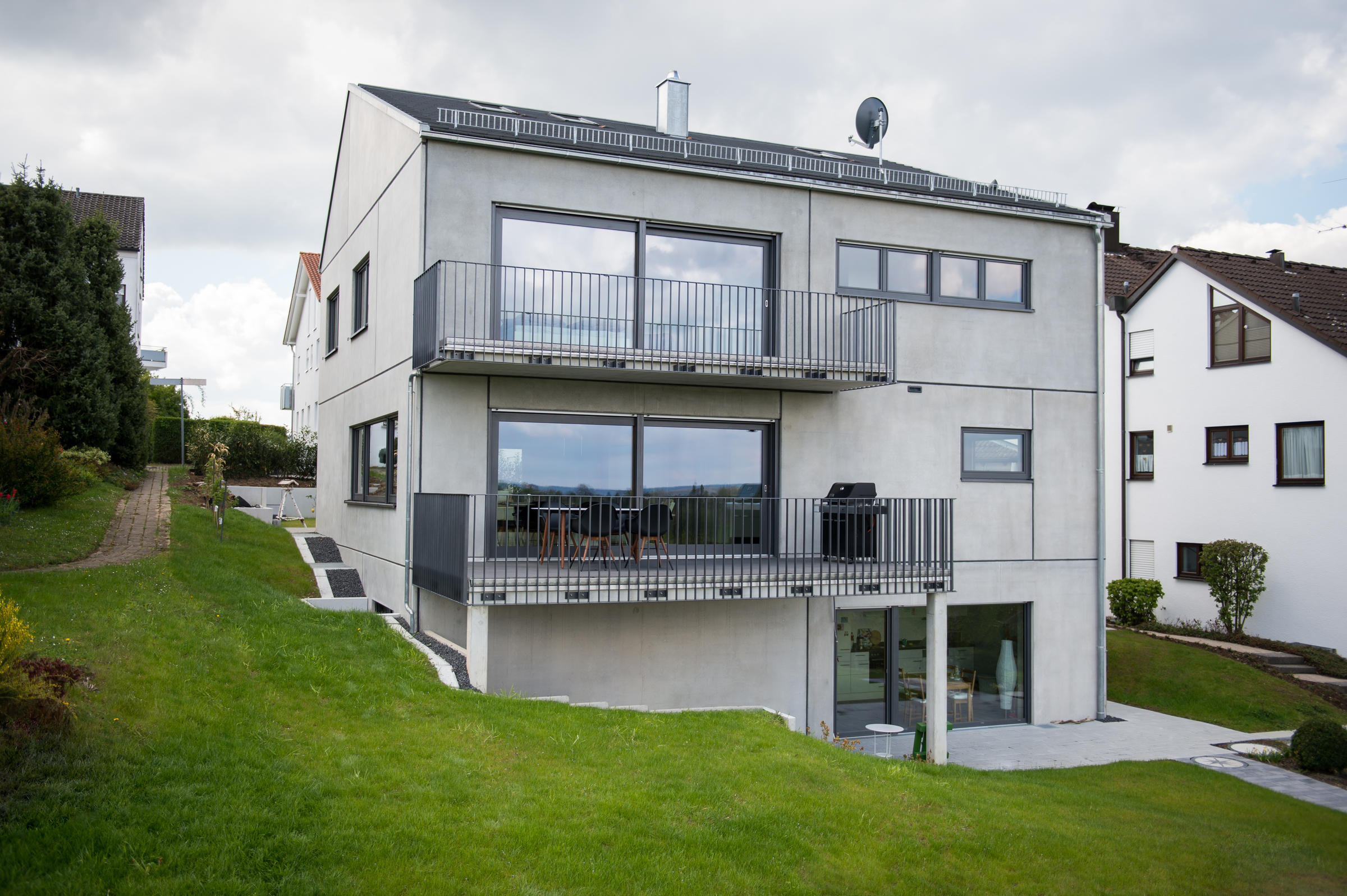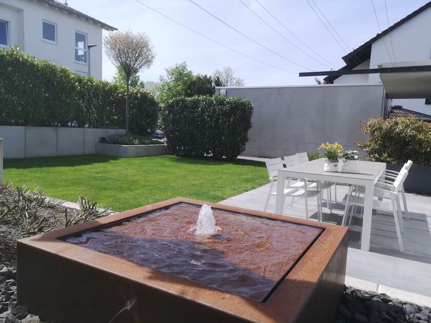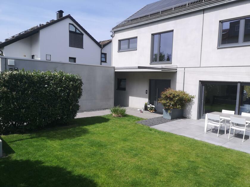Das klare Konzept setzt sich auch im Außenbereich fort. Auch hier bilden die Form-, Material- und Farbauswahl, die Akzente eines sehr modernen Lebensstiles- und Raumes ab.