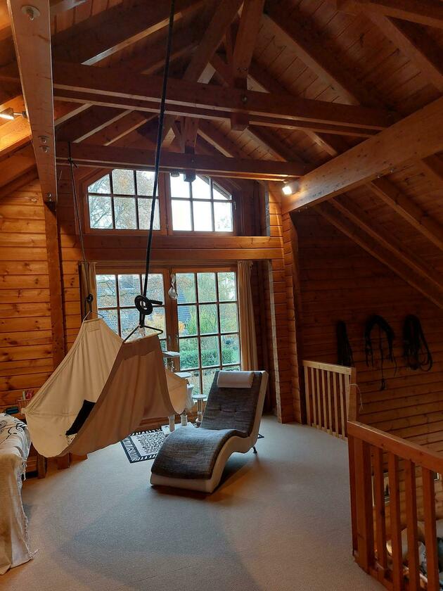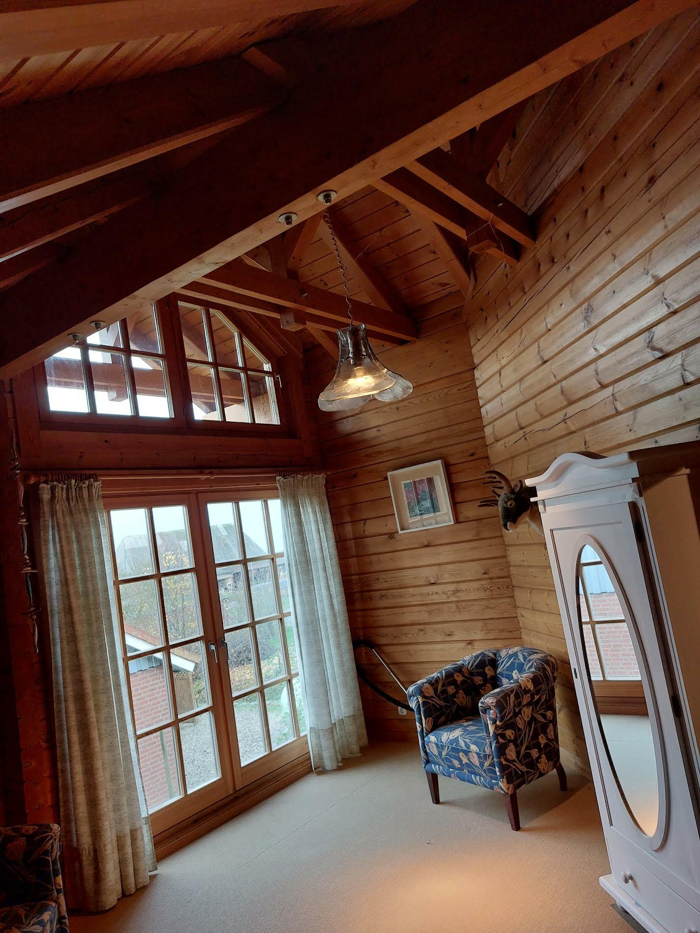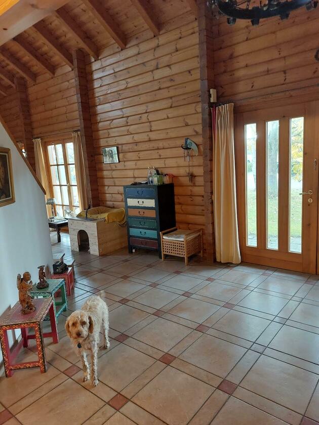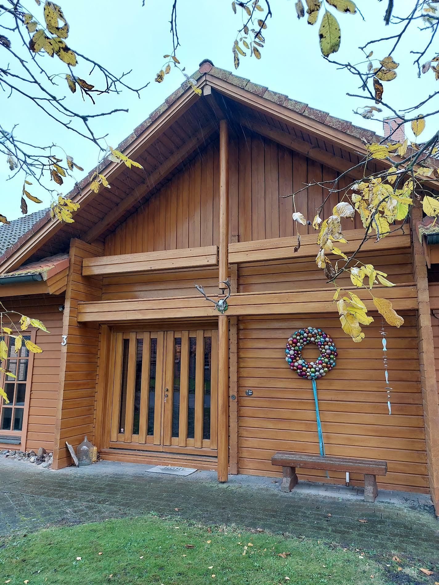 Unser wunderschönes finnisches Blockhaus befindet sich in Feldrandlage in einer ruhigen und ländlichen Gegend, nur 7 km von der Ostsee entfernt. Das Haus besticht durch seine offene Bauweise und die bis zu 7,5 m hohe Dachinnenkonstruktion. Die Räume sind gemütlich und zeitgemäß eingerichtet. Die bodentiefen Fenster im lichtdurchfluteten Wohnbereich können mit Hilfe von Vorhängen abgedunkelt werden. Im Außenbereich können u. a. 2 Terrassen, unser Garten mit altem Baumbestand, ein Teich und ein separates Saunahaus für Produktionen genutzt werden. Auf unserem Grundstück stehen mehrere Pkw-Parkplätze zur Verfügung.