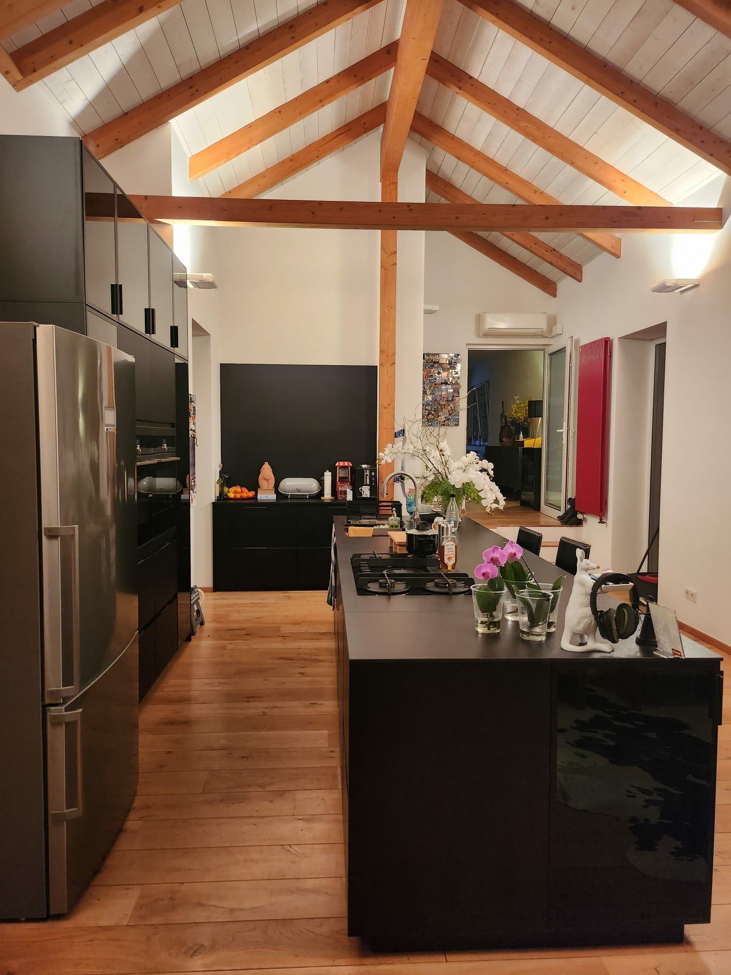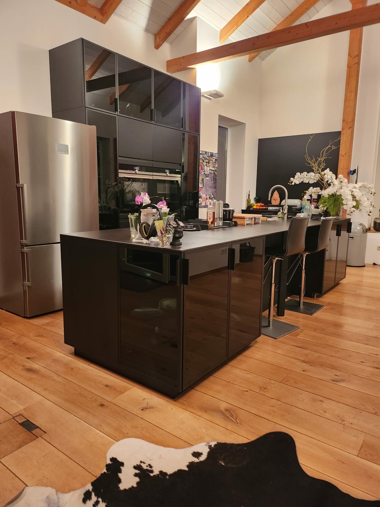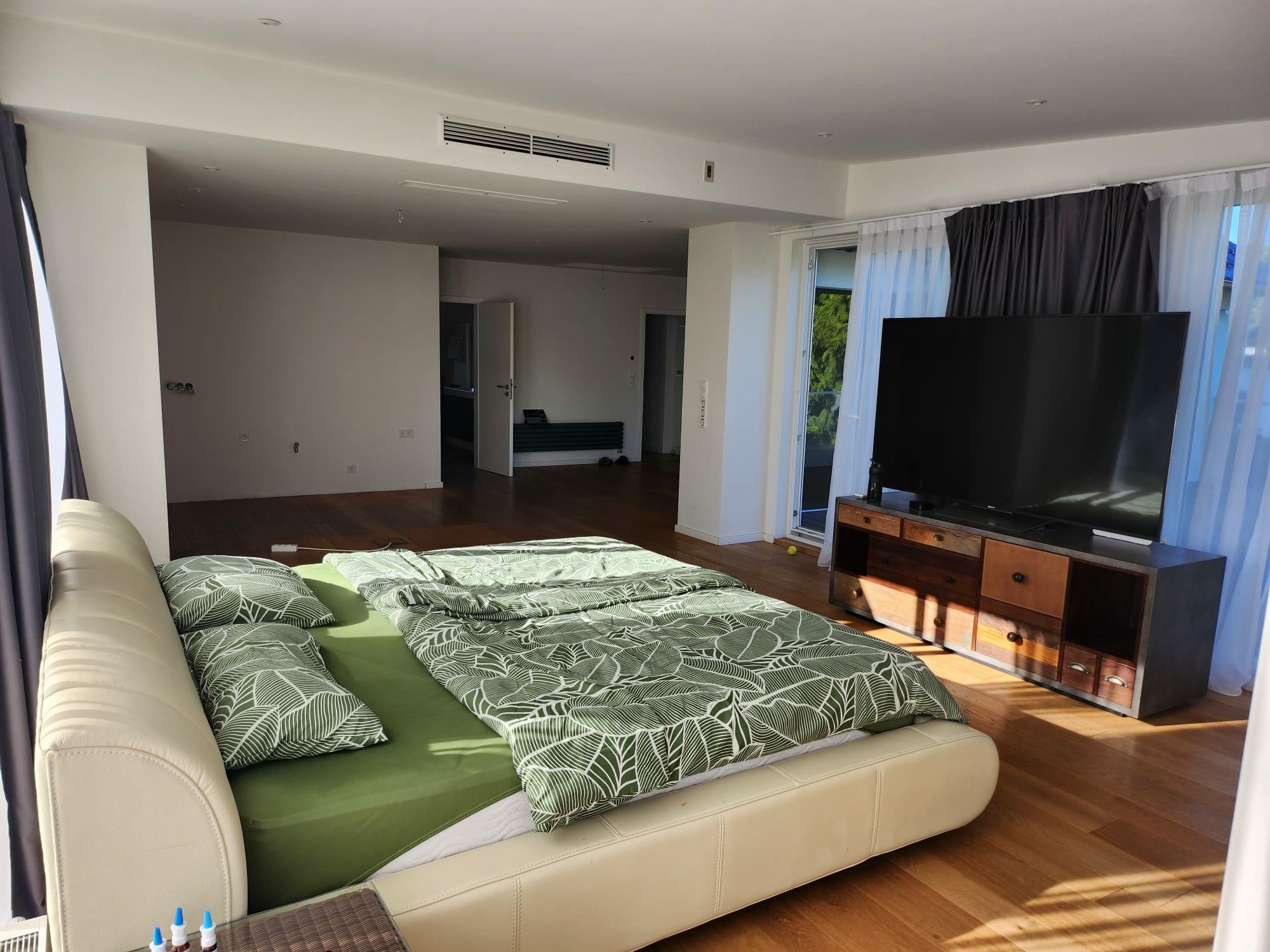 Unser modern ausgestattetes Haus befindet sich in einer ruhigen Wohngegend. Die Räume sind zeitgemäß und funktional eingerichtet. Im Wohnzimmer befindet sich ein offener Tunnelkamin. Die modern ausgestattete Küche verfügt über eine große Kücheninsel. Auf den Böden der Wohnbereiche sind hochwertige Buchenholzdielen verlegt. Die teilweise bodentiefen Fenster können mit Rollläden und Jalousien verdunkelt werden. Im Außenbereich können unsere Terrassen, der Salzwasserpool und der Garten genutzt werden. Auf unserem Grundstück stehen 4 Pkw-Stellplätze zur Verfügung. Weitere Stellflächen gibt es auf der Anliegerstraße.