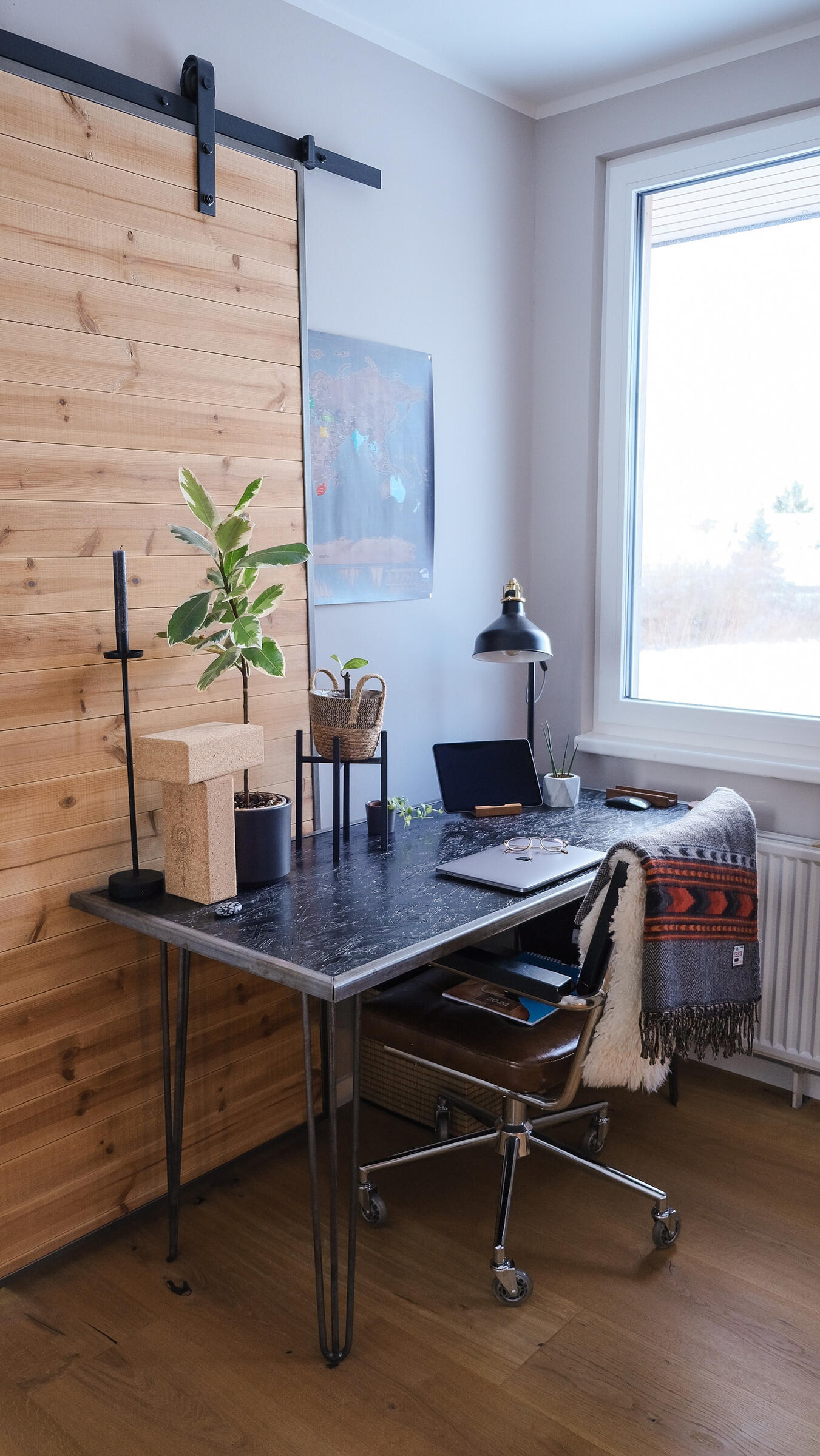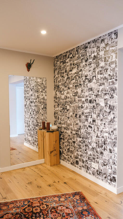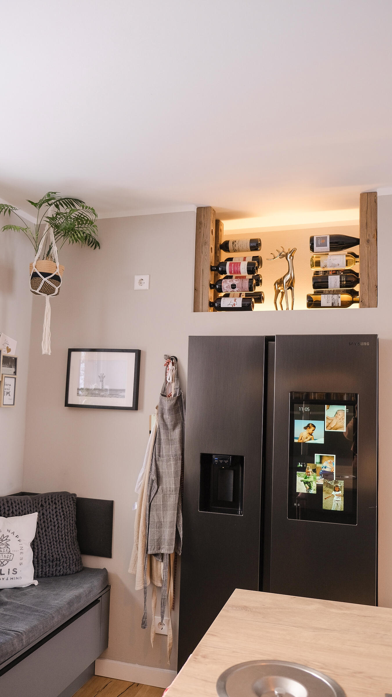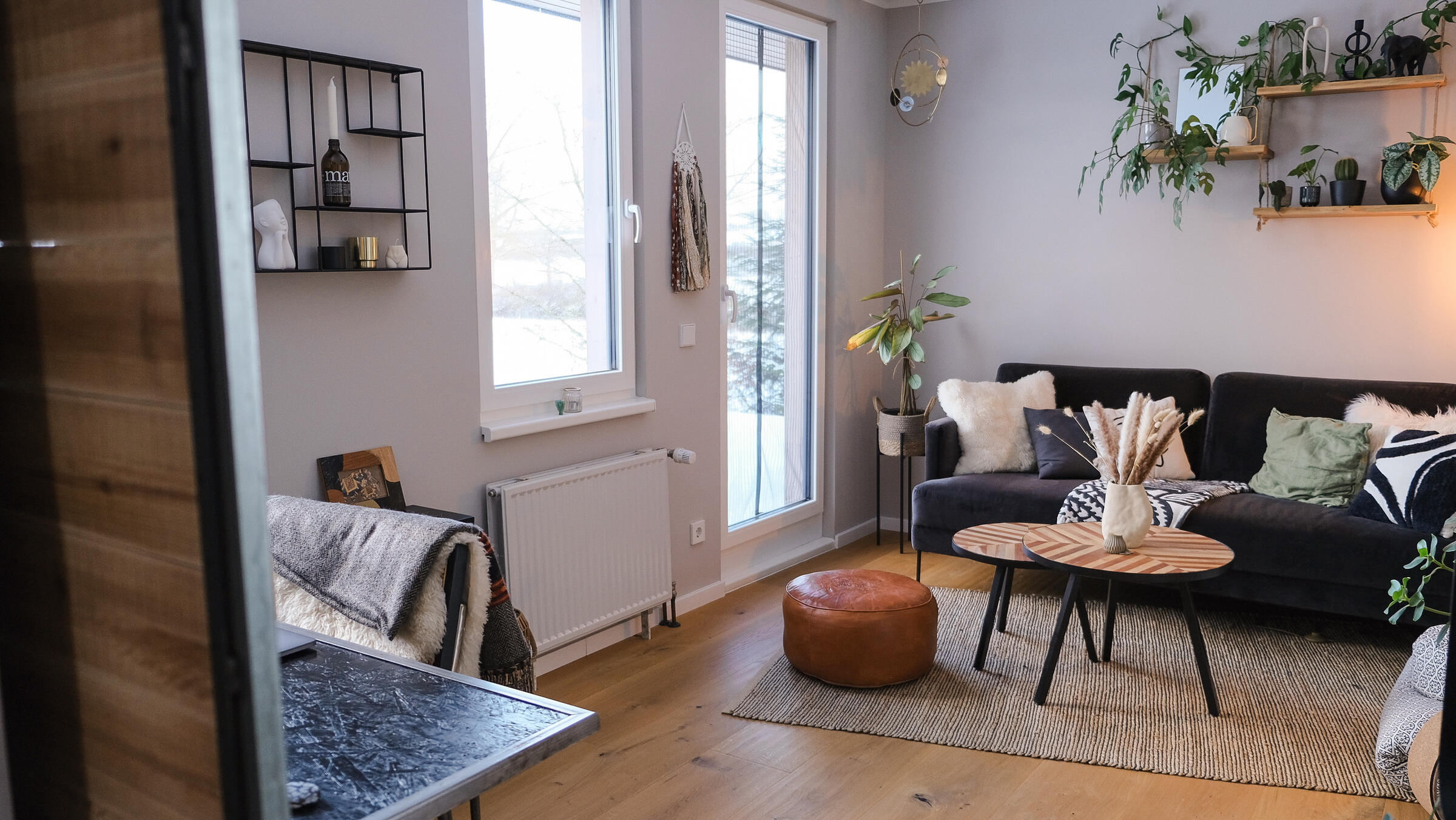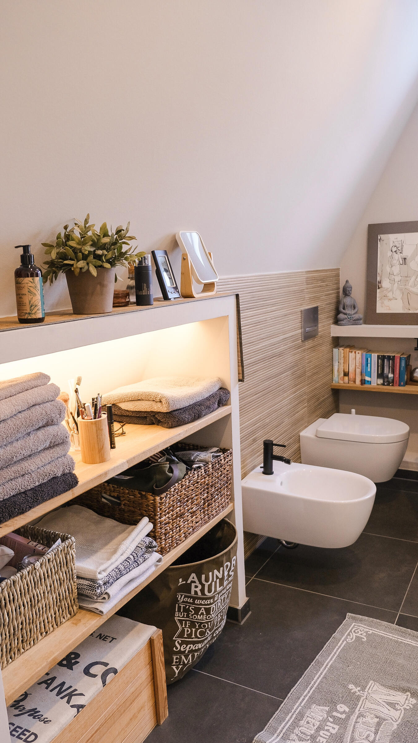 Unser freistehendes Einfamilienhaus mit seinem charakteristischen Spitzgiebel wurde im Jahr 2020 mit viel Liebe kernsaniert und modernisiert. Im Erdgeschoss wurden die Räume geöffnet und ein 270°-Kamin als Blickfang zwischen Ess- und Wohnzimmer platziert. Im Wohnbereich des Untergeschosses befindet sich, mit Ausnahme des graugefliesten Eingangsbereichs, der Gästetoilette und des Hauswirtschaftraumes, geöltes Eichenparkett in einer sehr besonderen Optik. Direkt an das Wohn- und Esszimmer grenzt die anthrazitfarbene, offene Küche mit einer großen Kochinsel im Zentrum. Eine Abstellkammer, ein Hauswirtschaftsraum bzw. Speisekammer, eine ausgefallen tapezierte Gästetoilette, sowie der Zugang zur Praxis und zum Keller sind ebenfalls im Erdgeschoss verortet. Rundherum befinden sich zahlreiche Fenster, die die Räume lichtdurchfluten und sich zum Garten und der Feldrandlage bodentief und groß dimensioniert öffnen, um den Blick über die nordwestlich gelegenen Wiesen und Hügel freizugeben. Hinter der doppelflügeligen Eingangstür bilden Flur und die Diele den großzügigen Eingangsbereich, der von einer modernen, schwarzen Lofttür getrennt wird und viel Platz für eventuelle Technik bietet.