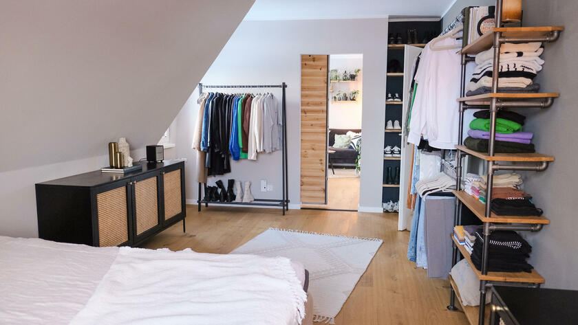 - Ankleidezimmer (1. OG)Fläche: 5 m²Länge: 1,75 mBreite: 2,7 mHöhe: 2,48 mmöbliert: ja