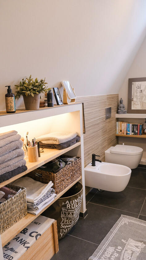 - Gästebadezimmer (1. OG)Fläche: 5 m²Länge: 2,7 mBreite: 1,85 mHöhe: 2,48 mmöbliert: ja