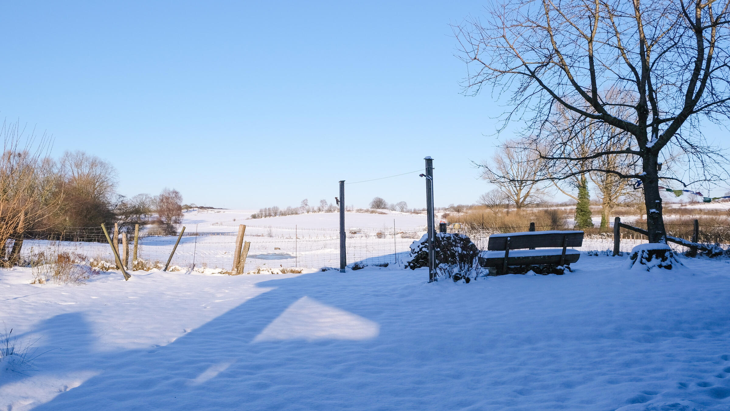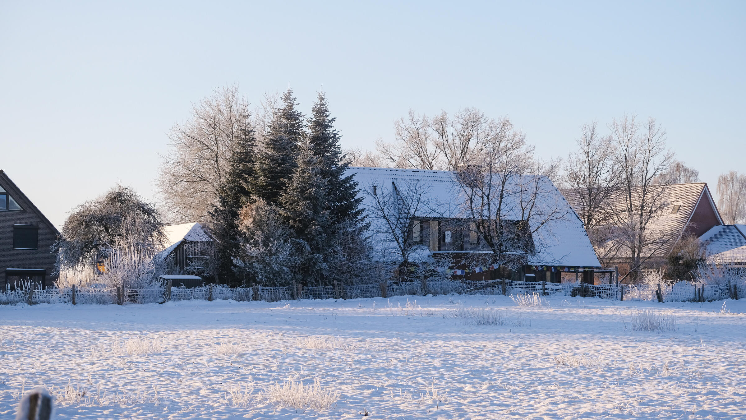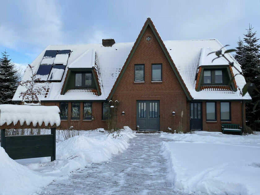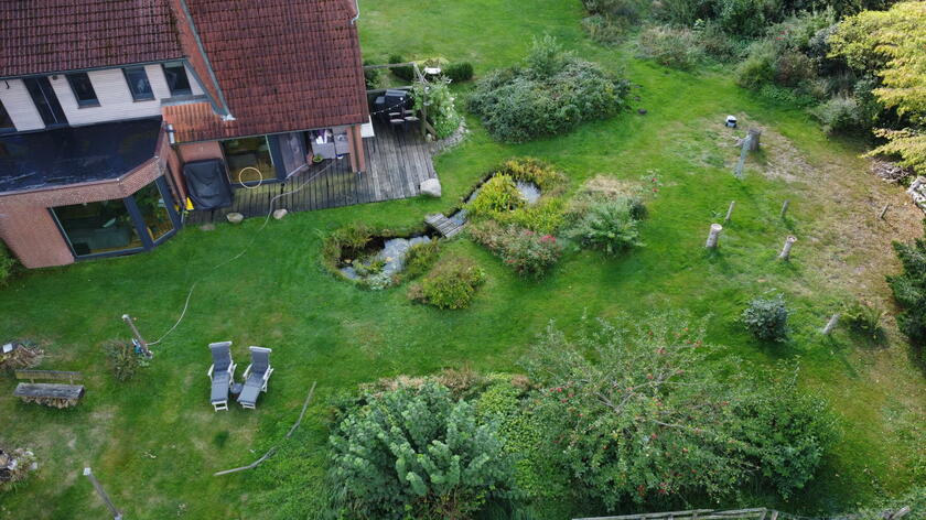 Das knapp 2.000 m² große Grundstück bietet rund um das Haus viel Platz und hält einen großen, gepflasterten Hof mit Parkmöglichkeiten für die verschiedensten Fahrzeuge bereit. Ein Garagenhaus mit zwei Parkplätzen und ein kleiner Teich befinden sich ebenfalls auf dem Grundstück.